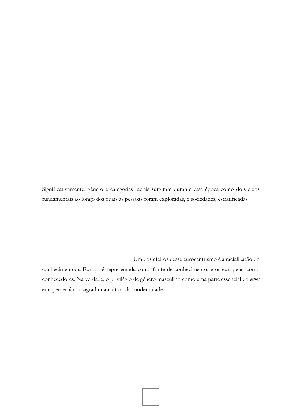 1 CONCEITUANDO O GÊNERO: OS FUNDAMENTOS EUROCÊNTRICOS DOS CONCEITOS FEMINISTAS E O DESAFIO DAS EPISTEMOLOGIAS AFRICANAS Oyèrónké Oyěwùmí OYĚWÙMÍ, Oyèrónké. Conceituando o gênero: os fundamentos eurocêntricos dos conceitos feministas e o desafio das epistemologias africanas. Tradução para uso didático de: OYĚWÙMÍ, Oyèrónké. Conceptualizing Gender: The Eurocentric Foundations of Feminist Concepts and the challenge of African Epistemologies. African Gender Scholarship: Concepts, Methodologies and Paradigms. CODESRIA Gender Series. Volume 1, Dakar, CODESRIA, 2004, p. 1-8 por Juliana Araújo Lopes. Os últimos cinco séculos, descritos como era da modernidade, foram definidos por uma série de processos históricos, incluindo o tráfico atlântico de escravos e instituições que acompanharam a escravidão, e a colonização europeia de África, Ásia e América Latina. A ideia de modernidade evoca o desenvolvimento do capitalismo e da industrialização, bem como o estabelecimento de estados-nação e o crescimento das disparidades regionais no sistema- mundo. O período tem assistido a uma série de transformações sociais e culturais. Significativamente, gênero e categorias raciais surgiram durante essa época como dois eixos fundamentais ao longo dos quais as pessoas foram exploradas, e sociedades, estratificadas. Uma característica marcante da era moderna é a expansão da Europa e o estabelecimento de hegemonia cultural euro-americana em todo o mundo. Em nenhum lugar isso é mais profundo que na produção de conhecimento sobre o comportamento humano, história, sociedades e culturas. Como resultado, os interesses, preocupações, predileções, neuroses, preconceitos, instituições sociais e categorias sociais de euro-americanos têm dominado a escrita da história humana. Um dos efeitos desse eurocentrismo é a racialização do conhecimento: a Europa é representada como fonte de conhecimento, e os europeus, como conhecedores. Na verdade, o privilégio de gênero masculino como uma parte essencial do ethos europeu está consagrado na cultura da modernidade. Este contexto global para a produção de conhecimento deve ser levado em conta em nossa busca para compreender as realidades africanas e de fato a condição humana. Neste artigo, meu objetivo é interrogar gênero e conceitos aliados com base em experiências e epistemologias culturais africanas. O foco aqui é sobre o sistema de família nuclear, que é uma forma especificamente europeia, e ainda é a fonte original de muitos dos conceitos que são usados universalmente na pesquisa de gênero. O objetivo é encontrar maneiras em que a pesquisa africana possa ser mais bem informada por preocupações e interpretações locais e, ao mesmo tempo, simultaneamente, para que experiências africanas santi Realce santi Realce 2 sejam levadas em conta na construção teórica geral, a pesar do racismo estrutural do sistema global. Gênero e a política de conhecimento feminista Quaisquer estudos sérios sobre o lugar do "gênero" em realidades africanas devem necessariamente levantar questões sobre conceitos vigentes e abordagens teóricas. Este é um resultado do fato de que a arquitetura e mobiliário de pesquisa de gênero têm sido em grande parte destilada desde a Europa e experiências americanas. Hoje, estudiosas feministas são a mais importante circunscrição com foco em gênero e a fonte de muito conhecimento sobre as mulheres e hierarquias de gênero. Como resultado de seus esforços, o gênero tornou-se uma das categorias analíticas mais importantes na empreitada acadêmica de descrever o mundo e tarefa política de prescrever soluções. Assim, embora a nossa busca por entender não possa ignorar o papel das feministas ocidentais, devemos questionar a identidade social, interesses e preocupações das fornecedoras de tais conhecimentos. De acordo com esta abordagem "sociologia do conhecimento", Karl Mannheim afirma: Pessoas ligadas entre si em grupos se esforçam em conformidade com o caráter e a posição dos grupos a que pertencem para mudar o mundo em torno da natureza e da sociedade ou tentar mantê-lo em uma determinada condição. É o sentido desta vontade de mudar ou de manter, desta atividade coletiva, que produz o fio condutor para a emergência de seus problemas, seus conceitos e suas formas de pensamento. (1936: 4) As feministas, como um destes grupos, têm usado seu poder recém-adquirido nas sociedades ocidentais para transformar o que antes eram vistos como os problemas particulares das mulheres em questões públicas. Eles mostraram como problemas pessoais das mulheres na esfera privada são de fato questões públicas constituídas pela desigualdade de gênero da estrutura social. Está claro que as experiências das mulheres euro-americanas e o desejo por transformação forneceram as bases para as perguntas, conceitos, teorias e preocupações que produziram a pesquisa de gênero. Pesquisadoras feministas usam gênero como o modelo explicativo para compreender a subordinação e opressão das mulheres em todo o mundo. De uma só vez, elas assumem tanto a categoria "mulher" e sua subordinação como universais. Mas gênero é antes de tudo uma construção sociocultural. Como ponto de partida da investigação, não podemos tomar como dado o que de fato precisamos investigar. Se o gênero predomina tão largamente na vida das mulheres brancas com a exclusão de outros fatores, temos que perguntar: por que gênero? Por santi Realce santi Realce 3 que não alguma outra categoria, como raça, por exemplo, que é vista como fundamental por afro-americanas. Porque gênero é socialmente construído, a categoria social "mulher" não é universal, e outras formas de opressão e igualdade estão presentes na sociedade, questões adicionais devem ser feitas: Por que gênero? Em que medida uma análise de gênero revela ou oculta outras formas de opressão? As situações de quais mu