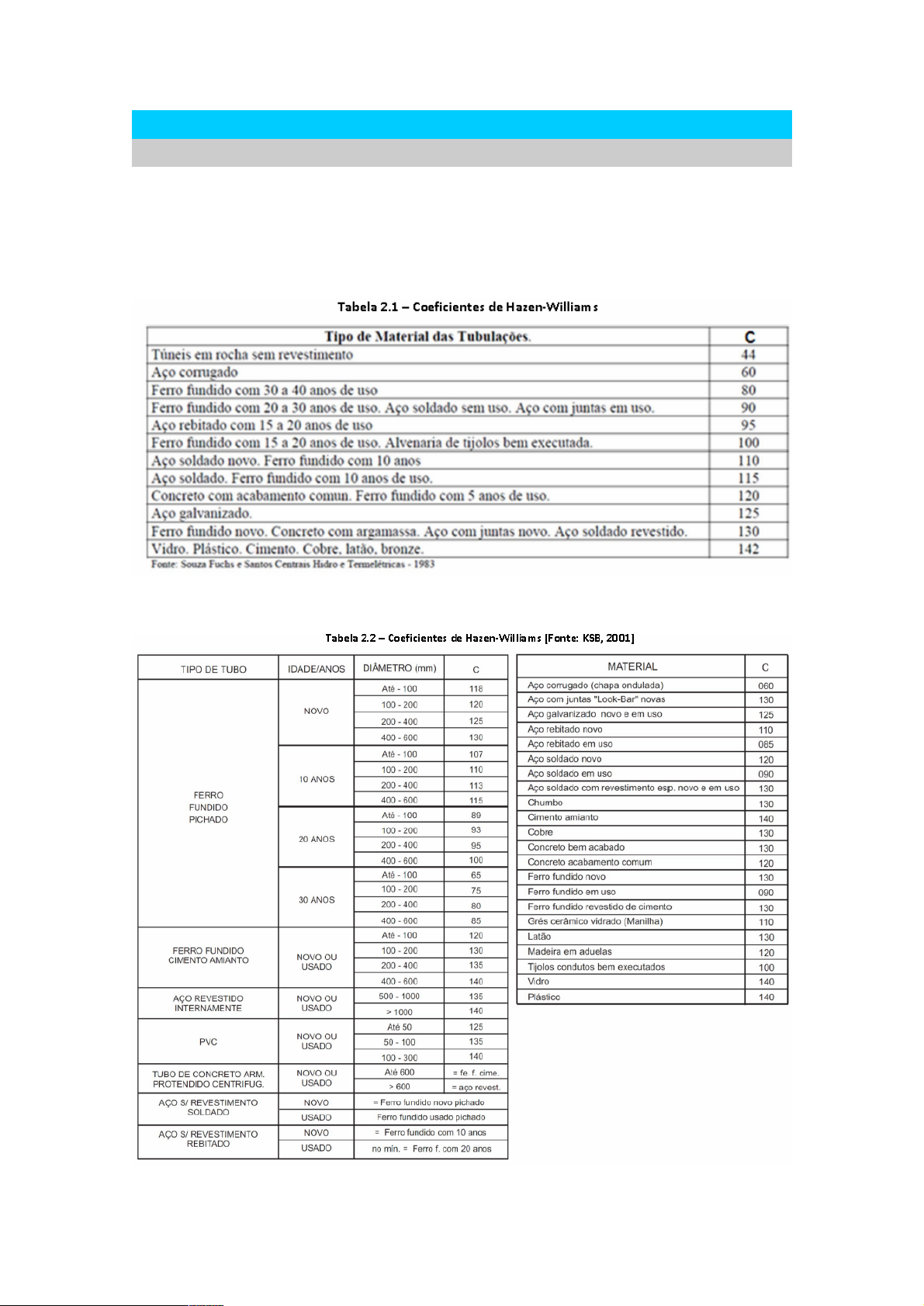 CURSO DE HIDRÁULICA PROFESSOR BRUNO JARDIM DA SILVA COEFICIENTES DAS FÓRMULAS UNIVERSAL E DE HAZEN-WILLIAMS 1) Hazen - Williams 2) Universal
