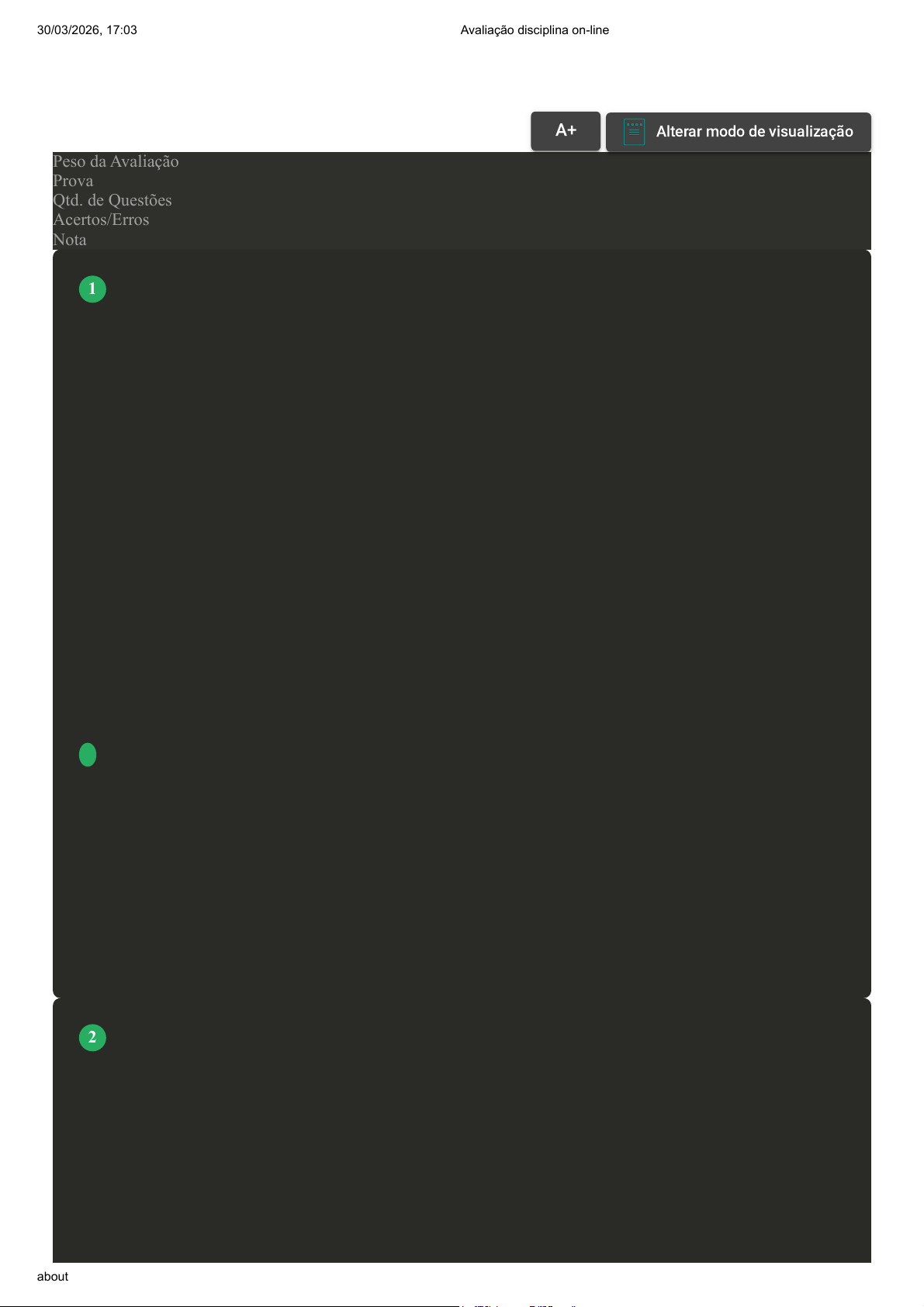 Prova Impressa GABARITO | Avaliação disciplina on-line (Cod.:1590345) Peso da Avaliação 10,00 Prova 117594941 Qtd. de Questões 10 Acertos/Erros 10/0 Nota 10,00 Frequentemente se afirma que o método etnográfico é aquele que diferencia as formas de construção de conhecimento em Antropologia em relação a outros campos de conhecimento das ciências humanas. De fato, o método etnográfico encontra sua especificidade em ser desenvolvido no âmbito da disciplina antropológica, sendo composto de técnicas e de procedimentos de coletas de dados associados a uma prática do trabalho de campo a partir de uma convivência mais ou menos prolongada do pesquisador junto ao grupo social a ser estudado. A prática da pesquisa de campo etnográfica responde, pois, a uma demanda científica de produção de dados de conhecimento antropológico a partir de uma inter-relação entre o pesquisador e os sujeitos pesquisados que interagem no contexto, recorrendo primordialmente às técnicas de pesquisa da observação direta, de conversas informais e formais, das entrevistas não-diretivas etc. Fonte: adaptado de: https://lume.ufrgs.br/bitstream/handle/10183/30176/000673630.pdf. Acesso em: 15 jul. 2024. Considerando o excerto, assinale a alternativa correta: A O método é resumido em coleta de dados através de bases históricas e registros advindos de pesquisas feitas sobre o grupo pesquisado. B A convivência prolongada do pesquisador com o grupo social estudado é desnecessária no método etnográfico, que foca em entrevistas formais rápidas. C O método permite a imersão do pesquisador nas atividades diárias do objeto de pesquisa, para identificar as especificidades da cultura observada. D O método evita qualquer tipo de interação direta entre o pesquisador e o grupo social estudado, para manter a objetividade dos dados coletados. E A prática da etnografia visa principalmente a aplicação de questionários padronizados, com pouca ênfase na observação direta e nas entrevistas não-diretivas. Leia o excerto a seguir: “O que é ética? Ética é um ramo da Filosofia que trata dos princípios que orientam o comportamento humano adequado, sobretudo na vida em sociedade. Podem ser princípios universais, abstratos, ou a compilação deles em um código de leis ou regulamentos. ‘A grosso modo, a ética trata do agir, de como agir, da procura do bem e de como é e se dá esse bem. Isso tudo no sentido de apreender o sentido da ação, suas características e sua interação com os meios social, político e histórico, seja ele individual ou coletivo. A Ética faz par com a Estética, assim, se a Estética é a procura pelo belo, a Ética é a procura pelo bem’, aponta Milton José Zamboni, antropólogo da Universidade Federal do Triângulo Mineiro”. VOLTAR A+Aumentar, FonteAlterar modo de visualização 1 2 30/03/2026, 17:03 Avaliação disciplina on-line about:blank 1/8