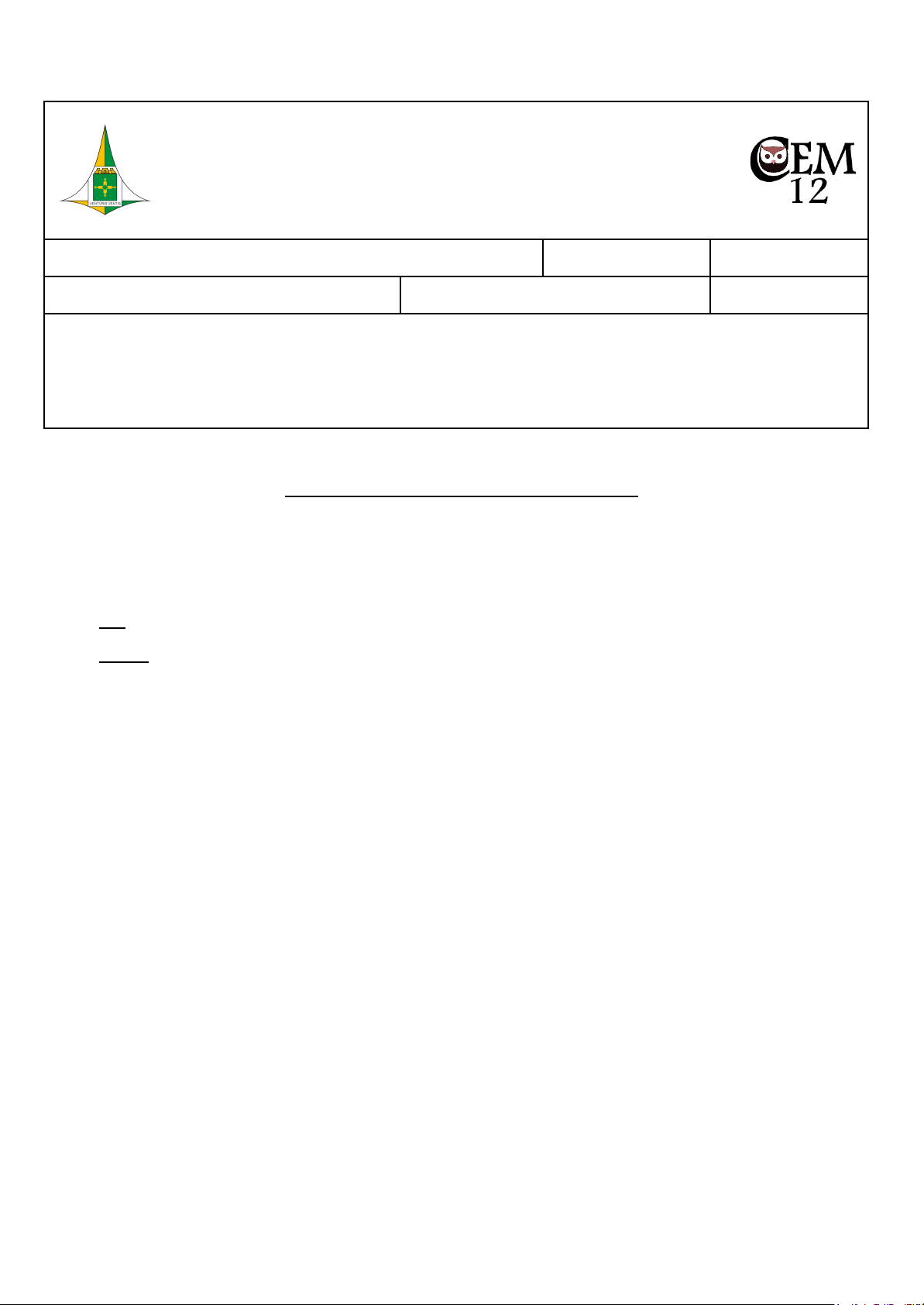 TESTE AVALIATIVO - 1º BIMESTRE 1. Calcule por extenso: a) 8! − (5! · 4!) b) 40! 37! c) (7! + 3) 2! 2. Seis amigos decidiram realizar uma disputa de xadrez para saber quem era o melhor enxadrista da turma. Sabendo que na disputa teremos primeiro, segundo e terceiro lugares, quantos são os pódios possíveis? 3. De quantas maneiras distintas podemos ordenar 8 livros em uma estante sendo 3 deles indistinguíveis e todos os outros distintos? 4. Determine o número de anagramas formados com a palavra LUA. 5. Quantas comissões diferentes de 3 pessoas podem ser formadas com um grupo de 7 pessoas? Governo do Distrito Federal Secretaria de Estado de Educação Coordenação Regional de Ensino de Ceilândia Centro de Ensino Médio 12 Estudante: Série: 2ª Turma: Professor: Lucas Oliveira Un. Curricular: Matemática Data: ● Leia com atenção os enunciados. ● Verifique se seu trabalho está completo. ● Use caneta AZUL ou PRETA. ● Cuide da apresentação e organização do seu trabalho (evite rasuras). ● Lembre-se: ESSE É UM MOMENTO ÚNICO EM SEUS ESTUDOS. APROVEITE-O. BOM TRABALHO.