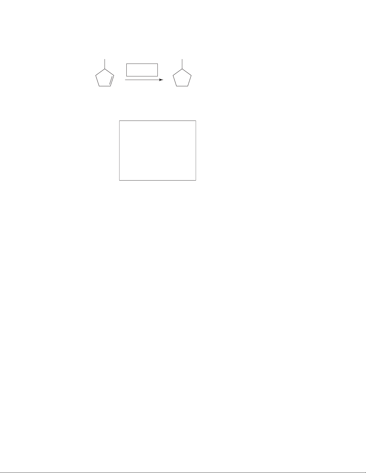 64 NOMENCLATURE AND CONFORMATIONS OF ALKANES AND CYCLOALKANES 4.9 Supply the missing reagents in the box: 4.10 The most stable conformation of trans-1-isopropyl-3-methylcyclohexane:
