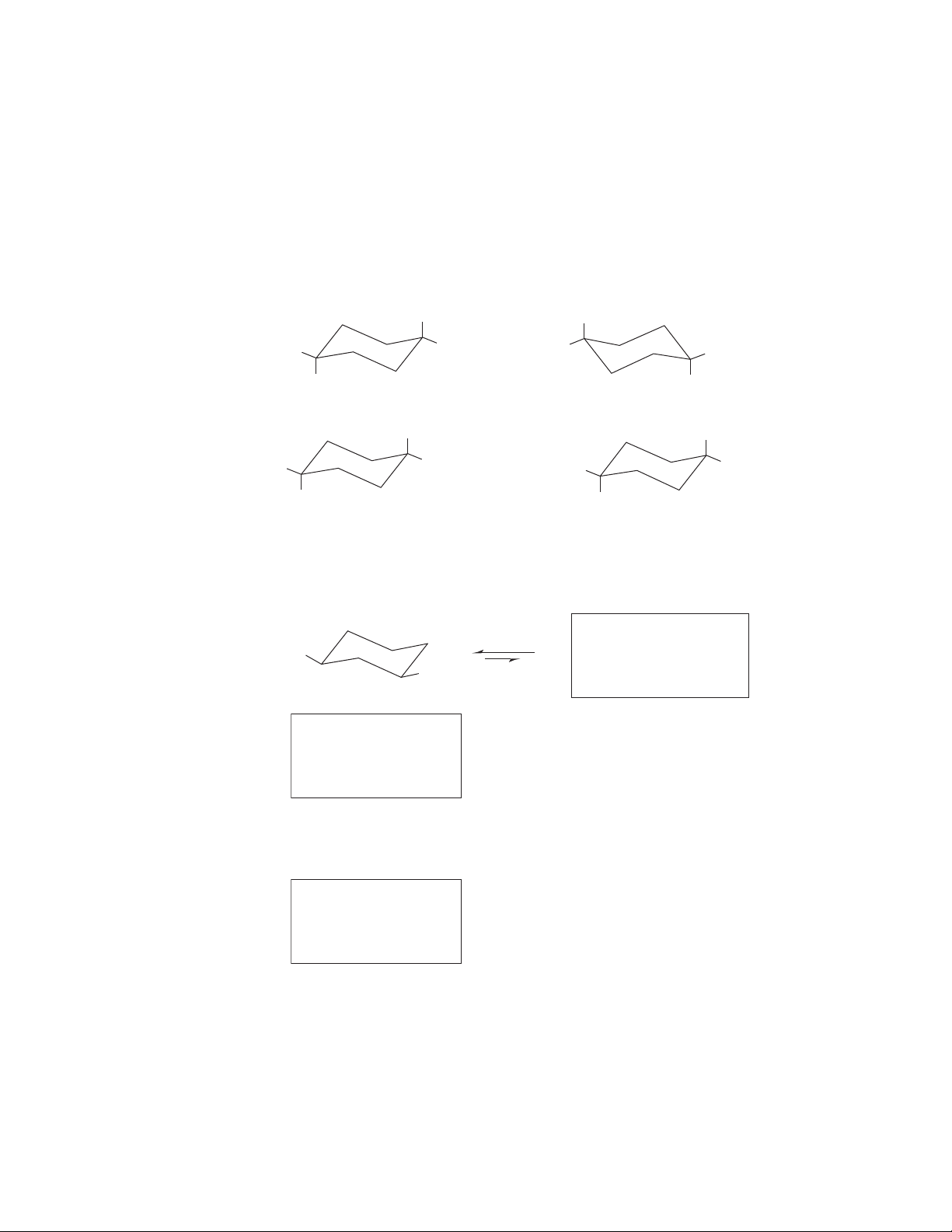 NOMENCLATURE AND CONFORMATIONS OF ALKANES AND CYCLOALKANES 63 4.5 How many isomers are possible for C3H7Br? (a) 1 (b) 2 (c) 3 (d) 4 (e) 5 4.6 Which isomer of 1,3-dimethylcyclohexane is more stable? (a) cis (b) trans (c) Both are equally stable (d) Impossible to tell 4.7 Which is the lowest energy conformation of trans-1,4-dimethylcyclohexane? (a) H H CH3CH3 (b) HH CH3 CH3 (c) H CH3 CH3H (d) H H CH3 CH3 (e) More than one of the above 4.8 Supply the missing structures (a) Cl Cl ring flip (b) 2-Bromobicyclo[2.2.1]heptane (c) Newman projection for a gauche form of 1,2-dibromoethane