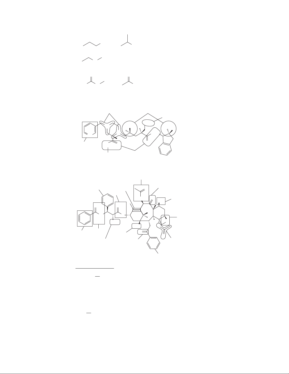 24 FAMILIES OF CARBON COMPOUNDS (k) NH2 NH2 (l) Me N H (m) Me3N (n) O Me N H H O NH2 2.36 Crixivan has the following functional groups: N N NH N HN O C6H5 3°Amine Amide Aromatic amine 2°Alcohol Phenyl C(CH3)3 H O HOOHH H H 2.37 The following formula is for Taxol, a natural compound with anticancer activity. Taxol has the following functional groups. Phenyl Phenyl Phenyl Amide Ester Alkene Ester Alcohol (2º) Alcohol (2º) Alcohol (3º) Ether EsterKetone Ketone N H OH HO O O O OH O O O O O O H O Physical Properties 2.38 (a) The O H group of Vitamin A is the hydrophilic portion of the molecule, but the re- mainder of the molecule is not only hydrophobic but much larger. Attractive dispersion forces between the hydrophobic region of one Vitamin A molecule and another out- weighs the effect of hydrogen bonding to water through a single hydroxyl group. Hence, Vitamin A is not expected to be water soluble. (b) For Vitamin B3, there are multiple hydrophilic sites. The carbonyl oxygen and the O H of the acid function as well as the ring nitrogen can all hydrogen bond to water. Since the hydrophobic portion (the ring) of the molecule is modest in size, the molecule is expected to be water soluble.