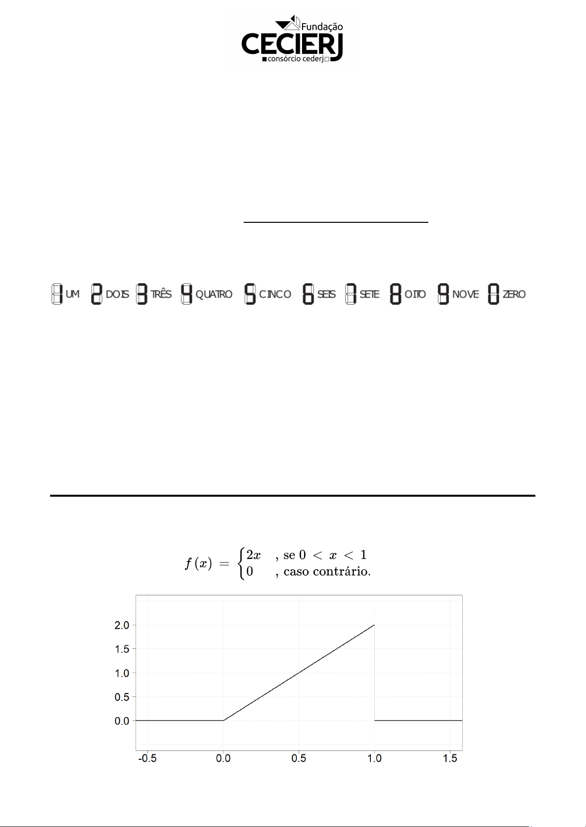 Fundação Centro de Ciências e Educação Superior a Distância do Estado do Rio de Janeiro Centro de Educação Superior a Distância do Estado do Rio de Janeiro AP1 – Métodos Estatísticos II – 2/2025 Código da disciplina EAD06078 Nome:___________________________________________________ Matrícula:_________________ Polo: _______________________________________________________ Data: _________________ Atenção! • Para cada folha de respostas que utilizar, antes de começar a resolver as questões, preencha (pintando os respectivos espaços na parte superior da folha) o número do CPF, o código da disciplina (indicado acima em negrito) e o número da folha. PADRÃO DE PREENCHIMENTO NA FOLHA DE RESPOSTAS • Preencha o número total de folhas somente quando for entregar a prova! • Identifique a Prova, colocando Nome e Matrícula, Polo e Data. • É permitido o uso de calculadora, desde que não seja de telefone celular ou de qualquer outro aparelho que permita a conexão à internet. • Devolver esta prova e as Folhas de Respostas ao aplicador. • Não amasse, dobre ou rasure as Folhas de Respostas, pois isto pode inviabilizar a digitalização e a correção. • Somente utilize caneta esferográfica com tinta azul ou preta para registro das resoluções nas Folhas de Respostas. • As Folhas de Respostas serão o único material considerado para correção. Quaisquer anotações feitas fora deste espaço,mesmo que em folha de rascunho, serão ignoradas. • Questões sem desenvolvimento não serão consideradas. USE O ENUNCIADO A SEGUIR PARA RESOLVER AS QUESTÕES DE 1 - 4. Considere a função de densidade da variável aleatória , cujo gráfico está apresentado abaixo e a 𝑓 𝑋 sua expressão é dada por Questão 1 [1,0] Qual o valor da área entre o gráfico da função e o eixo x? Esse valor era o que 𝑓 você esperava? Justifique sua resposta. O valor desta área é o valor do triângulo de base 1 e altura 2, que é dado por (1 x 2)/ 2 = 1. esse valor era o esperado uma vez que f é uma função de densidade e sabemos que a área entre o gráfico de uma função de densidade e o eixo x tem que ser 1. Questão 2 [1,0] Calcule . 𝑃(𝑋 > 0, 5) Questão 3 [1,0] Calcule a mediana da variável aleatória , isto é, o valor de tal que 𝑋 𝑥 . 𝑃(𝑋 𝑥) = 0, 5 Como x não pode assumir valores negativos, pois no nosso problema queremos 0 0, 5 | 𝑋 > 0, 25) USE O ENUNCIADO A SEGUIR PARA RESOLVER AS QUESTÕES DE 5 E 6. Em uma fazenda, uma máquina automática enche garrafas de suco com um volume-alvo. Devido a pequenas variações no processo de envase, o volume de suco em cada garrafa não é exatamente o mesmo. Podemos considerar que o volume real (em mililitros) de suco em uma garrafa é uma variável aleatória contínua uniformemente distribuída no intervalo [950,1050]. As garrafas com volume inferior a 970 mL ou superior a 1030 mL são descartadas por não atenderem aos padrões de controle de qualidade. Questão 5 [1,0] Qual é a proporção de garrafas descartadas por não atenderem aos padrões de controle de qualidade? Questão 6 [1,0] Dado que uma garrafa não foi descartada, qual a probabilidade dela ter menos de 1000 ml? USE O ENUNCIADO A SEGUIR PARA RESOLVER AS QUESTÕES DE 7 - 10. Na mesma fazenda, o tempo total para preparar cada garrafa inclui as etapas de encher, lacrar, rotular e empacotar. Devido a pequenas variações em cada uma dessas etapas, observou-se que o tempo total para finalizar uma garrafa segue uma distribuição Normal com média de 30 segundos e desvio padrão de 12 segundos. O setor de qualidade desta fazenda irá fazer uma inspeção para acompanhar o tempo gasto no processo de preparo das garrafas. Questão 7 [1,0] Qual a probabilidade do processo de preparo de uma garrafa durar menos de 25 segundos? ou 0,5 - P(0