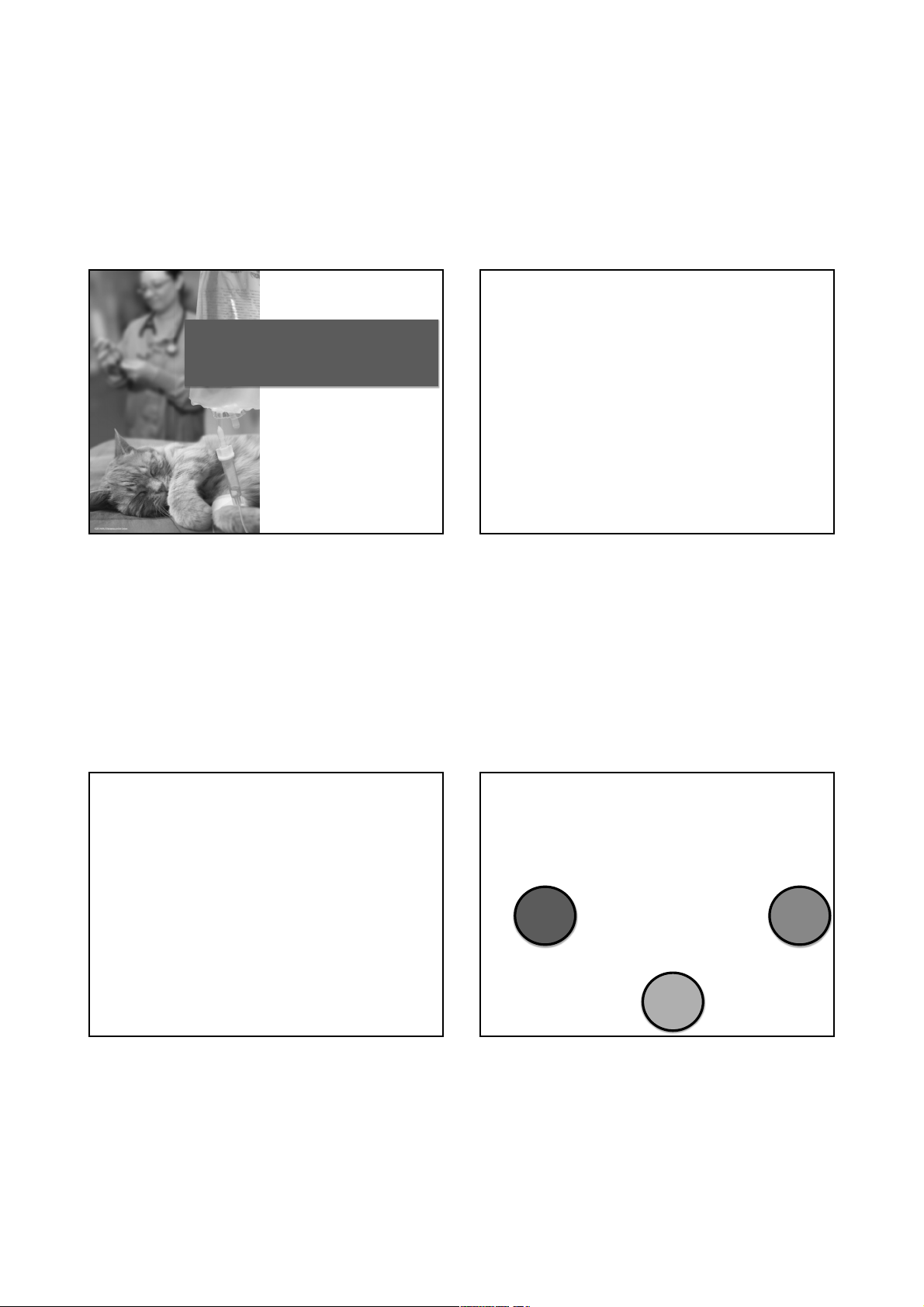 05/09/2023 1 FLUIDOTERAPIA Profa. Dra. Fernanda Chicharo Chacar VCM 4201 FMVZ/USP 1 OBJETIVOS 1. Aprender o conceito de fluidoterapia 2. Aprender sobre as indicações de fluidoterapia 3. Aprender sobre a prescrição de fluidoterapia 4. Correlacionar os parâmetros clínicos (anamnese, exame físico e laboratorial) com a indicação e prescrição da fluidoterapia 5. Aprender sobre a monitoração e possíveis complicações da fuidoterapia 2 ROTEIRO 1. Conceito e objetivos da fluidoterapia 2. Manifestações clínicas de desidratação 3. Fluidoterapia: abordagem terapêutica 4. Fluidoterapia: monitoração 3 FLUIDOTERAPIA: CONCEITO E OBJETIVOS • Introdução de fuidos por via parenteral, que visam corrigir alterações de volume, acidobásicas, eletrolíticas e nutricionais ÁCIDO-BASEVOLUME ELETRÓLITOS 4 05/09/2023 2 DESIDRATAÇÕES ISOTÔNICAS: MANIFESTAÇÕES CLÍNICAS • Perdas de sódio e água são proporcionais • Manifestações clínicas compatíveis �VEC • �Turgor cutâneo • Mucosas ressecadas • Enoftalmia • Taquicardia • Hipotensão 5 DESIDRATAÇÕES HIPOTÔNICAS: CAUSAS E MANIFESTAÇÕES CLÍNICAS • Causas: - Desidratações isotônicas (iatrogenia) - Exercício físico intenso Ex: sudorese - reposição somente de água livre • Manifestações clínicas: - ��Taquicardia - ��Hipotensão * Choque hipovolêmico - Semelhantes desidratação isotônica (mais intensa) * Alterações neurológicas 6 DESIDRATAÇÕES HIPERTÔNICAS: • Osmolaridade EC é afetada: � sódio * Perda de água “pura” • Pressão osmótica: H2O meio menos concentrado � meio mais concentrado * Desidratação celular • Consequências: - �VIC • Perdas: - Renais - Extrarrenais 7 DESIDRATAÇÕES HIPERTÔNICAS: PERDAS EXTRARRENAIS • � Ingestão de água * Acesso restrito * Hipodipsia primária • Febre * Sudorese intensa • Hiperventilação 8 05/09/2023 3 DESIDRATAÇÕES HIPERTÔNICAS: PERDAS RENAIS • Diabetes insipidus nefrogênico (DIN) • Diabetes insipidus central (DIC) * Acesso restrito à água/ perdas concomitantes • Diabetes mellitus (DM) 9 DESIDRATAÇÕES HIPERTÔNICAS: MANIFESTAÇÕES CLÍNICAS • �Turgor cutâneo • Mucosas ressecadas • Enoftalmia • Torpor/coma 10 DESIDRATAÇÃO: EXAME FÍSICO Grau estimado de desidratação Manifestações clínicas 2 Taquicardia Pulso forte 10% Perda turgor cutâneo Mucosas ressecadas TPC>2 Taquicardia Pulso fraco 12% Perda turgor cutâneo Mucosas ressecadas TPC>2 Taquicardia Pulso fraco Extremidades frias Hipotermia 11 FLUIDOTERAPIA: ABORDAGEM TERAPÊUTICA • A fluidoterapia é necessária? • Qual tipo de fluidoterapia é a mais adequada (caso a caso)? • Qual a via de administração? • Qual o volume a ser infundido? • Qual a velocidade (taxa) de infusão? • Quando interromper a fluidoterapia? 12 05/09/2023 4 FLUIDOTERAPIA: ABORDAGEM TERAPÊUTICA • Acesso venoso * Periférico x central * Calibre! • Solução de escolha? - Cristalóides - Colóides 13 14 15 16 05/09/2023 5 17 18 FLUIDOTERAPIA: ABORDAGEM TERAPÊUTICA • Cristalóides: Vantagens: - Mais baratos - Suporte eletrolítico - Hidratação Desvantagens: - microgotas 1 ml --------- 60 microgotas 30 ml -------- x microgotas X= 30.60 = 1800 microgotas em 1 hora 1 hora = 3600 segundos 1800/3600 = 0,5 gotas/segundo = 1 gota/2 segundos 46 47 48 05/09/2023 13 FLUIDOTERAPIA: MONITORAÇÃO • POR QUÊ É IMPORTANTE ESTAR ATENTO?? 49 FLUIDOTERAPIA: COMPLICAÇÕES • Edema intersticial * Hipoalbuminemia • Edema pulmonar • Efusão pleural • HAS• Coagulopatia • Hipernatremia • Hipercloremia • Hipocalemia * Glicose 5% * Diurese pós-obstrutiva 50 FLUIDOTERAPIA: MONITORAÇÃO • Peso • Exame físico: Turgor cutâneo Mucosas TPC FC Pulso • Exames complementares: Hematócrito e PTN total Pressão arterial 51 FLUIDOTERAPIA: MONITORAÇÃO • Status eletrolítico: - Manifestações clínicas: Hipocalemia – ventroflexão cervical Hipernatremia – alterações neurológicas - Exames complementares: Na+, K+ 52