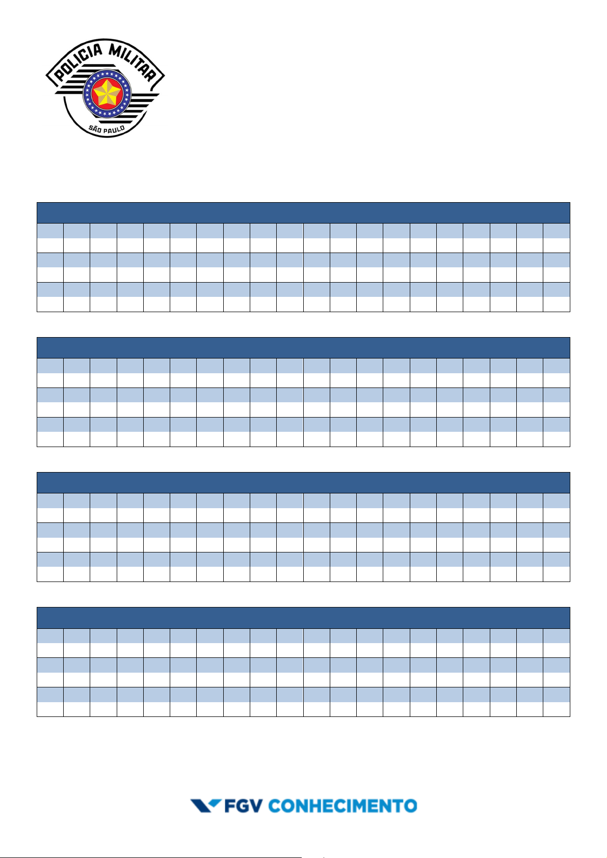 SECRETARIA DE SEGURANÇA PÚBLICA POLÍCIA MILITAR DO ESTADO DE SÃO PAULO COMANDO GERAL – CMDO G DIRETORIA DE PESSOAL CONCURSO PÚBLICO EDITAL DP-1/321/22 GABARITO DEFINITIVO DA PROVA APLICADA NO DIA 04/09/2022 Soldado PM de 2ª Classe do Quadro de Praças de Polícia Militar (QPPM) - TIPO 1 1 2 3 4 5 6 7 8 9 10 11 12 13 14 15 16 17 18 19 20 D A D E B B C E * C E E B A D C A C A D 21 22 23 24 25 26 27 28 29 30 31 32 33 34 35 36 37 38 39 40 D D E A C A B C A C D D B B B A B D D E 41 42 43 44 45 46 47 48 49 50 51 52 53 54 55 56 57 58 59 60 E A E D D E A D B C C D * D B B E E A E (*) questão anulada Soldado PM de 2ª Classe do Quadro de Praças de Polícia Militar (QPPM) - TIPO 2 1 2 3 4 5 6 7 8 9 10 11 12 13 14 15 16 17 18 19 20 B D A D E E B C E * C E D B A D C A C A 21 22 23 24 25 26 27 28 29 30 31 32 33 34 35 36 37 38 39 40 B D D C A C D E A C D B A B B D E A B D 41 42 43 44 45 46 47 48 49 50 51 52 53 54 55 56 57 58 59 60 E E A D D D E C B A * C D B D A E B E E (*) questão anulada Soldado PM de 2ª Classe do Quadro de Praças de Polícia Militar (QPPM) - TIPO 3 1 2 3 4 5 6 7 8 9 10 11 12 13 14 15 16 17 18 19 20 E B D A D E E B C E * C A D B A D C A C 21 22 23 24 25 26 27 28 29 30 31 32 33 34 35 36 37 38 39 40 D B A A B C B B D A C D C D E E D B A D 41 42 43 44 45 46 47 48 49 50 51 52 53 54 55 56 57 58 59 60 D D E E A C D E A B D * D B C E E A E B (*) questão anulada Soldado PM de 2ª Classe do Quadro de Praças de Polícia Militar (QPPM) - TIPO 4 1 2 3 4 5 6 7 8 9 10 11 12 13 14 15 16 17 18 19 20 D E B D A C E E B C E * C A D B A D C A 21 22 23 24 25 26 27 28 29 30 31 32 33 34 35 36 37 38 39 40 A B B B D A C D C D E B D A C D B D A E 41 42 43 44 45 46 47 48 49 50 51 52 53 54 55 56 57 58 59 60 D E E A D B A C E D D B D C * B E E E A (*) questão anulada