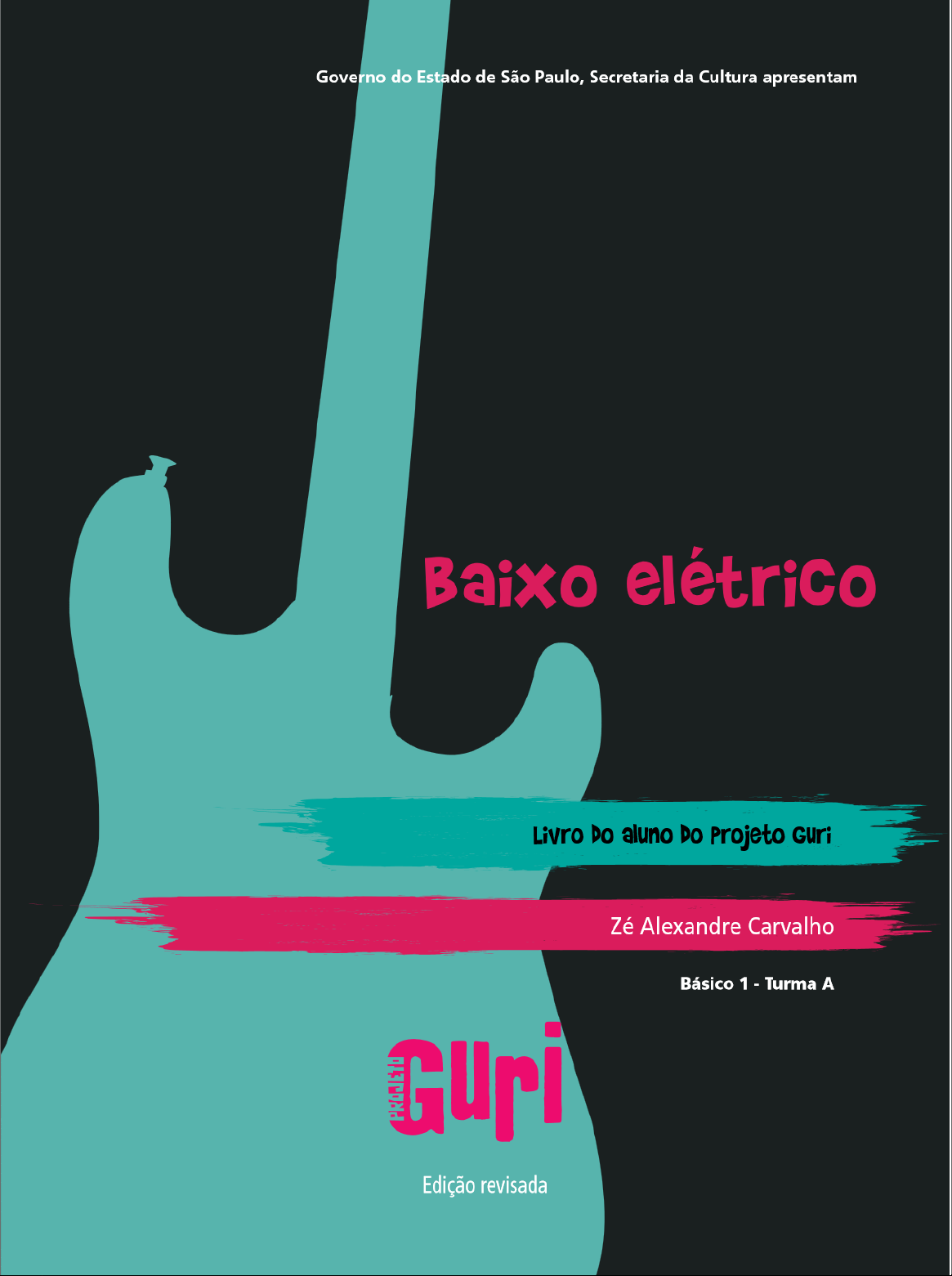 Sobre o Projeto Guri Mantido pelo Governo do Estado de São Paulo, o Projeto Guri é o maior programa sociocultural brasileiro e oferece desde 1995, nos períodos de contraturno escolar, cursos de iniciação musical, canto coral, instrumentos de cordas dedilhadas, cordas friccionadas, sopros, teclados e percussão. O Projeto Guri é administrado por duas organizações sociais ligadas à Secretaria de Estado da Cultura, que atendem, juntas, a cerca de 55 mil jovens. A Associação Amigos do Projeto Guri (Amigos do Guri) dirige mais de 370 polos, distribuídos no interior e litoral do Estado de São Paulo, oferecendo cursos de música a 35 mil alunos. Por meio de uma parceria com a Secretaria de Estado da Justiça, polos do Projeto Guri encontram-se em unidades da Fundação Casa (antiga Febem), com 147 ocinas musicais em 41 centros. Em 18 anos, o Projeto Guri atendeu a centenas de milhares de crianças, adolescentes e jovens, contribuindo para a ampliação do repertório cultural, para a formação sociocultural e para o desenvolvimento humano das gerações em formação. Além do suporte do Governo do Estado – idealizador e mantenedor do projeto –, a Amigos do Guri conta com o apoio de prefeituras, organizações sociais, empresas e pessoas físicas. O Projeto Guri realiza um trabalho que tem na música seu instrumento de transformação; e nos guris sua obra-prima. Introdução Sumário 06 07 19 33 47 59 69 75 85 93 105 UNIDADE 1 Pé no Chão corpo e o som UNIDADE 2 Primeiros sons função do instrumento na música UNIDADE 3 A linguagem da música aprendizado da leitura musical UNIDADE 4 Leitura, intervalos e levadas prática dos fundamentos UNIDADE 5 Uma síntese dos primeiros passos Fixação do conteúdo aplicado nas unidades 1, 2, 3 e 4 UNIDADE 6 O Instrumento e Eu técnica aplicada ao baixo UNIDADE 7 Estruturas da mão esquerda ovos conhecimentos de escalas e acordes UNIDADE 8 Mãos à obra Princípios do acompanhamento UNIDADE 9 O grupo Habilidade de tocar em conjunto UNIDADE 10 Síntese final ma revisão dos conceitos e conteúdos do livro Livro do aluno do Projeto Guri - Baixo elétrico BAIO EL ICO UNIDADE 1 Pé no Chão corpo e o som Nesta unidade faremos o primeiro contato com o baixo e aprenderemos algumas noções básicas de música, como o nome das notas naturais e a importância de conhecermos os estilos musicais. 8 Livro do aluno do Projeto Guri - Baixo elétrico ula 1 tividade 1.1 – Primeiro contato Nesta atividade inicial você conhecerá o baixo elétrico e aprenderá a função de cada uma das partes do instrumento. Vai saber também como devemos apoiá-lo e segurá-lo, além de conhecer o som do baixo elétrico. xercício a Qual o nome do instrumento que estamos estudando? Quantas cordas ele possui? __________________________________________________________________________________ xercício b O baixo é um instrumento de som grave ou agudo? Ouça o educador e depois explique como é um som grave. Dê exemplos de instrumentos ou coisas que produzem sons graves. __________________________________________________________________________________ __________________________________________________________________________________ __________________________________________________________________________________ __________________________________________________________________________________ __________________________________________________________________________________ xercício c Tente produzir no seu baixo sons que imitem outros objetos e instrumentos, por exemplo: o som de uma moto acelerando, de um trovão, de uma ventania – ou sons que causem sensações – mis- tério, calma, paz e assim por diante. Seja criativo! xercício d Com os colegas, tente descobrir a função das tarraxas e dos captadores no baixo elétrico. xercício e Com a ajuda do educador, experimente tocar com o baixo desligado e compare o som com o baixo ligado. Além da diferença de volume, o que mais você acha que soa diferente? xercício f O contrabaixo não toca apenas sons graves. Tente produzir sons agudos no instrumento. Livro do aluno do Projeto Guri - Baixo elétrico 9 ula 2 tividade 1.2 – Correção da lição Verique com o educador as atividades para fazer em casa 1.1 e 1.2, passadas na aula anterior. Mostre ao educador os instrumentos que encontrou e anotou na atividade anterior. Compare-os com os instrumentos encontrados pelos colegas. tividade 1.3 – prender a ouvir Nesta atividade você vai ouvir uma música escolhida pelo educador. Lembre-se que, independente do instrumento que escolhemos para tocar, ouvir é a principal forma de aprender música. Ouvindo, entendemos a música com todas as suas nuances e timbres. Peça ao educador que fale um pouco sobre timbres e nuances, pois estas são características mu- sicais muito importantes, principalmente para as atividades de escuta e de apreciação musical. 6ocê consegue ouvir e identicar o baixo nas músicas? Isso pode ser difícil no começo. O exercício abaixo ajudará a “encontrar” o baixo em meio aos outros instrumentos. xercício a Ouça a gravação quatro vezes, em cada uma delas procure prestar atenção em um destes aspectos: 1ª audição - No ritmo de uma forma geral 2ª audição - Nos instrumentos que tocam o ritmo 3ª audição - No baixo 4ª audição - Em todos os instrumentos 6e você não conseguir ouvir o som do baixo na gravação, peça ajuda ao educador. Preencha o seguinte questionário: I – Qual o ritmo da música?___________________________________________________________ II – Quantos instrumentos tocam?______________________________________________________ III – Quais instrumentos tocam o ritmo nesta música? ____________________________________ __________________________________________________________________________________ 10 Livro do aluno do Projeto Guri - Baixo elétrico IV – Você gostou da música? Por quê? _________________________________________________ _________