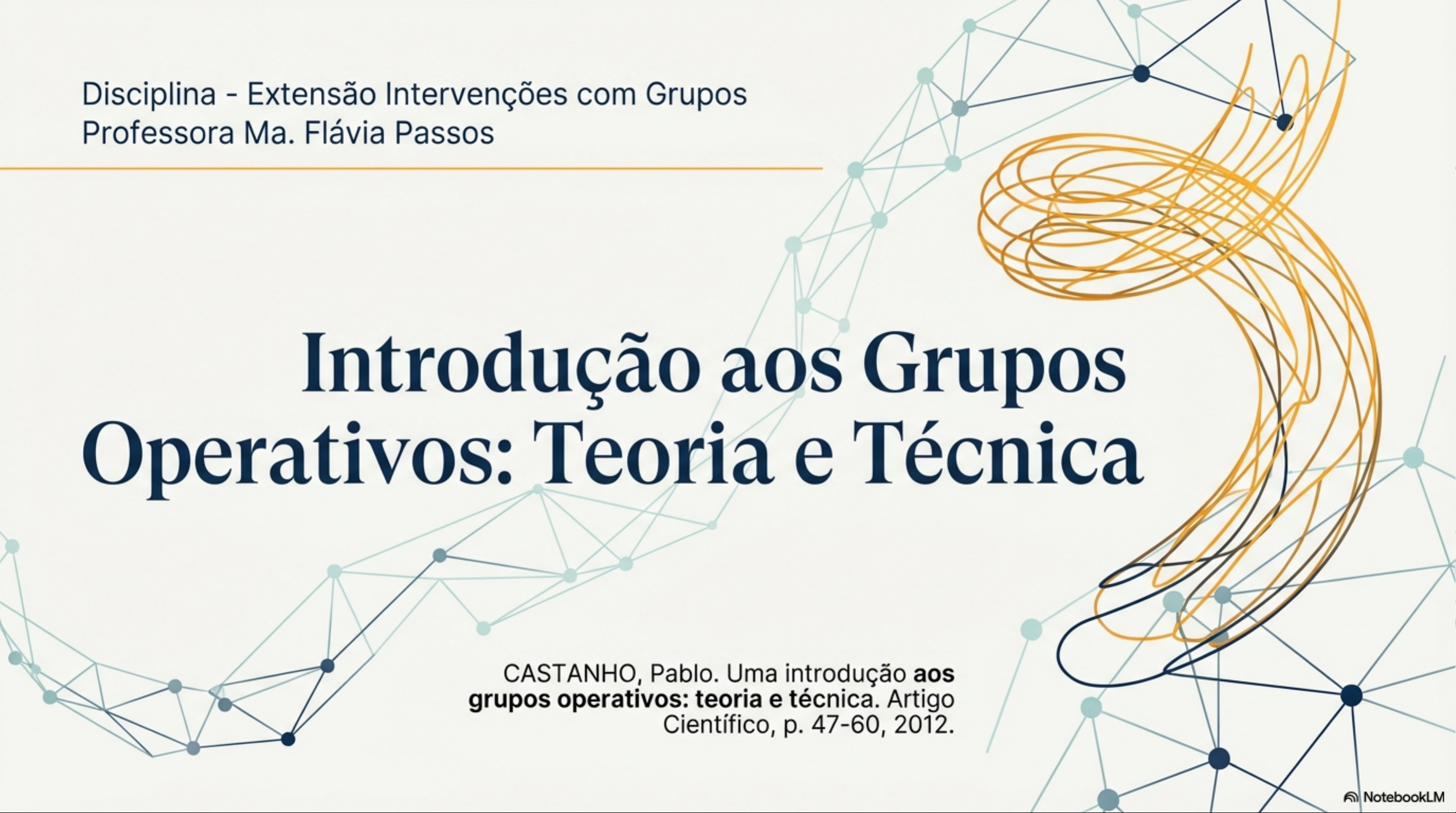 Disciplina - Extensão Intervenções com Grupos Professora Ma. Flávia Passos Introdução aos Grupos Operativos: Teoria e Técnica CASTANHO, Pablo. Uma introdução aos grupos operativos: teoria e técnica. Artigo Científico, p. 47-60, 2012. NotebookLMA Dupla Visão: Indivíduo e Conjunto Eixo Horizontal: grupo pensado e atuando em sua totalidade. As relações Eixo Vertical: e correntes que só A história de existem na interação constituição e os entre duas ou mais processos psíquicos pessoas. internos de um único sujeito. indivíduo em sua singularidade. NotebookLMGrupo é Maior que a Soma das Partes A Equação A Herança da Gestalt: 0 grupo não é uma soma matemática de participantes. Elementos se fundem em uma nova figura (organização, atmosfera, subgrupos). A Analogia Orgânica (Foulkes) A Regra da Observação (Kurt Lewin): Observar um grupo não é registrar microbiografias paralelas, mas sim registrar as propriedades da entidade grupal em si. que ocorre, ocorre entre as pessoas. NotebookLMPorta-voz: A Voz e Corpo do Coletivo Em um grupo, que uma pessoa diz, pensa, sente ou faz nunca é exclusivamente seu. Essa pessoa está personificando uma corrente ativa do conjunto total. Nota Estrutural: o conceito pichoniano (porte-voix) vai além da fala verbal. Abrange toda forma de conduta que denuncie algo sobre grupo no qual sujeito está inserido. NotebookLMAs Múltiplas Faces da Denúncia Grupal Porta-sintoma - Porta-sonho - Porta-silêncio - Adoecimento. Imaginário Compartilhado. Medo Não Dito. A sofrimento mental de um indivíduo estudante que sonha com um Aquele que cala e carrega a carga é vista como o emergente de um barco afundando durante uma do que grupo teme verbalizar. grupo familiar doente. Trata-se a greve, dando forma à angústia e silêncio individual estrutura família para curar porta-voz. representação coletiva da turma. a defesa do todo. NotebookLMAbandono do Estático: Rumo à Dialética Gestalt (Forma) Gestaltung (Estruturando / Dialética) Pichon-Rivière notou que a palavra Gestalt falhava em grupo é um processo incessante. A dialética materialista transmitir aspecto central dos grupos: movimento compreende a realidade como algo contraditório em si, contínuo. A realidade não é uma forma fixa. onde embate de opostos gera movimento. NotebookLMA Espiral Dialética: Motor da Aprendizagem Sintese (B) Aprendizagem Tese (A) (não-A) A aprendizagem em grupos Cada síntese alcançada eleva operativos não é linear; é grupo a um novo patamar de espiralada. encontro com a capacidade para lidar com mundo, contradição exige elaboração. reiniciando ciclo em um nível superior. NotebookLMAs Três Leis da Dialética Aplicadas aos Grupos Contradição Universal Negação da Negação Quantidade em Qualidade (A não-A) (Aufheben / Superação) (A Ruptura) Exemplo: 0 grupo afirma que tudo está A resolução não é um meio-termo, A água ferve aos 100°C. 0 acúmulo maravilhoso (A), mas a latência esconde mas a destruição e elevação a um nível gradual de tensão e afetos gera um uma insatisfação (não-A). Os contrários mais alto (B). grupo abandona a salto abrupto: 0 insight, mudando se interpenetram; movimento surge oscilação estéril e cria uma nova instantaneamente 0 clima e a estrutura de identificar que foi negado. percepção. do grupo. NotebookLMHomem em Situação: Materialismo Histórico História Cultura Economia Linguagem Cotidiano Material, para Pichon-Rivière, não é apenas 0 que se pode tocar. É a realidade concreta, multideterminada e histórica do ser humano no mundo. 0 grupo é atravessado pelas forças da cultura, da linguagem e do cotidiano de seus membros. A psique toma forma na situação real. NotebookLMDiagnóstico do Processo: Saúde Doença SAÚDE DOENÇA SAÚDE DOENÇA Movimento A Estereotipia A saúde psíquica é tributária do movimento da A paralisia do movimento. grupo trava por conta espiral dialética. Os papéis circulam fluentemente de fantasias inconscientes (angústias depressivas entre os membros. Novas compreensões da ante a perda do conhecido, e paranoides ante a realidade são constantemente geradas. exigência do novo). Os papéis ficam cristalizados. NotebookLMDispositivo: Grupo Operativo de Aprendizagem Observador Os Integrantes Coordenador Os Integrantes Parâmetros Formato: Máximo de 25 Os Integrantes Os Integrantes participantes. Recomendado até 15 integrantes. Pessoas Os Integrantes Os Integrantes dispostas em círculo, permitindo olhar e a interação total. Os Integrantes Os Integrantes Tempo: Duração demarcada de 1 a 1,5 horas. Os Integrantes Os Integrantes Equipe: Coordenador e (idealmente) um Observador. Os Integrantes Reúne-se com um objetivo explícito em comum. Na visão pichoniana, realizar um trabalho objetivo e promover desenvolvimento psíquico não são excludentes a eficiência máxima exige ser humano total. NotebookLMA Verdadeira Tarefa: A Integração do Ser Realizar objetivo explícito (estudar, trabalhar, discutir) não garante que o grupo esteja em Tarefa. A verdadeira Tarefa só ocorre quando há elaboração psíquica das ansiedades básicas. Sentir Pensar Agir A saúde exige uma ação onde sentir, pensar e agir operam de forma integrada. objeto de conhecimento só é penetrado quando a pauta dissociativa é rompida. NotebookLMA Pré-Tarefa e a Impostura do Como Se Como Se Condutas parciais onde grupo cria um simulacro. Para evitar a angústia Falam da boca para fora da mudança, grupo ou cumprem prazos de recorre à dissociação forma vazia apenas para (separando que sente apaziguar coordenador. do que pensa e faz). É a estagnação; o sujeito torna-se uma caricatura alienada de si mesmo, evitando mergulho na verdadeira elaboração. NotebookLMA Posição do Coordenador: Vigiar a Estrutura coordenador não entra na discussão do conteúdo da tarefa. Rastreia os sentimentos e as fantasias latentes disparadas pela tarefa. Observa fluxo contínuo da espiral d