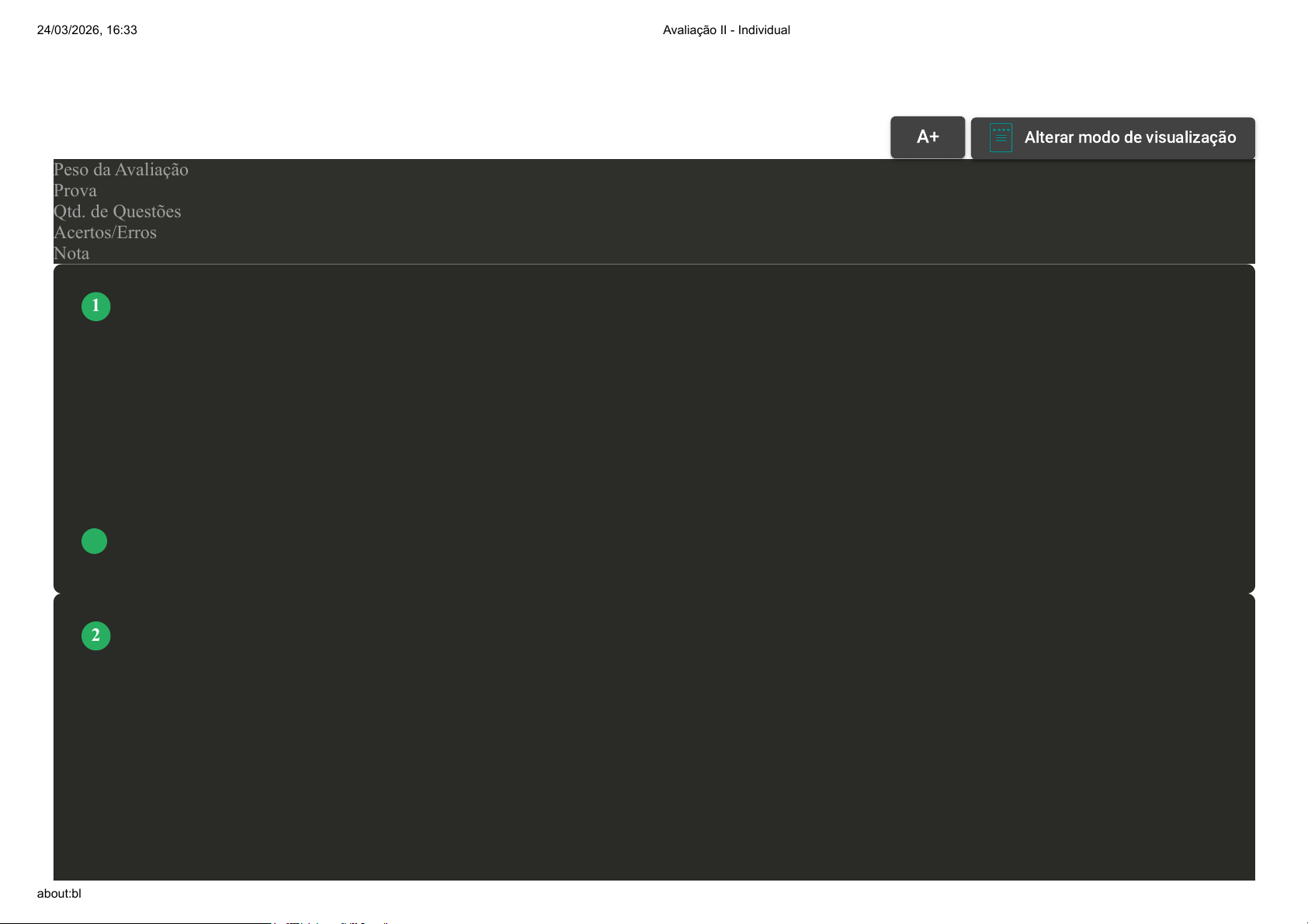 Prova Impressa GABARITO | Avaliação II - Individual (Cod.:1600626) Peso da Avaliação 1,50 Prova 116946416 Qtd. de Questões 10 Acertos/Erros 10/0 Nota 10,00 O sistema esquelético faz parte da sustentação do corpo humano, possibilitando inúmeros movimentos em conjunto com o sistema muscular. O sistema esquelético é dividido, de forma didática, em dois esqueletos: esqueleto axial e esqueleto apendicular. Nesse contexto, assinale a alternativa CORRETA: A O esqueleto apendicular é composto pelos membros superiores e inferiores. Essa parte do esqueleto é composto por 80 ossos. B O esqueleto axial é composto pelas regiões corporais que têm como função eixo central do corpo. Essa parte do esqueleto é formado por 126 ossos. C O esqueleto apendicular é composto pelas regiões corporais que têm como função eixo central do corpo. Essa parte do esqueleto é composto por 126 ossos. D O esqueleto axial é composto pelas regiões corporais que têm como função eixo central do corpo. Essa parte do esqueleto é formado por 80 ossos. Os músculos desempenham um papel muito importante na estabilização das articulações. O equilíbrio muscular estabelecido em torno de uma articulação coloca em oposição e em sinergismo músculos agonistas e antagonistas, certificando o perfeito funcionamento dessa articulação, e essa associação determina o equilíbrio muscular. Sobre os músculos agonistas, avalie as asserções a seguir e a relação proposta entre elas: I- Os músculos agonistas são conhecidos como movimentadores primários. PORQUE II- Causam movimento ao redor de uma articulação por meio de ação concêntrica. Assinale a alternativa CORRETA: VOLTAR A+Aumentar, FonteAlterar modo de visualização 1 2 24/03/2026, 16:33 Avaliação II - Individual about:blank 1/7 A A asserção I é uma proposição verdadeira, e a asserção II é falsa. B As asserções I e II são proposições verdadeiras, mas a asserção II não é uma justificativa correta da asserção I. C A asserção I é uma proposição falsa, e a asserção II é verdadeira. D As asserções I e II são proposições verdadeiras, e a asserção II é uma justificativa correta da asserção I. A região cervical é constituída por músculos anteriores e posteriores e estes formam pares, ou seja, o mesmo músculo se localiza tanto do lado direito como do lado esquerdo. Dependendo de sua origem e inserção, eles executam diferentes funções. Nesse contexto, classifique V para as sentenças verdadeiras e F para as falsas: ( ) Os músculos motores primários que realizam a extensão cervical são: esternocleidomastoideos direito e esquerdo. ( ) Os músculos motores primários que realizam a flexão são: trapézio (fibras superiores), esplênio da cabeça, esplênio do pescoço e semiespinhal da cabeça - de ambos os lados. ( ) Os músculos principais que realizam a inclinação lateral são: esternocleidomastoideo do lado do movimento. Assinale a alternativa que apresenta a sequência CORRETA: A F - F - V. B V - V - F. C F - V - F. D V - F - V. Chamamos de articulação, junta ou juntura o encontro ou relacionamento de duas ou mais peças esqueléticas (ossos ou cartilagens), proporcionando movimentos ao corpo. As articulações possuem pontos estruturais e funcionais em comum, permitindo classificá-las em três grandes grupos: fibrosas (sinartrose); cartilaginosas (anfiartrose); e sinoviais (diartrose). Nesse contexto, analise as sentenças a seguir: I- As articulações fibrosas (sinartrose) são aquelas nas quais o tecido interposto entre os ossos que se articulam é o tecido conjuntivo fibroso denso. O 3 4 24/03/2026, 16:33 Avaliação II - Individual about:blank 2/7 grau de mobilidade dessa articulação é pequeno. Existem três tipos de articulações fibrosas: sutura, sindesmose e gonfose. II- As articulações cartilaginosas (anfiartrose) são caracterizadas pela existência da cápsula sinovial, que nela contém o líquido sinovial (sinóvia). Esse fluido, junto às camadas de cartilagem que revestem as extremidades dos ossos, auxilia a lubrificação da articulação. Possuem outras estruturas: cartilagem articular, cápsula articular e cavidade articular. III- As articulações sinoviais (diartrose) apresentam-se rígidas e restritivas quando nos referimos ao movimento. Essa restrição de movimento acontece pela presença de um disco ou membrana de fibrocartilagem na ligação entre os dois ossos. Outra causa dessa articulação ter limitação de movimento é a presença de ligamentos que envolvem uma junta cartilaginosa. Assinale a alternativa CORRETA: A As sentenças I e III estão corretas. B Somente a sentença III está correta. C Somente a sentença I está correta. D As sentenças II e III estão corretas. O sistema muscular é formado por um conjunto de aproximadamente 600 músculos, que unidos representam de 40 a 50% do peso total do corpo humano. Os músculos possuem a capacidade de realizar contração e relaxamento, produzindo movimentos juntamente ao sistema esquelético. Nesse contexto, analise as sentenças a seguir: I- O músculo esquelético é o tecido menos numeroso do corpo humano. II- Actina e miosina são as principais proteínas contráteis. III- O músculo esquelético possui somente um tipo de fibra muscular. Assinale a alternativa CORRETA: A As sentenças I e II estão corretas. B Somente a sentença II está correta. C Somente a sentença I está correta. 5 24/03/2026, 16:33 Avaliação II - Individual about:blank 3/7 D As sentenças II e III estão corretas. O core é uma região do corpo que pode ser caracterizada como uma "caixa muscular", e nessa "caixa" encontram-se 29 pares de músculos que contribuem para estabilizar a coluna vertebral, pelve e a cadeia cinética no período dos movimentos funcionais. Sobre o core, classifique V para as sentenças verdadeiras e F para as falsas: ( ) A sustentação da estabilidade da coluna vertebral depende dos músculos do