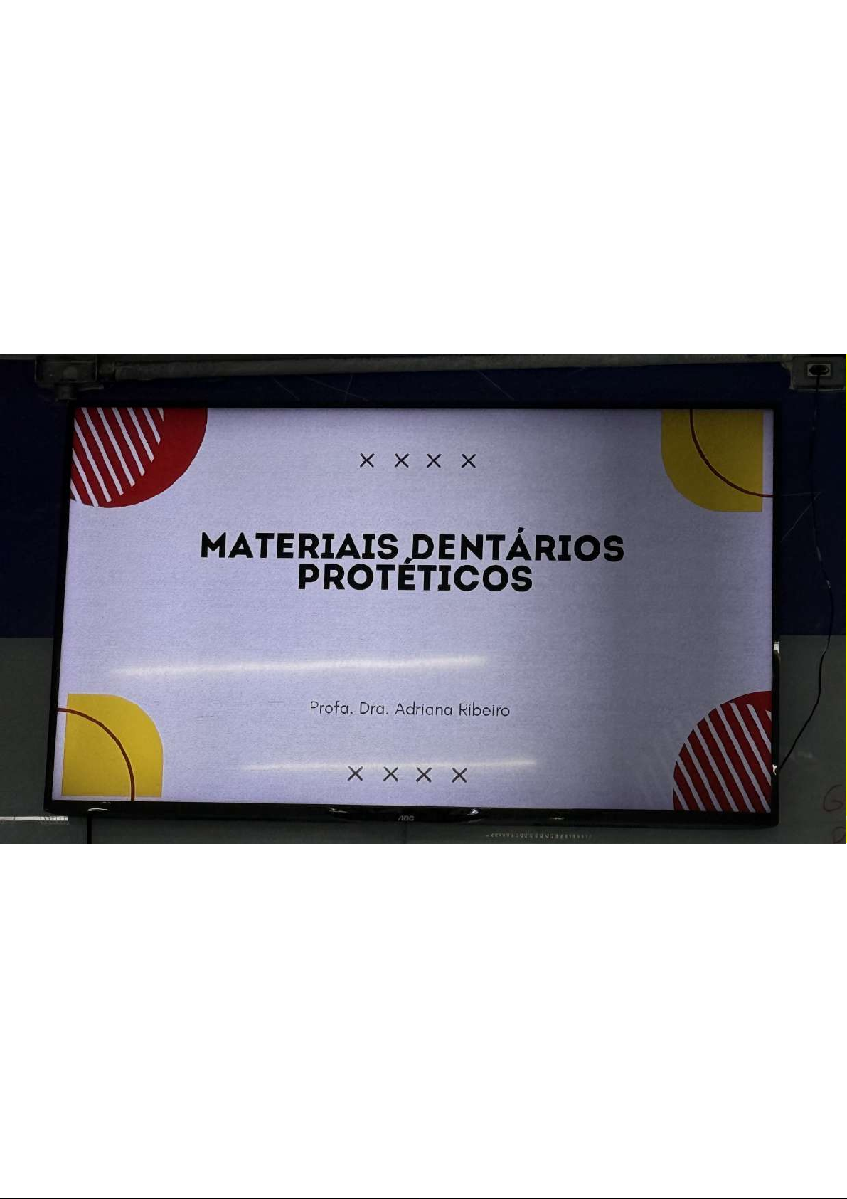 XXXX MATERIAIS ,DENTÁRIOS PROTETICOS Profa. Dra. Adriana Ribeiro XXXXMoldagem Molde TERMINOLOGIA Moldelagem ModeloMOLDAGEM MOLDEAlginato QUAL O MATERIAL? Elastômeros AnelásticosMODELAGEM 0 ato relacionado à moldagem, diferenciando apenas pela sua utilização direta nos trabalhos na boca do paciente. A utilização direta que mencionamos diz respeito ao pro- cesso pelo qual dentista realiza a moldagem de uma área pequena, como a do núcleo de um dente.Preparo da resina acrílica tivada quimicamente (RAAQ), Duralay levada ao conduto com Duralay adaptada ao redor do auxílio de uma broca Lentulo DuraLay. pino selecionado, O qual levado ao interior do conduto. conduto de previamente acrílico deve lubrificado ser várias com vaselina vezes movimentadoIncremento de resina na porção Modelagem com espátula para coronária do padrão de acrílico - obter a forma de uma coroa Técnica do pincel com dimensões menoresIncremento de resina na porção Modelagem com espátula para coronária do padrão de acrilico - obter a forma de uma coroa Técnica do pincel com dimensões menoresPreparo da porção rção coronária do padrão de D de com contorno apropria priado do preparo para retentor de de umaMODELAGEM 0 ato relacionado à moldagem, diferenciando apenas pela sua utilização direta nos trabalhos na boca do paciente. A utilização direta que mencionamos diz respeito ao pro- cesso pelo qual dentista realiza a moldagem de uma área pequena, como a do núcleo de um dente.8 N MODELOQUAL O MATERIAL? Gessos odontológicosMATERIAIS DE MOLDAGEMMoldagem mat. moldagen Molde neg geno Modelehidrocoloide apresentação em forma de pó massa para moldagem do alginato é obtida pela incorporação do pó à Alginato água. proporção definida água/pó uso de gral de vinil - espatulação transferência para moldeiraPo 1 água 2 3 2 1a 2 2 2 ,g u N : gPolissulfeto Elastômeros Silicones Poliéteres~40s To tRabalho PRESAPOLISSULFETO E um composto de mercaptana multifuncional, apresentado em tubos - - Permlastic apropriados para a correta mistura e que proporciona um material dentário KERR de excelente qualidade para a moldagem. Indicado para prótese fixa e prótese sobre implante.POLISSULFETO Vantagens: Alta resistência ao - I rasgamento, tempo de trabalho longo e boa fidelidade de cópia. Permlastic KERR Desvantagens: Odor forte (compostos de enxofre), tempo de presa lento, baixa estabilidade dimensional (vazamento recomendado em até 30 min hora) e mancha roupas. XPOLISSULFETO - - - - Manipulação: Composto por pasta base Permlastic e catalisador (normalmente dióxido de chumbo), manipulados em placa de vidro com espátula 24. PermlasticCópia do Introdução ao Estudo dos A + Apresentar Pede pro Canva Editar I Fundo Mágico Removedor de Fundo Inverter Animar Posição POLISSULFETO X X 21 24 25 Notas Temporizador 43% Páginas 22/40 28°C POR 0839SILICONE DE CONDENSAÇÃO silicone por condensação é fornecido como uma pasta- base e um líquido catalisador de baixa viscosidade (ou pasta catalisadora), ou seja, um sistema de duas pastas ou um sistema de duas massas. silicone por condensação tem a sua reação de presa ocasionada por formação de ligações cruzadas entre OS grupos terminais dos polímeros de silicone e silicato de alquila. X X X XPerfilkit Tudo que 20g precisa em embalagemi CLONAGE CLONAGE fill CLONAGE - I , zetaplus zetaplus oranwash L get - :SILICONE DE ADIÇÃO O silicone por adição é diferenciado pela forma de presa que realiza. Ela ocorre na poli- por adição dos I / componentes básicos / (divinilpolisiloxano e do polimetilhidro- siloxano, com um sal de platina como catalisador).POLIÉTERES Alta Precisão: Oferece excelente reprodução de detalhes, crucial para término cervical. Estabilidade Dimensional: Pode ser vazado em gesso até 7 a 15 dias após a moldagem sem distorções significativas. GM Hidrofilia: A saliva e fluidos gengivais não impedem a cópia, evitando bolhas. XXXXPOLIÉTERES Manipulação: Disponível em viscosidades baixa, média e alta, permitindo moldagens simultâneas ou monofásicas. 3M Resistência: Boa resistência ao rasgamento e alta recuperação elástica. XXXXCERASCeras para resgistro de mordida Cera rosa CERAS DO, CONSULTÓRIO Cera utilidade Cera padrão de baixa fusãoCERAS UTILIDADE A 0 Cera Utilidade Wax Utility/Cora Utilidad 225g as Para UseM.CERAS TIPO ROSA 7 LYSANDA Cera Rosa 7 Wax Pink 7/Cera Rosa 7 225g / 18 Para Use /Renata Blümer 4 wGESSOS ODONTOLÓGICOSGESSOS ODONTOLÓGICOS gesso para moldagem (tipo 1), gesso comum (tipo II), gesso-pedra (tipo III), gesso-pedra de alta resistência (tipo IV), gesso-pedra de alta resistência e alta expansão (tipo V) e gessos especiais. XXXXGESSO TIPO I Esse tipo de gesso como material de moldagem é composto por gesso de paris, com modificações adicionais para regular O tempo de presa e a sua expansão.GESSO TIPO II tipo comum, mais conhecido como gesso paris, é utilizado para modelos preliminares, modelos antagonistas, base de preenchimento da mufla e contramufla, fixação dos modelos no articulador, construção de próteses totais, quando a expansão de presa não é crítica e a resistência é adequadaVadimGESSO TIPO III gesso-pedra, muito conhecido como "pedra amarelo", é utilizado para modelos de estudo e planejamento de próteses dentárias. É um gesso mais reforçado e dificilmente quebradiço.Confecção do modelo preliminar gesso tipo III sob vibraçãoGesso tipo III agua 100g 30-40 1009 10+10+10 30GESSO TIPO IV Gesso-pedra de alta resistência (Tipo IV) Também conhecido como gesso-pedra melhorado, gesso especial ou gesso para troquel. trabalho para O qual este gesso é indicado requer resistência, dureza e expansão de presa mínima.vadimGESSO TIPO V Gesso-pedra de alta resistência e alta expansão (tipo V) Esse é O tipo de gesso que apresenta resistência ainda maior do que O gesso tipo IV. A modificação efetuada para esse gesso é utilizada em trabalhos com li