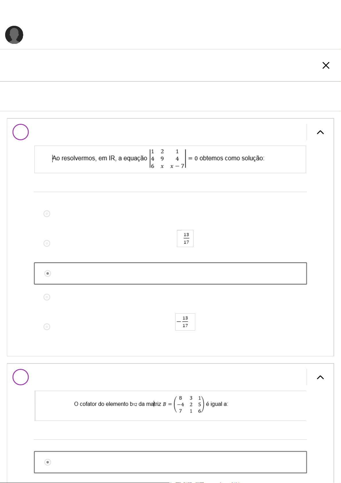 Atividade de Sistematização – Unidade III 1 MÚLTIPLA ESCOLHA 0,25 / 0,25 2 MÚLTIPLA ESCOLHA 0,25 / 0,25 A -13 B C 13 D 0 E A 59 Os comentários estarão disponíveis após a data de entrega As respostas corretas estarão disponíveis após a data de entrega ENVIADO: 14/04/26 17:43 RECIBO: B0D8EB26D1B942878427A7C666AAF7CB 1 / 1 Nota final Tentativa com a nota mais alta 1 / 1 3 MÚLTIPLA ESCOLHA 0,25 / 0,25 4 MÚLTIPLA ESCOLHA Crédito total dado 0,25 / 0,25 B -59 C 0 D 11 E -11 A -1 B -13 C 13 D 0 E 1 QUESTÃO ANULADA: Assinale qualquer alternativa para pontuar. A 9 B -5 C -9 D 5 E 29