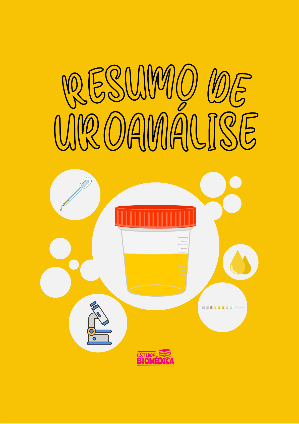 UROANÁLISEUROANÁLISE RESUMO DERESUMO DE @estuda.biomedica Produzido por: Karla Emilia Silva Maciel Licenciado para - B renda E len Á lvares dos S antos - 05905429740 - P rotegido por E duzz.com ATENÇÃO!!! Este material é de uso exclusivo daquele que o adquiriu. Portanto, fica proibido o compartilhamento e/ou a comercialização do mesmo, visto que se trata de um crime previsto no art.184 do código penal brasileiro, com pena de 3 meses a 4 anos de reclusão ou multa @estuda.biomedica Conteúdo Introdução ao Sistema Urinário______________________________03 Orientações e Cuidados_____________________________________05 Etapas do Exame de Urina___________________________________06 Cor_______________________________________________________07 Aspecto___________________________________________________08 Depósito___________________________________________________09 Odor______________________________________________________09 Fita Reativa________________________________________________09 Interferentes Pré-Analíticos da Fita Reativa___________________18 Alterações nas amostras de urina após duas horas______________19 Elementos visualizados na microscopia________________________20 Cristais de Urina Ácida______________________________________27 Cristais de Urina Alcalina____________________________________30 Cristais Anormais___________________________________________35 Cilindros Urinários__________________________________________40 Outros Elementos___________________________________________51 Leitura de Urina em Câmara de Neubauer_____________________61 Como expressar resultados no laudo__________________________62 Referências________________________________________________63 Licenciado para - B renda E len Á lvares dos S antos - 05905429740 - P rotegido por E duzz.com Como todo mundo sabe, os nossos rins são os nossos “filtros”, são órgãos pares que se assemelham a grãos de feijão, olha que fofo!!! Dentro dos rins, temos os néfrons que são suas unidades funcionais, cada rim possui cerca de um milhão de néfrons. Cada néfron tem dois componentes principais: corpúsculo renal e os túbulos. Corpúsculo renal: pequena estrutura, formada pelo glomérulo (emaranhado de capilares) e pela cápsula de Bowman. Túbulos: longo tubo no qual o filtrado será posteriormente convertido em urina @estuda.biomedica Introdução ao Sistema Urinário 3 *P ro ib id o o co m pa rt ilh am en to d es te m at er ia l! Licenciado para - B renda E len Á lvares dos S antos - 05905429740 - P rotegido por E duzz.com A formação da urina se dá por conta da filtração sanguínea no glomérulo, este filtrado irá circular pelo túbulo contorcido proximal, alça de Henle, túbulo contorcido distal e ducto coletor. A regulação da função renal está diretamente relacionada com a ingestão de líquido do indivíduo. A nossa bexiga é a nossa bolsa armazenadora de urina. Na parte inferior da nossa bexiga, temos o esfínter, um músculo que fecha a uretra e controla a micção. Quando o esfínter é contraído, a urina é liberada para fora do corpo. @estuda.biomedica 4 *P ro ib id o o co m pa rt ilh am en to d es te m at er ia l! Licenciado para - B renda E len Á lvares dos S antos - 05905429740 - P rotegido por E duzz.com Alterações da amostra após duas horas em temperatura ambiente: Elevação do pH, diminuição da glicose, corpos cetônicos, bilirrubina, urobilinogênio e nitrito; aumento das bactérias e turbidez; alteração de cor, degradação de hemácias e cilindros Após refrigeração, a urina tende a apresentar cristais precipitados CRITÉRIOS DE REJEIÇÃO DE AMOSTRA DE URINA: Solicitação incompleta ou ilegível Amostra com identificação incorreta Contaminação visível ao olho nu Material com volume insuficiente @estuda.biomedica Orientações e Cuidados A urina deve ser coletada após assepsia devida. A amostra pode ser a qualquer hora do dia (randômica), a primeira ou a segunda urina da manhã. O método de conservação da amostra utilizado é a refrigeração, as amostras destinadas a cultura devem ser refrigeradas por até 24 horas, para a análise da urina de rotina não há uma padronização determinada quanto ao tempo de refrigeração. Quanto ao transporte ideal, é necessário que os recipientes de transporte possuam tampa para evitar que o material derrame. Para evitar risco de contaminação a amostra deve ser enviada ao laboratório dentro de no máximo 2 horas. Evite identificar as tampas dos coletores, lembrem-se que tampas podem ser trocadas por algum equívoco, então prefira identificar o frasco nas partes laterais 5 *P ro ib id o o co m pa rt ilh am en to d es te m at er ia l! Licenciado para - B renda E len Á lvares dos S antos - 05905429740 - P rotegido por E duzz.com 1 2 3 @estuda.biomedica Etapas do Exame de Urina Exame Físico: Exame Químico (Fita Reativa): Exame Microscópico (Sedimentoscopia): Cor Aspecto Depósito Odor pH Sangue/Hemoglobina Proteína Glicose Cetonas Bilirrubina Urobilinogênio Nitrito Leucócitos/Esterase leucocitária Hemácias Leucócitos Células epiteliais Cristais Cilindros e outros Sinonímia: Urina tipo 1, sumário da urina, urina simples, urina, exame da urina, EAS (elementos anormais e sedimentoscopia), ECU (exame comum da urina) e outros 6 *P ro ib id o o co m pa rt ilh am en to d es te m at er ia l! Licenciado para - B renda E len Á lvares dos S antos - 05905429740 - P rotegido por E duzz.com A coloração normal da urina vem a partir da pigmentação de todo um processo de degradação proveniente da quebra das hemácias, que chamamos de urocromos e urobilinas. Para facilitar seu entendimento, podemos dizer que a hidratação e concentração de solutos do paciente irá influenciar na coloração da urina. Normalmente, a cor da urina é amarela, podendo variar de amarelo claro a amarelo escuro (quanto mais hidratada a pessoa estiver, mais clara sua urina será), porém devido algumas anormalidades e/ou medi