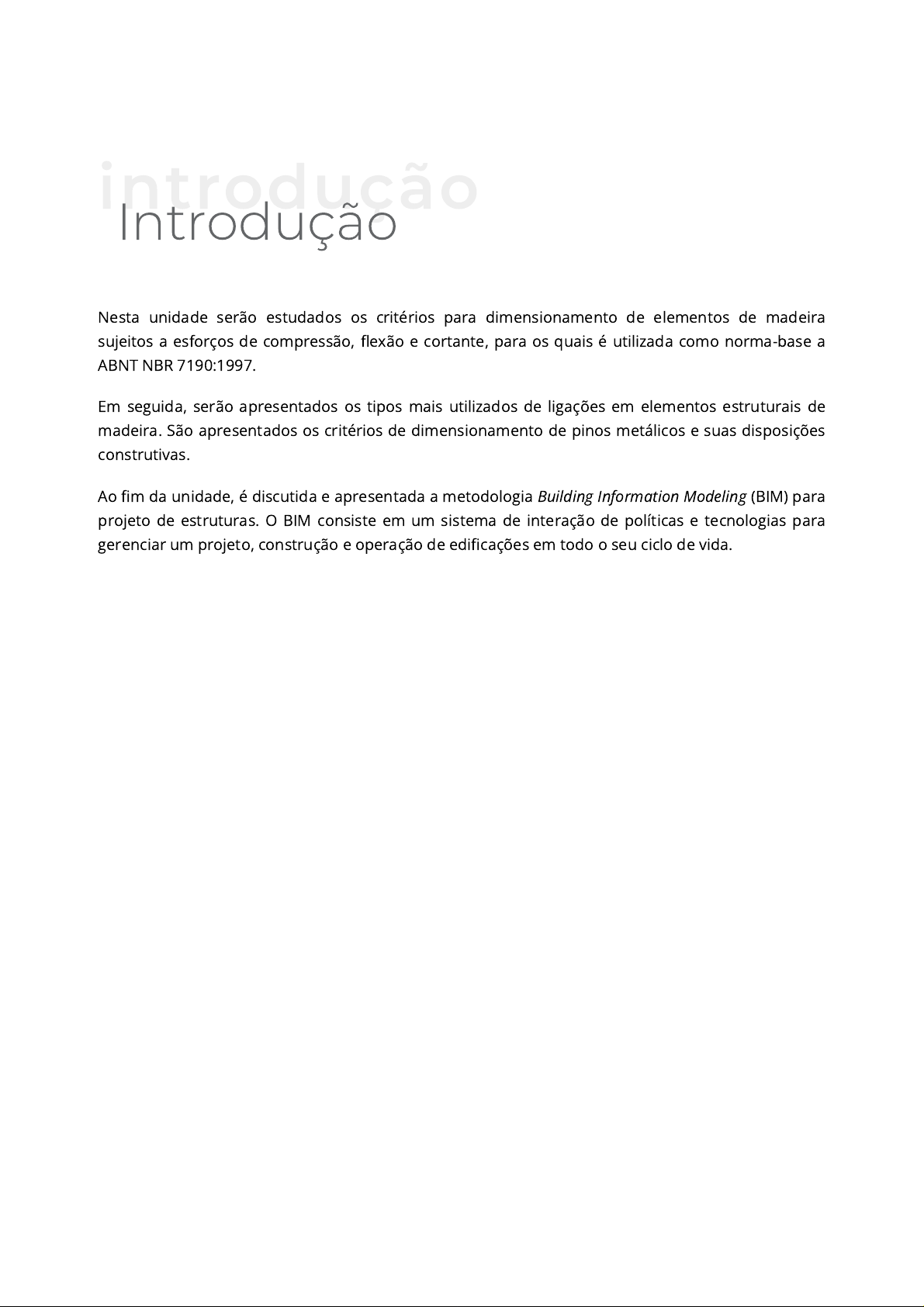 Nesta unidade serão estudados os critérios para dimensionamento de elementos de madeira