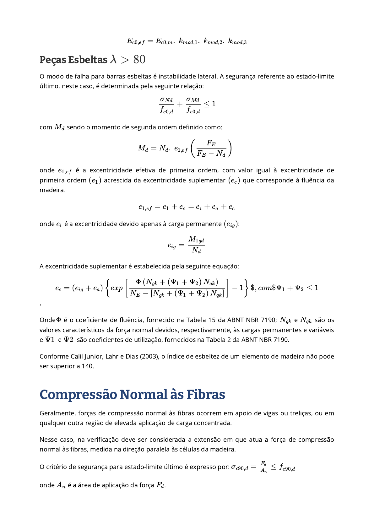 Conforme Calil Junior, Lahr e Dias (2003), o índice de esbeltez de um elemento de madeira não pode