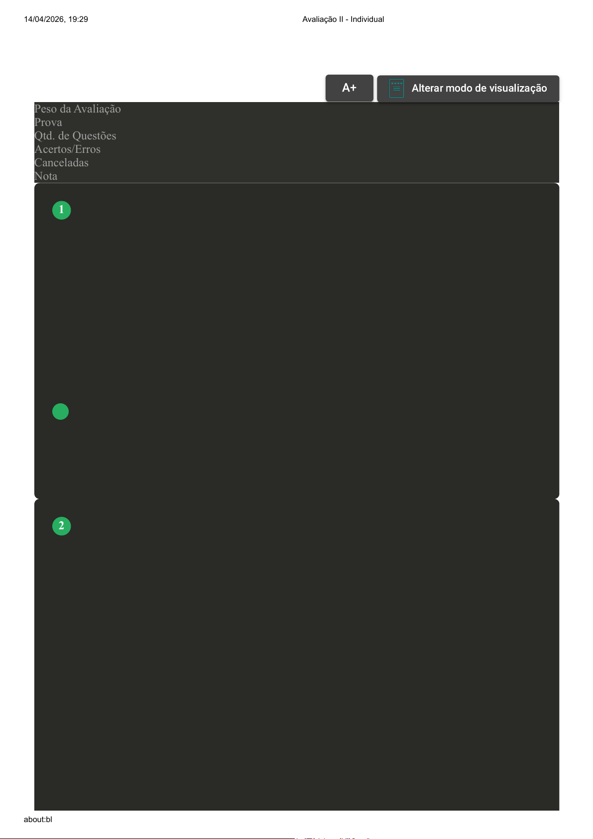 Prova Impressa GABARITO | Avaliação II - Individual (Cod.:688356) Peso da Avaliação 1,50 Prova 41432578 Qtd. de Questões 10 Acertos/Erros 9/0 Canceladas 1 Nota 10,00 É o orgão incumbido de sistematizar, consolidar e veicular a informação produzida coletivamente na Rede de Atenção à Saúde, mediante a transferência eletrônica de dados. Que órgão é esse? A INSS. B Ministério da Saúde. C DATASUS. D Sisvan. Os indicadores demográficos apresentam o número de habitantes dos municípios e as principais características da população, informações de grande importância para o planejamento de políticas públicas de saúde. Considerando indicadores demográficos, assinale a alternativa INCORRETA: A Índice de envelhecimento. B Razão de dependência. C Taxa de fecundidade total. VOLTAR A+Aumentar, FonteAlterar modo de visualização 1 2 14/04/2026, 19:29 Avaliação II - Individual about:blank 1/6 D Tríade ecológica. Há uma tripla carga de problemas que encontramos hoje no Brasil. O país enfrenta esses três tipos de problemas relacionados à saúde. Quais são eles? A A aids, a Covid-19 e a dengue. B As doenças infecciosas não erradicadas, as doenças crônicas que se tornaram mais prevalentes com o aumento da expectativa de vida e as causas externas. C O fato das mulheres terem menos filhos, o tabagismo e as doenças cardíacas. D A saúde pública, a saúde privada e a falta de saneamento. A amamentação é vital para a saúde de uma criança ao longo da vida e reduz os custos para as unidades de saúde, famílias e governos. Desde 1991, a Organização Mundial de Saúde, em associação com a Unicef, tem empreendido um esforço mundial no sentido de proteger, promover e apoiar o aleitamento materno. Sobre as recomendações da Organização Mundial de Saúde relativas à amamentação, analise as afirmativas a seguir: I- As crianças devem fazer aleitamento materno exclusivo até aos seis meses de idade, ou seja, até essa idade, o bebê deve tomar apenas leite materno e não deve dar-se nenhum outro alimento complementar ou bebida. II- A partir dos seis meses de idade, todas as crianças devem receber alimentos complementares (sopas, papas etc.) e manter o aleitamento materno. III- As crianças devem continuar a ser amamentadas, pelo menos, até completarem um ano de idade. Assinale a alternativa CORRETA: 3 4 14/04/2026, 19:29 Avaliação II - Individual about:blank 2/6 A As afirmativas I e II estão corretas. B As afirmativas I e III estão corretas. C Somente a afirmativa I está correta. D As afirmativas II e III estão corretas. Com relação aos sistemas de banco de dados para indicadores demográficos e socioeconômicos, alguns estão disponíveis para consulta on-line. De quais sistemas estamos falando? A IBGE, DATASUS, OPAS e RIPSA. B IBGE, DATASUS, IBOPE e RIPSA. C IBGE, DATABASE, OPAS e RIPSA. D IBGE, DIASUS, OPAS e RIPSA. Assinale a alternativa CORRETA que se referente aos propósitos do RIPSA: A Tem como propósito promover a disponibilidade adequada e oportuna de dados básicos, indicadores e análises sobre as condições de saúde e suas tendências, visando aperfeiçoar a capacidade de formulação, gestão e avaliação de políticas e ações públicas pertinentes. B Órgão incumbido de sistematizar, consolidar e veicular a informação produzida coletivamente na Rede de Atenção à Saúde, mediante a transferência eletrônica de dados. 5 6 14/04/2026, 19:29 Avaliação II - Individual about:blank 3/6 C Tem como missão a produção, análise, pesquisa, disseminação de informações de natureza estatística. D Todas as alternativas estão corretas. Atenção: Esta questão foi cancelada, porém a pontuação foi considerada. A história natural da evolução de uma doença, seu agente causador, sua cura com remédios e tratamentos e a prevenção através de vacinas podem criar uma armadilha ao pensamento científico que não permita ver além desse tripé, que já foi chamado pelo sanitarista Sérgio Arouca de tríade ecológica. Baseado nesta afirmação, classifique V para as sentenças verdadeiras e F para as falsas: ( ) Agente etiológico (o micróbio). ( ) Hospedeiro (o doente). ( ) Meio ambiente. ( ) Ambiente pluvial (chuvas). Assinale a alternativa que apresenta a sequência CORRETA: A F - F - F - V. B V - V - V - F. C V - F - V - V. D V - V - V - F. O demógrafo e economista José Eustáquio Alves, do Instituto Brasileiro de Geografia e Estatística (IBGE), falou sobre o bônus demográfico, momento que segundo o especialista, acontece apenas uma 7 8 14/04/2026, 19:29 Avaliação II - Individual about:blank 4/6 vez na história de cada país. “É o momento em que a pirâmide está se transformando. Depois, ele passa e chega o envelhecimento populacional”, constatou. Assinale a alternativa CORRETA que apresenta sobre o momento do bônus demográfico corresponder, na estrutura populacional de um país, como: A ao aumento da taxa de natalidade. B à redução da razão de dependência. C à contração do sistema previdenciário. D ao avanço do desemprego estrutural. Assinale a alternativa CORRETAque está de acordo com os fatores de risco da população brasileira: A Obesidade. B Todas as alternativas estão corretas. C Alcoolismo. D Tabagismo. Assinale a alternativa CORRETA que apresenta o período que a Organização Mundial de Saúde recomenda que o aleitamento matermo seja alimento exclusivo; A Seis meses. B Dois anos. C Três meses. 9 10 14/04/2026, 19:29 Avaliação II - Individual about:blank 5/6 D Quatro anos. Imprimir 14/04/2026, 19:29 Avaliação II - Individual about:blank 6/6