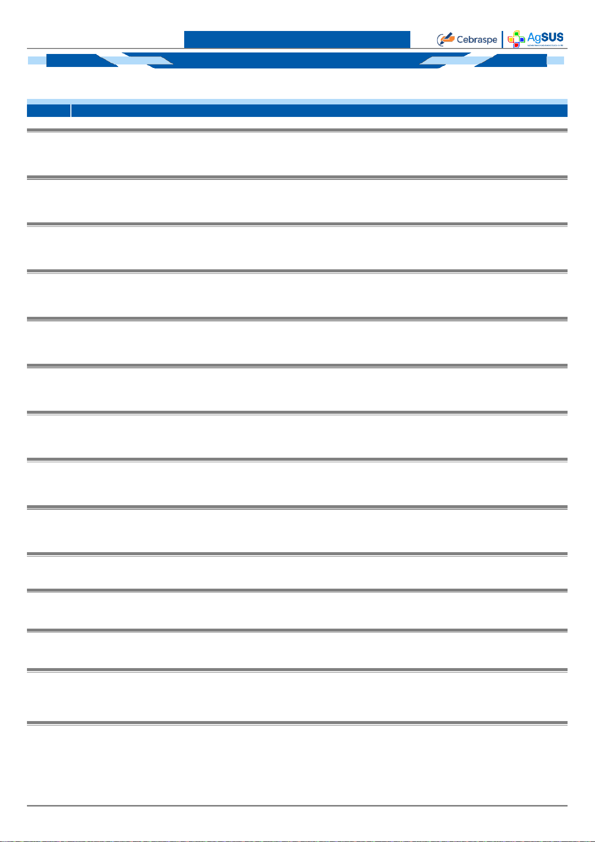GABARITO DEFINITIVO -- BLOCO II | C5 -- PROVA DE CONHECIMENTOS ESPECÍFICOS Curso: Agência Brasileira de Apoio à Gestão do SUS > > 5 CARGO 5: ASSISTENTE DE PROJETO – UAE No que diz respeito à organização da atenção especializada nas redes de atenção à saúde, julgue o seguinte item. 1 B0702385 - CORRETO | A organização da atenção especializada requer monitoramento de tempos de espera como indicador de acesso e eficiência da rede de atenção à saúde. Acerca dos princípios e integração da atenção especializada nas redes de atenção à saúde, julgue o item subsequente. 2 B0702386 - CORRETO | A atenção especializada deve atuar como retaguarda técnica para casos clínicos que ultrapassem a capacidade resolutiva da atenção primária. Acerca dos princípios e integração da atenção especializada nas redes de atenção à saúde, julgue o item subsequente. 3 B0702387 - ERRADO | A contrarreferência não é necessária quando o atendimento especializado resolve a queixa principal do usuário. Em relação aos riscos socioambientais na saúde de populações atingidas, julgue o item a seguir. 4 B0702388 - CORRETO | A exposição prolongada a contaminantes ambientais pode produzir doenças crônicas que se manifestam anos após o evento de exposição inicial. Em relação aos riscos socioambientais na saúde de populações atingidas, julgue o item a seguir. 5 B0702389 - CORRETO | O deslocamento forçado de populações pode interromper tratamentos contínuos, o que afeta o controle de doenças como hipertensão, diabetes e tuberculose. A respeito de danos e impactos socioambientais na saúde de populações atingidas, julgue o item subsequente. 6 B0702390 - ERRADO | A reconstrução de áreas atingidas por eventos socioambientais elimina automaticamente riscos sanitários residuais relacionados a esses eventos. A respeito de danos e impactos socioambientais na saúde de populações atingidas, julgue o item subsequente. 7 B0702391 - ERRADO | Impactos socioambientais não interferem em cobertura vacinal, visto que a imunização depende apenas da disponibilidade de vacinas. Julgue o item a seguir, referente a planejamento e execução de ações em saúde. 8 B0702363 - CORRETO | No planejamento de ações do SUS, pode-se utilizar análise de perfil epidemiológico para a definição de prioridades territoriais. No que se refere a monitoramento de ações em saúde, julgue o próximo item. 9 B0702364 - CORRETO | O monitoramento de ações em saúde pode subsidiar reprogramação físico-financeira quando for evidenciado desalinhamento entre produção assistencial e planejamento orçamentário. No que se refere a monitoramento de ações em saúde, julgue o próximo item. 10 B0702365 - ERRADO | O monitoramento dispensa análise de dados quando se atingem metas quantitativas. Acerca de gestão técnica de processos, julgue o próximo item. 11 B0702351 - CORRETO | A revisão periódica de processos permite a incorporação de mudanças normativas ou tecnológicas. Acerca de gestão técnica de processos, julgue o próximo item. 12 B0702352 - CORRETO | A integração entre processos reduz retrabalho decorrente de falhas de comunicação entre setores. Julgue o item a seguir, relativo a documentação. 13 B0702353 - ERRADO | No que se refere à guarda documental, os prazos legais só poderão ser desconsiderados quando não houver uso frequente do documento. Considerando a conformidade técnica e regulatória de projetos, julgue o item a seguir. 14 B0702354 - ERRADO | A verificação de conformidade regulatória deve ser realizada apenas após a conclusão da execução do projeto. GABARITO DEFINITIVO Considerando a conformidade técnica e regulatória de projetos, julgue o item a seguir. 15 B0702355 - ERRADO | Requisitos técnicos definidos em normas podem ser substituídos por critérios internos sem necessidade de justificativa formal. No que diz respeito aos serviços de saúde, julgue o item seguinte. 16 B0702356 - CORRETO | No SUS, os serviços de saúde são organizados em rede para possibilitar a continuidade do cuidado entre diferentes pontos de atenção. No que se refere ao planejamento e desenvolvimento de ações educativas em saúde, julgue o seguinte item. 17 B0702376 - ERRADO | A linguagem técnica deve ser priorizada, independentemente do perfil sociocultural do público, de forma a garantir a fidelidade conceitual do conteúdo transmitido. No que se refere ao planejamento e desenvolvimento de ações educativas em saúde, julgue o seguinte item. 18 B0702377 - ERRADO | O planejamento educativo pode ser realizado sem participação da equipe multiprofissional, visto que a transmissão de informação é uma atividade individual. Julgue o próximo item, relativo à organização de capacitações, oficinas e eventos técnicos para a qualificação de profissionais. 19 B0702378 - CORRETO | A definição de objetivos educacionais mensuráveis permite que se avalie o impacto da capacitação sobre as práticas profissionais. Julgue o próximo item, relativo à organização de capacitações, oficinas e eventos técnicos para a qualificação de profissionais. 20 B0702379 - ERRADO | Em oficinas técnicas, deve-se priorizar a transmissão unilateral de conteúdo para evitar a dispersão de discussões.