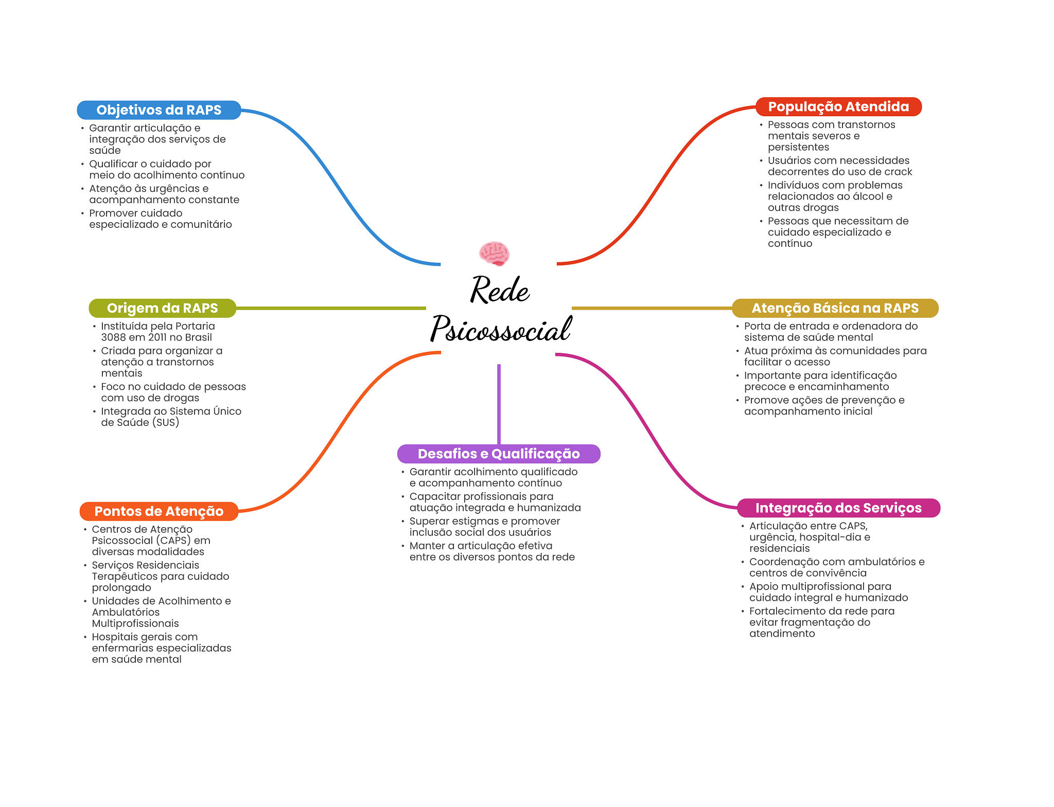 Objetivos da RAPS População Atendida Garantir articulação e Pessoas com transtornos integração dos serviços de mentais severos e saúde persistentes Qualificar cuidado por Usuários com necessidades meio do acolhimento contínuo decorrentes do uso de crack Atenção às urgências e Indivíduos com problemas acompanhamento constante relacionados ao álcool e Promover cuidado outras drogas especializado e comunitário Pessoas que necessitam de cuidado especializado e contínuo Rede Origem da RAPS Atenção Básica na RAPS Instituída pela Portaria 3088 em 2011 no Brasil Psicossocial Porta de entrada e ordenadora do sistema de saúde mental Criada para organizar a Atua próxima às comunidades para atenção a transtornos facilitar acesso mentais Importante para identificação Foco no cuidado de pessoas precoce e encaminhamento com uso de drogas Promove ações de prevenção e Integrada ao Sistema Único acompanhamento inicial de Saúde (sus) Desafios e Qualificação Garantir acolhimento qualificado e acompanhamento contínuo Capacitar profissionais para Pontos de Atenção atuação integrada e humanizada Integração dos Serviços Superar estigmas e promover Centros de Atenção Articulação entre CAPS, inclusão social dos usuários Psicossocial (CAPS) em urgência, hospital-dia e diversas modalidades Manter a articulação efetiva residenciais entre OS diversos pontos da rede Serviços Residenciais Coordenação com ambulatórios e Terapêuticos para cuidado centros de convivência prolongado Apoio multiprofissional para Unidades de Acolhimento e cuidado integral e humanizado Ambulatórios Fortalecimento da rede para Multiprofissionais evitar fragmentação do Hospitais gerais com atendimento enfermarias especializadas em saúde mental
