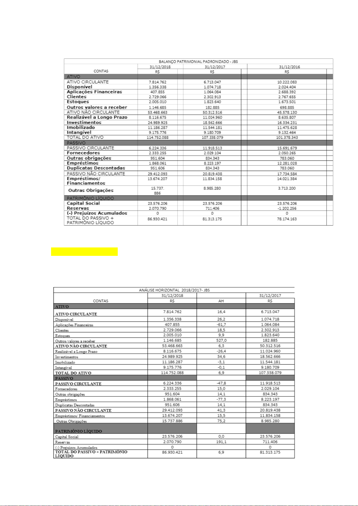 Realize a Análise Horizontal de 2017 referente aos períodos anteriores.