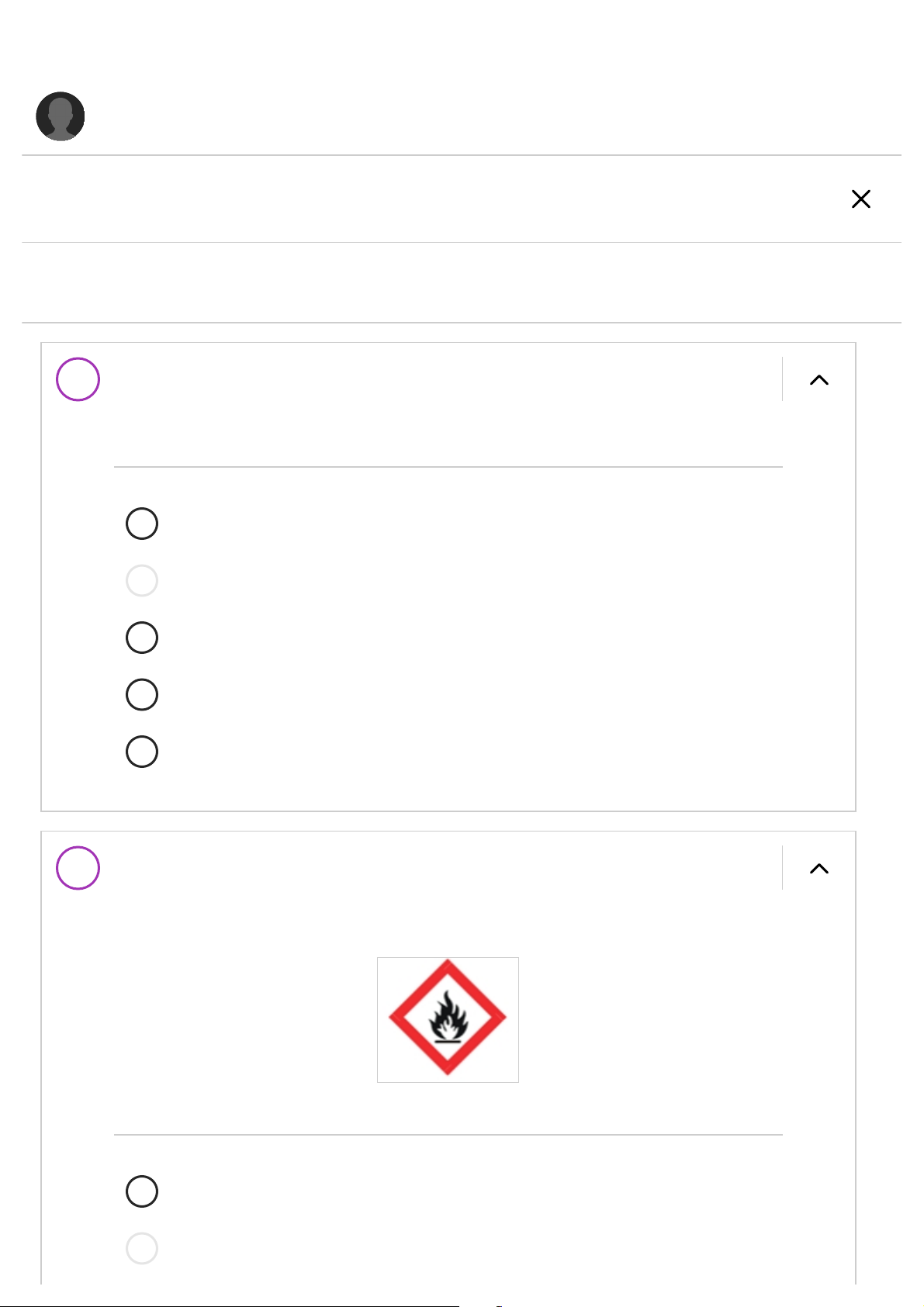 | AVALIAÇÃO GERAL 1 MÚLTIPLA ESCOLHA 0,4 / 0,4 2 MÚLTIPLA ESCOLHA 0 / 0,4 São consideradas boas práticas no armazenamento de produtos químicos, exceto: A Estocar os líquidos mais perigosos próximos ao chão. B Estocar produtos químicos não identificados. C Não fumar no local de armazenagem. D Descartar produtos químicos vencidos. E Manter o ambiente limpo e organizado. O pictograma a seguir representa o perigo de: A Corrosivos. B Autorreativos. Os comentários estarão disponíveis após a data de entrega As respostas corretas estarão disponíveis após a data de entrega ENVIADO: 02/11/25 11:39 RECIBO: 477C0E0B572F48979718D613815E92BB 8,8 / 10 Nota final Tentativa com a nota mais alta 8,8 / 10 3 MÚLTIPLA ESCOLHA 0,4 / 0,4 4 MÚLTIPLA ESCOLHA 0 / 0,4 C Explosivos. D Pirofóricos. E Oxidantes. O pictograma a seguir representa o perigo no transporte de: A Pirofóricos. B Líquidos inflamáveis. C Gases inflamáveis. D Sólidos inflamáveis; E Substâncias perigosas quando molhadas. Assinale o critério de classificação que não se refere aos perigos físicos: A Corrosão / irritação à pele. B Gases inflamáveis. C Substâncias e misturas autorreativas. D Substâncias e misturas que autoaquecem. 5 MÚLTIPLA ESCOLHA 0,4 / 0,4 6 MÚLTIPLA ESCOLHA 0,4 / 0,4 E Corrosão para metais. Assinale o critério de classificação que não se refere aos perigos na saúde humana: A Toxicidade aguda. B Toxicidade à reprodução. C Toxicidade para órgãos-alvo específicos. D Carcinogenicidade. E Toxicidade aguda – amb. aq. A avaliação da adequação do respirador à tarefa deve considerar: A Frequência e duração da tarefa; Nível de esforço físico; Emprego de ferramentas; Comunicação e Vida útil dos filtros. B Frequência e duração da tarefa; Emprego de ferramentas; Mobilidade; Comunicação e Vida útil dos filtros. C Frequência e duração da tarefa; Nível de esforço físico; Emprego de ferramentas; Mobilidade; Comunicação e Vida útil dos filtros. D Frequência e duração da tarefa; Nível de esforço físico; Mobilidade; Comunicação e Vida útil dos filtros. E Frequência e duração da tarefa; Nível de esforço físico; Emprego de ferramentas; Mobilidade e Comunicação. 7 MÚLTIPLA ESCOLHA 0,4 / 0,4 8 MÚLTIPLA ESCOLHA 0,4 / 0,4 Sobre a ventilação local exaustora, é correto afirmar, exceto: A Capta os contaminantes antes que eles se dispersem no ar do ambiente de trabalho. B Ventiladores fornecem a energia necessária para movimentação dos contaminantes ao longo do sistema. C O captor deve assegurar a maior captação possível dos contaminantes. D O sistema de dutos deve ser projetado para aumentar a perda de carga E Equipamentos de controle de poluição de ar impedem que os contaminantes sejam lançados na atmosfera. Assinale a ordem que as medidas de controle devem ser adotadas. I – medidas que previnam a liberação ou disseminação desses agentes no ambiente de trabalho; II – utilização de Equipamento de Proteção Individual – EPI; III – medidas que eliminam ou reduzam a utilização ou a formação de agentes prejudiciais à saúde; IV – medidas que reduzam os níveis ou a concentração desses agentes no ambiente de trabalho; V - medidas de caráter administrativo ou de organização do trabalho. A III, I, IV, V e II. B I, IV, III, II e V. C III, I, IV, II e V. D IV, III, I, V e II. E I, IV, III, V e II. 9 MÚLTIPLA ESCOLHA 0,4 / 0,4 10 MÚLTIPLA ESCOLHA 0,4 / 0,4 11 MÚLTIPLA ESCOLHA 0,4 / 0,4 Sobre a ventilação geral diluidora, é correto afirmar, exceto: A É frequentemente usada para controle de poeiras e fumos. B Seu custo de instalação é relativamente baixo quando comparado com o da ventilação local exaustora. C O contaminante não pode estar presente em quantidade que exceda a capacidade que pode ser diluída com determinado volume de ar. D A toxicidade do poluente deve ser baixa (LT 1,0 para média ponderada no tempo para 08h, a situação é de não conformidade. B Se ILST ≤ 1,0, para dados que representam curta duração – 15 min ou valor teto, a situação é de conformidade C Se IP95%ou ILST> 1,0, para dados que representam curta duração – 15 min ou valor teto, a situação é de não conformidade. D Se um ou mais resultados ultrapassaram os limites de tolerância ou de exposição ocupacional, é necessário proceder ao tratamento estatísticodos dados. E Se IMV ≤ 1,0 para média ponderada no tempo para 08h, a situação é de conformidade. Contemplam a fase de reconhecimento dos trabalhadores, exceto: A Levantamento de possíveis grupos homogêneos de exposição. B Resultados de medições de amostras pessoais já realizadas. C Duração da jornada de trabalho. 21 MÚLTIPLA ESCOLHA 0,4 / 0,4 22 MÚLTIPLA ESCOLHA 0 / 0,4 D Descrição das atividades que envolvem trabalhadores expostos a agentes químicos. E Posição dos trabalhadores em relação às fontes de emissão de agentes químicos. Qual a ordem das etapas que compõem a avaliação qualitativa de riscos químicos? I. Determinação da medida de controle adequada. II. Determinação da propagação no ambiente. III. Determinação das fichas de controle adequadas. IV. Determinação da quantidade utilizada. V. Determinação da toxicidade. Assinale a alternativa que apresenta a ordem CORRETA. A II, I, IV, V e III. B I, II, III, IV e V. C V, IV, I, II e III. D V, IV, II, I e III. E II, I, III, V e IV. Com relação à etapa 4, como encontrar a medida de controle correta, assinale a alternativa INCORRETA. A São necessárias as informações das etapas 1, 2 e 3 para se encontrar as medidas de controle adequadas. B Na Tabela 1, as linhas correspondem à propagação no ambiente, ou seja, volatilidade para líquidos ou empoeiramento para sólidos. C Na Tabela 1, o cruzamento de linha e coluna fornece a medida de controle adequada 23 MÚLTIPLA ESCOLHA 0,4 / 0,4 D Os números 1 a 4 apresentados na Tabela 1 indicam diferentes níveis de ação e c