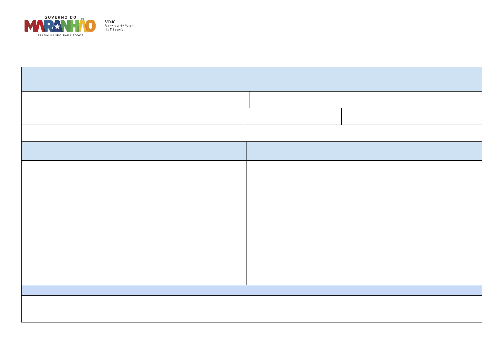 ESTADO DO MARANHÃO SECRETARIA DE ESTADO DA EDUCAÇÃO SECRETARIA ADJUNTA DE GESTÃO DA REDE DO ENSINO E DA APRENDIZAGEM PLANO DE ATIVIDADE DOCENTE Escola: Marta dos Santos Almeida Componente Curricular: Educação Digital 2º BIM Série: 1ª Turma(s): 102 Turno: Vespertino Período Letivo: 20/04/2026 a 30/06/2026 Professor(a): Marta dos Santos Almeida Descrição das Competência/ Habilidades Objetos do Conhecimento/Conteúdos: Competência Geral 5 (BNCC): Utilizar tecnologias digitais de forma crítica, significativa, reflexiva e ética. Competência Geral 7 (BNCC): Argumentar com base em fatos, dados e informações confiáveis. Competência Geral 10 (BNCC): Agir com autonomia, responsabilidade e pensamento crítico. Habilidades relacionadas: Analisar criticamente o acesso e o uso das tecnologias digitais em diferentes contextos sociais; Selecionar, organizar e validar informações provenientes de ambientes digitais; Utilizar ferramentas digitais para comunicação e produção de conhecimento de forma ética. Mundo Digital, Cultura Digital e Pensamento Computacional CONTEÚDOS: Mundo Digital Cultura Digital e Direitos digitais Pensamento Computacional Procedimentos Metodológicos e Recursos: Aulas dialogadas e problematizadoras; Análise de situações do cotidiano digital dos estudantes; Estudos de caso e debates orientados; Atividades práticas de lógica e resolução de problemas; Trabalhos em grupo e projetos colaborativos; Produção de materiais digitais educativos. Recursos: Computador, tablet ou celular; Acesso à internet; Projetor multimídia; Textos, gráficos e reportagens digitais; Vídeos educativos; Plataformas digitais colaborativas. Procedimentos Avaliativos: Formativa: Participação nas aulas e debates; Acompanhamento das atividades práticas; Desenvolvimento do pensamento crítico e lógico; Autoavaliação. Somativa: Produção de projeto digital interdisciplinar; Atividade prática de pensamento computacional; Referências: BRASIL. Base Nacional Comum Curricular (BNCC). Brasília: Ministério da Educação, 2018. MARANHÃO. Documento Curricular do Território Maranhense (DCTM): Ensino Médio. São Luís: Secretaria de Estado da Educação, 2021. MODERNA PLUS: educação digital. Organização: Editora Moderna. Obra coletiva concebida, desenvolvida e produzida pela Editora Moderna; editoras responsáveis: Gabríela Dias; Shirley Souza. 1. ed. São Paulo: Moderna, 2024. Volume único (1º, 2º e 3º anos do ensino médio). OPENAI. ChatGPT: modelo de linguagem baseado em inteligência artificial. San Francisco: OpenAI, 2024. Disponível em: https://chat.openai.com. Acesso em: 05 de fevereiro 2026. Assinatura: Local e Data: image1.png