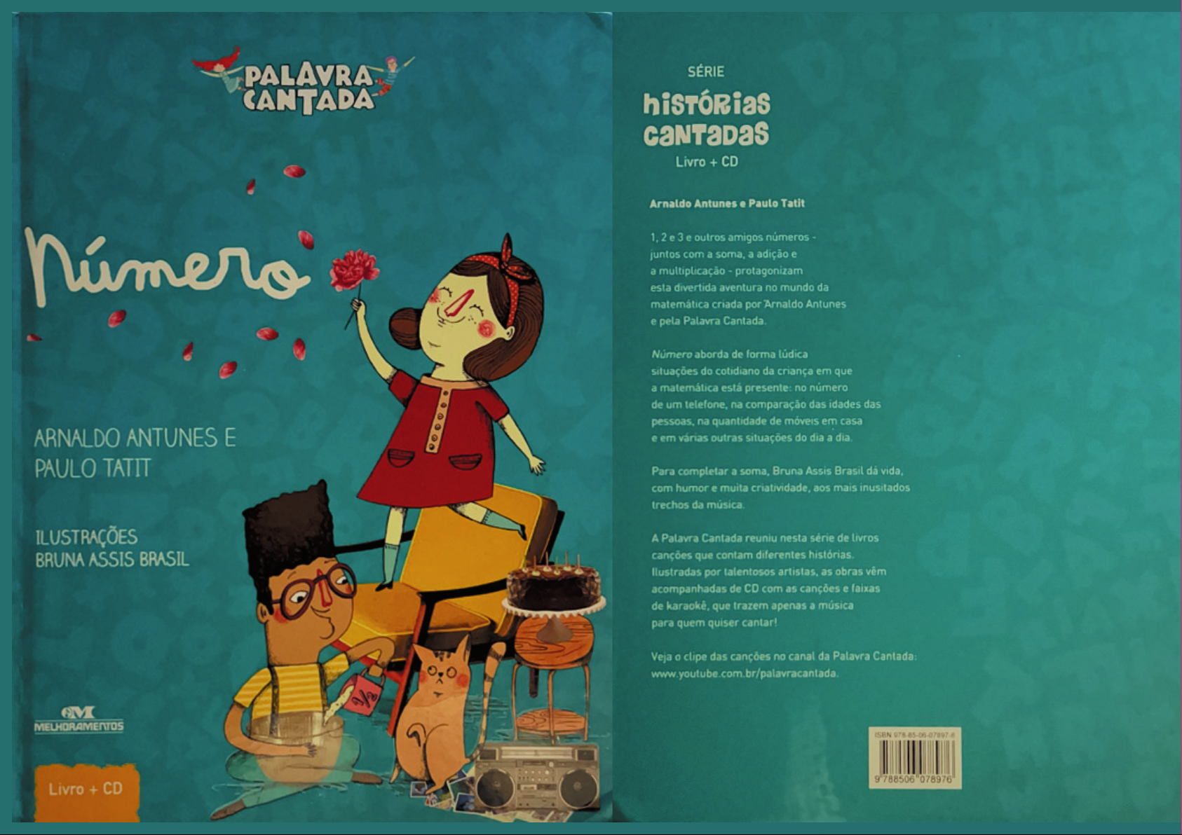 PALAVRA SÉRIE Livro + CD Arnaldo Antunes e Paulo Tatit 1,2 e 3 e outros amigos números juntos com a soma, a adição e a multiplicação protagonizam esta divertida aventura no mundo da matemática criada por Arnaldo Antunes e pela Palavra Cantada. Número aborda de forma lúdica situações do cotidiano da criança em que a matemática está presente: no número de um telefone, na comparação das idades das pessoas, na quantidade de móveis em casa ARNALDO ANTUNES E e em várias outras situações do dia a dia. PAULO TATIT Para completar a soma, Bruna Assis Brasil dá vida, com humor e muita criatividade, aos mais inusitados trechos da música. ILUSTRAÇÕES A Palavra Cantada reuniu nesta série de BRUNA ASSIS BRASIL canções que contam diferentes histórias. por talentosos artistas, as obras vêm acompanhadas de CD com as canções e faixas de karaokê, que trazem apenas a música para quem quiser cantar! Veja clipe das canções no canal da Palavra Cantada: www.youtube.com.br/palavracantada. MELHORAMENTOS Livro + CDPALAVRA CANTADA São Editora 2015 / de CD 1 Literatura Bruna Indices para Literatura Literatura brasileira Educação musical de Lingua o Melhoramentos Palavra Cantada Música Letra Bruna Assis ARNALDO ANTUNES E Projeto Kong Diagramação Ringo PAULO TATIT Equipe Cantada de programação de percussão, produção acordeam ILUSTRAÇÕES Direitos de publicação 2015 Melhoramentos Lida Todos reservados BRUNA ASSIS BRASIL de 2015 ISBN Postal 11541 CEP São Paula Livro + CDCinco BALAS E UM CHICLE, uma MEIA EM CADA PÉ.DUAS VEZES VINTE E CINCO dá cinquenta pra vocês. $0,25 - 6 -Um real EM CADA MÃO. Um SAPATO EM CADA CHÃO.UM MONTÃO DE FIGURINHA: cada pacotinho, três. - 10 -Cada número uma quantidade, seja seja par. 13Cada coisa é um número, basta contar todas elas pra gente - 14 -sete, quatro, dois, um, cinco, zero: DEVE SER TELEFONE DE ALGUÉM.Um DEDO PRA CADA COISA QUE EU NUMERO. Quantos anos você tem? - 19 -Doze PÉTALAS NA FLOR, dezessete PELO CHÃO. PÁGINAS DE COR, duas ASAS NO AVIÃO. - 22 -Sete VIDAS DE UMA VEZ, COM três GATOS, vinte e um. EU JÁ TENHO MAIS DE seis. MINHA MÃE, quarenta e um. - 24 -I Um inteiro é o dobro de Todo um é um milhão. 1 1/2 1/4 - 27 -Tem milhares de contas, mas cada uma delas terá uma só solução. - 28 -Eu e três AMIGOS TEMOS oito braços, E NO FIM DOS BRAÇOS TEMOS oito mãos. - 31 -TEMOS duas CAMAS DENTRO DO MEU QUARTO: a minha e a do meu irmão. - 32 -Novecentos e dez GRÃOS, SEU FEIJÃO NO MEU ARROZ. Um pedaço DESSE PÃO DIVIDIDO POR NÓS DOIS.Dois BURACOS NO NARIZ, dez PALAVRAS PARA A VOZ. Onze É doze POR UM TRIZ. TEMOS TODOS quatro AVÓS. - 36 -Todos têm altura, peso, idade Tanta senha pra lembrar! V - 39Quantas notas no bolso, caroços da fruta, miçangas no fio do colar! - 40 -Cento e vinte NÚMERO DA MINHA CASA. Dois três QUILÔMETROS PRA EU CHEGAR LÁ. -Um, dois, oito, cinco: A PLACA DO MEU CARRO. Falta pouco pra chegar! Falta pouco pra chegar! ABC-1285 -120 ABC-1285
