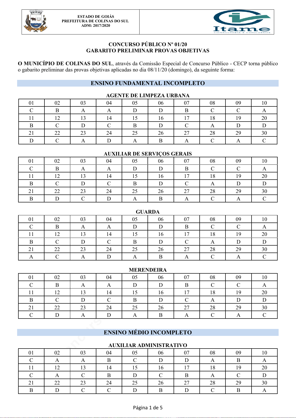 o gabarito preliminar das provas objetivas aplicadas no dia 08/11/20 (domingo), da seguinte forma: