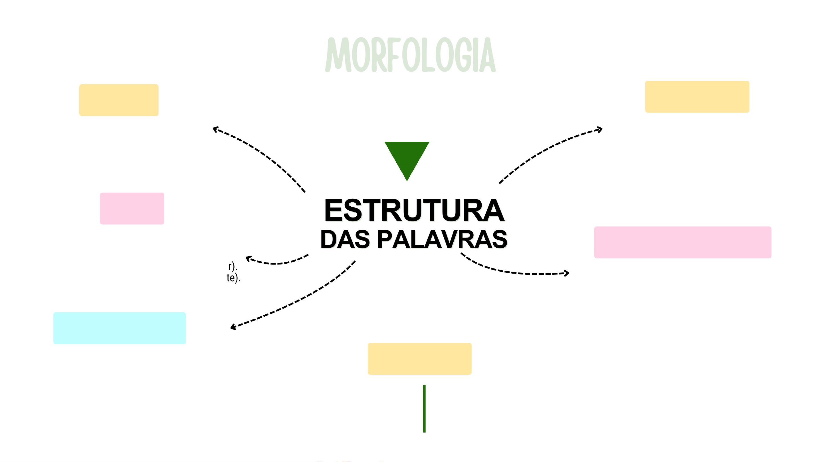 MORFOLOGIAMORFOLOGIAMORFOLOGIA ESTRUTURAESTRUTURA DAS PALAVRASDAS PALAVRAS ESTRUTURA DAS PALAVRAS ELEMENTOS DE LIGAÇÃO São vogais ou consoantes, sem significados próprios, usadas apenas para facilitar a pronúncia. Vogal de ligação: Gasômetro - Gás + o + metro Evita o encontro direto de "gás" com "metro", que seria "gásmetro". Consoante de ligação: Chaleira (o l liga chá + eira). AFIXOS São Elementos adicionados ao radical para formar novas palavras. Prefixo - Vem antes do radical (ex: des-fazer). Sufixo: Vem depois do radical (ex: feliz-mente). VOGAL TEMÁTICA Prepara o radical para receber desinências, formando o "tema". Em verbos, indica a conjugação: -a- (1ª), -e- (2ª), -i- (3ª). DESINÊNCIAS Indicam as flexões da palavra. Dividem-se em nominais (gênero e número em nomes) e verbais (tempo, modo, número e pessoa). Exemplos: aluna/o (gênero), alunos (número), estudávamos (tempo/pessoa). RADICAIS É a base comum da palavra, que contém seu significado essencial. Ex: *ferr-*o, *ferr-*eiro, *ferr- *adura. IMPORTANTE A Morfologia é a primeira parte da língua portuguesa e podemos chamar de base estrutural da língua porque estuda especificamente cada palavra. Essa é a primeira estrutura da morfologia. Podemos considerar que o estudo da língua portuguesa pode começar, exatamente daqui. Trata-se do estudo da palavra quanto a sua forma (consituídas especificamente) e a sua classe (função que ocupa na língua)