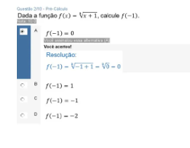 Dada a função f(x) - calcule f(-1). A f(-1) - 0 Resolução: f(-1) - - f(-1) - 1 c f(-1) - -1 f(-1) - -2