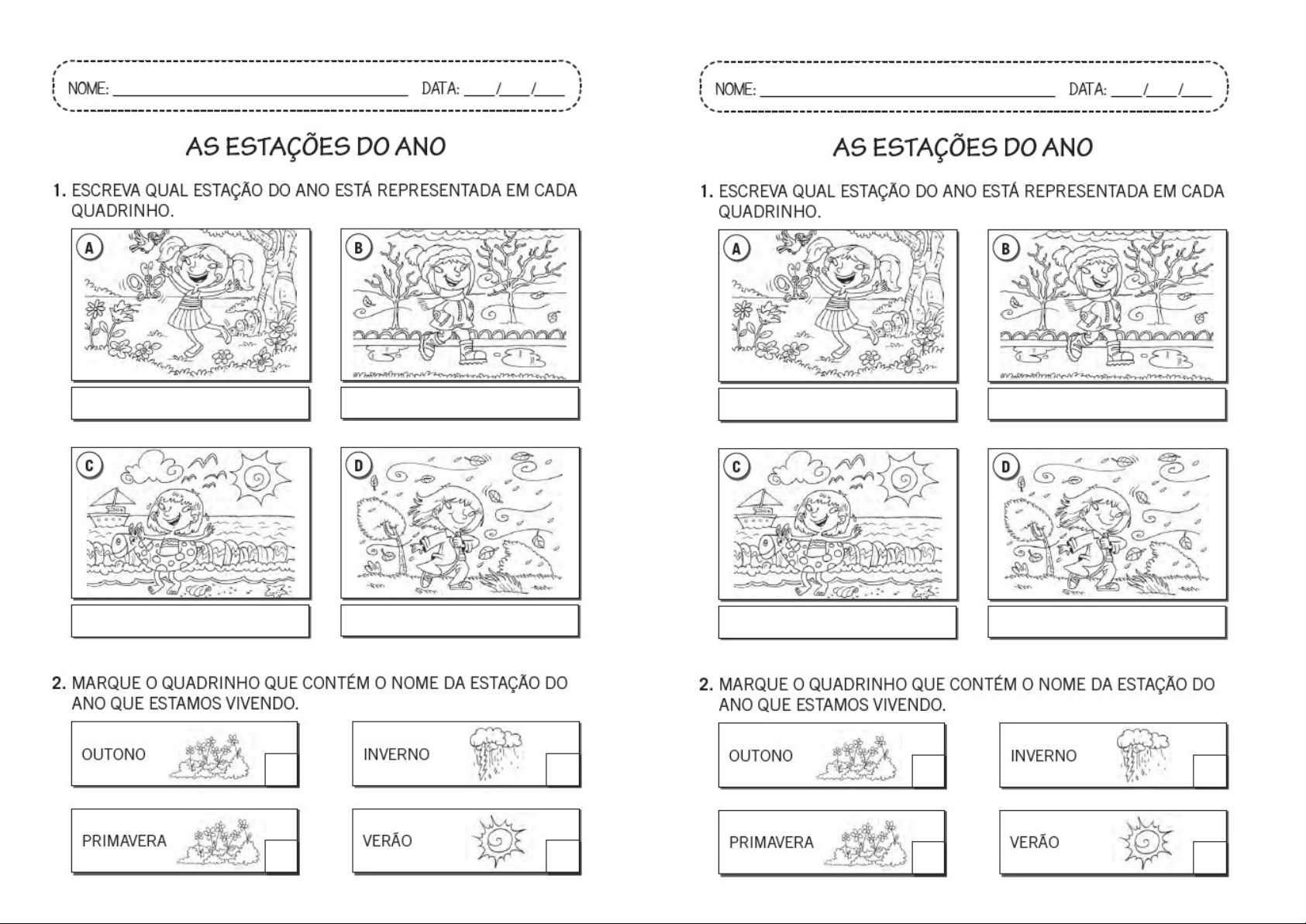 NOME: DATA: / / NOME: DATA: / / AS ESTAÇÕES DO ANO AS ESTAÇÕES DO ANO 1. ESCREVA QUAL ESTAÇÃO DO ANO ESTÁ REPRESENTADA EM CADA 1. ESCREVA QUAL ESTAÇÃO DO ANO ESTÁ REPRESENTADA EM CADA QUADRINHO. QUADRINHO. A A B D D 2. MARQUE 0 QUADRINHO QUE CONTÉM 0 NOME DA ESTAÇÃO DO 2. MARQUE QUADRINHO QUE CONTÉM NOME DA ESTAÇÃO DO ANO QUE ESTAMOS VIVENDO. ANO QUE ESTAMOS VIVENDO. OUTONO INVERNO OUTONO INVERNO PRIMAVERA VERÃO PRIMAVERA VERÃO