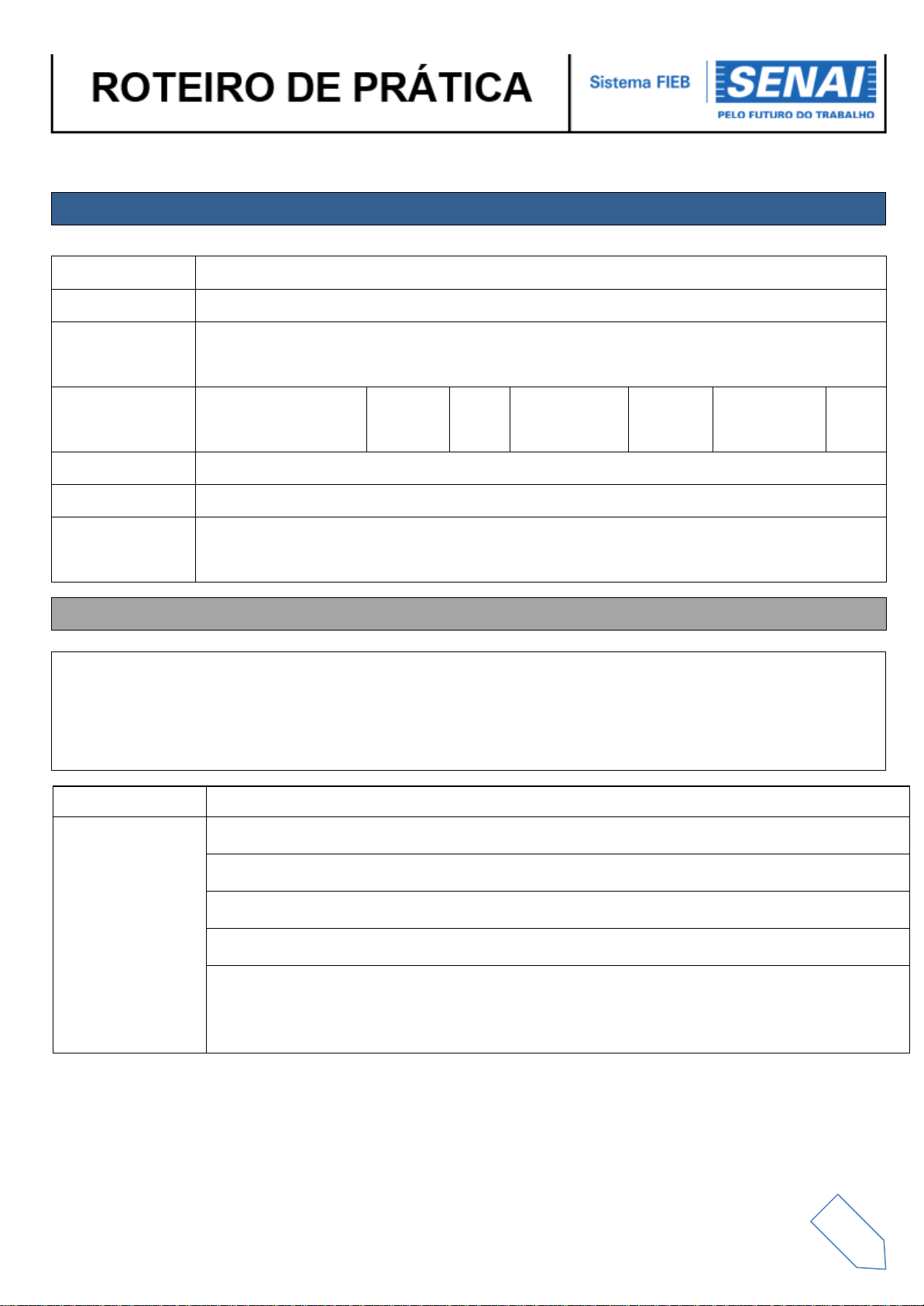 1 Unidade:¹ Curso:² Técnico em Eletrotécnica Unidade Curricular:³ Acionamento de Dispositivos Elétricos Automatizados Turma:⁴ Módulo: Esp. II Carga horária: 04 horas RP 04 Docente:⁸ Discente(s):9 Ferramentas específicas CLP e Inversor (Multispeed) Atividade Capacidades técnicas CLP – Inversor de Frequência Identificar elementos de comandos e símbolos dos sistemas Aplicar operações de lógica de programação de CLP Programar sistema de automação básica Configurar componentes dos sistemas eletroeletrônicos Interpretar e montar diagramas eletroeletrônicos 1. Identificação 2. Unidades de Competência¹⁰ UC2: Manter sistemas elétricos prediais, industriais e de potência (SEP), cumprindo legislações vigentes, parâmetros de eficiência energética, normas técnicas, de qualidade, de segurança e saúde e, ainda, ambientais. 2 3.1 Objetivo Aprofundar os conhecimentos em automação industrial com CLP, integrando o uso do Inversor de Frequência para o controle de velocidade de motores trifásicos. Esta prática permitirá programar contadores e temporizadores, parametrizar o inversor e montar um sistema automatizado com controle preciso da esteira de uma linha de envase e embalagem. Ao final da atividade, o aluno deverá ser capaz de: Parametrizar um Inversor de Frequência (Multispeed); Controlar acionamento do Inversor via CLP; Programar lógica de contagem e temporização em Ladder; 3.2 Contexto da Atividade Na prática anterior (Roteiro 3), você participou da modernização do sistema de acionamento de uma esteira industrial, substituindo a partida direta tradicional por uma lógica automatizada com CLP. Ao final daquela prática, foi proposto um desafio extra opcional: simular a interação da esteira com uma máquina de embalagem, que deveria interromper o transporte a cada 6 garrafas para permitir o empacotamento. Agora, neste novo roteiro, esse desafio torna-se parte oficial da atividade prática. A empresa do setor de envase, onde você atua como técnico responsável, decidiu incorporar definitivamente essa lógica no processo. No entanto, com o aumento da complexidade do sistema, será necessário utilizar um inversor de frequência integrado ao CLP, para permitir: Seleção de diferentes velocidades de esteira, conforme o tipo de embalagem (600ml, 1L ou 2L); Controle preciso de aceleração e desaceleração; Parada automática da esteira a cada 6 garrafas detectadas por sensor; Retomada do transporte após o tempo de embalagem (12 segundos), de forma contínua e automatizada. Sinalização intermitente de sinaleiro amarelo enquanto a embaladora está funcionando. Sua missão será adaptar o sistema anterior com essa nova demanda, programando contadores, temporizadores e parametrizando o inversor para controle Multispeed. A esteira agora precisa funcionar com maior flexibilidade e precisão, garantindo fluidez ao processo de empacotamento. O operador será responsável apenas por ligar ou desligar o processo e definir qual o tipo de garrafa está programada para a produção. O diagrama apresentado no ANEXO 1 é uma referência generalizada. Pode ocorrer de o CLP e/ou o inversor disponíveis em seu polo serem modelos diferentes dos ilustrados. Utilize seus conhecimentos prévios em instalações elétricas e consulte os manuais dos equipamentos para realizar os ajustes necessários, adaptando o circuito à realidade dos dispositivos que lhe foram disponibilizados na prática. 3.Planejamento de aula 3 3.3 Cuidados Preliminares Leia o roteiro com atenção antes de iniciar a atividade. Nunca toque em condutores ou partes metálicas sem se certificar de que o sistema está desenergizado. Em caso de dúvida, consulte o professor. Utilize EPI conforme as orientações do laboratório. Siga todos os procedimentos e normas de segurança. 3.4 Lista de Materiais CLP; Computador com software instalado; Inversor de Frequência; Botoeiras; Motor trifásico de pequeno porte; Chaves de seleção (3 velocidades); Sensor para contagem de garrafas; Fonte 24 Vcc (se necessário); Disjuntores; Multímetro; Cabos de conexão; 3.5 Organização Trabalho em grupo, conforme orientação do docente presencial. A divisão de tarefas será feita entre os membros do grupo para otimizar tempo e aprendizado. 4 3.6 Atividades 3.6.1 APR – Análise Preliminar de Risco Preencher a tabela abaixo com os principais riscos envolvidos na prática e as medidas de controle adotadas: ETAPA RISCO CONTROLE 3.6.2 Parametrização do Inversor Inserir os dados da placa do motor; Ajustar rampas de aceleração (5 segundos) e desaceleração (2 segundos); Habilitar entradas digitais do Inversor para comando (liga e desliga) e Multispeed. Configurar três chaves para velocidades distintas (MULTISPEED): o 500 RPM (600 ml); o 300 RPM (1 L); o 150 RPM (2 L); o Caso o operador não selecione nenhuma velocidade ou escolha mais de uma velocidade ao mesmo tempo (condição não funcional), manter a esteira em 50 RPM Calcule a frequência correspondente para cada velocidade desejada antes de parametrizar: CHAVES RPM Frequência CH1 500 RPM CH2 300 RPM CH3 150 RPM Caso não selecione ou selecione mais de uma chave 50 RPM Testar o funcionamento do inversor isoladamente. 5 3.6.3 Programação no CLP Consulte o ANEXO 1 para visualizar o diagrama completo com as ligações, incluindo as entradas e saídas utilizadas no CLP. Isso servirá de referência para sua programação e preenchimento da tabela. Desenvolver a lógica LADDER com: o Contador para 6 pulsos do sensor; o Temporizador de 12 segundos para parada da esteira (tempo de embalagem) o Temporizador intermitente para piscar sinaleiro (durante embalagem) o Comando automático de retomada; Simular a lógica; Transferir o programa ao CLP; Preencher a tabela de I/O com base no projeto: Tabela I/O Entradas (I) Descrição Saídas (O) Descrição 3.6.4 Montagem e Testes Realizar as devidas conexões vide ANEXO 1 Validar conexões com o professor; Realiza