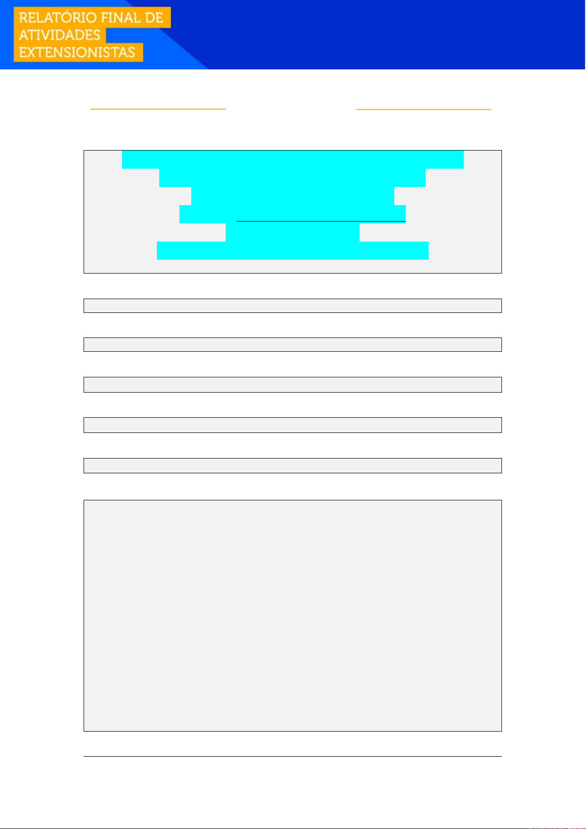 DADOS DO ALUNO: Aluno: [Nome completo] TENHO PRONTO PARA ENVIO, CASO TENHA INTERESSE, ENTRE EM CONTATO: WhatsApp: (73) 99900 0037 E-mail: aleksbraw@gmail.com Ou Acesse o Site: https://trabalhosnotamaxima.com.br RA: [Número do RA do aluno] POLO / UNIDADE: CURSO: FARMÁCIA - BACHARELADO COMPONENTE CURRICULAR: PROJETO DE EXTENSÃO III - FARMÁCIA PROGRAMA DE EXTENSÃO: PROGRAMA DE SUSTENTABILIDADE. FINALIDADE E MOTIVAÇÃO: O programa extensionista voltado as ações de Sustentabilidade do curso de Farmácia possui a finalidade de apoiar a comunidade por meio da disseminação do conhecimento adquirido no curso, priorizando o cuidado e compreensão do meio ambiente. Tais ações poderão reduzir impactos socioambientais negativos e criar uma cultura regenerativa para gerar impactos positivos que irão refletir no meio ambiente, que são importantes para possibilitar uma continuidade do uso de recursos naturais de forma sustentável. Ao identificar as problemáticas ambientais da comunidade os alunos terão a motivação para efetuar as ações de apoio relacionadas ao curso, pelas quais poderão ser desenvolvidas competências técnicas e soft skills específicas. Os conteúdos programáticos sugeridos para correlacionar as ações são: Segurança do paciente e biossegurança; Saúde pública, epidemiologia e educação em saúde; Legislação sanitária e profissional. Os locais que poderão contemplar esse projeto são: Parcerias com a Prefeitura; Associações de Bairros; Associações Comerciais; ONGs; UBS; Hospitais; Clínicas de Saúde Públicas e Privadas; Centros de Saúde; Casas de Repouso; Instituições de Longa Permanência para Idosos; Creches; Templos Religiosos e Escolas. COMPETÊNCIAS: I - Realizar análises, interpretar, emitir laudos e pareceres relacionados ao meio ambiente; II - Avaliar a toxicidade de produtos farmacêuticos e de outros produtos para a saúde; III - Avaliar e monitorar as interações medicamentosas e as reações adversas; IV - Realizar a dispensação e promover o acesso e o uso racional de medicamentos, cosméticos e produtos para a saúde em todos os níveis de atenção do sistema de saúde; V - Selecionar, programar, adquirir, armazenar, distribuir e transportar produtos farmacêuticos e outros produtos para a saúde. PERFIL DO EGRESSO: O perfil do egresso do curso de Farmácia idealizado pela IES proporciona a formação do Farmacêutico, humanista, crítico, reflexivo, ético e generalista. A atuação no Programa de Sustentabilidade, demonstra as habilidades para atuar com investigação de riscos relacionados à segurança do paciente, visando ao desenvolvimento de ações preventivas e corretivas; identificação de situações de alerta para o encaminhamento a outro profissional ou serviço de saúde, atuando de modo que se preserve a saúde e a integridade do paciente; dispensação de medicamentos, considerando o acesso e o seu uso seguro e racional. SOFT SKILLS (COMPETÊNCIAS SOCIOEMOCIONAIS): Tomada de Decisão Planejamento e organização Análise e resolução de problemas OBJETIVOS DE APRENDIZAGEM: O objetivo da extensão no Programa de Sustentabilidade do curso Farmácia está relacionado a transferir para a sociedade os conhecimentos desenvolvidos no curso mediante projetos e ações de apoio na resolução de diversas problemáticas no âmbito da sustentabilidade, auxiliando a comunidade e potencializando a aplicação dos conhecimentos adquiridos no curso, ampliando o desenvolvimento das habilidades do egresso. CONTEÚDOS: I - Segurança do paciente e biossegurança; II - Saúde pública, epidemiologia e educação em saúde; III - Legislação sanitária e profissional. INDICAÇÕES BIBLIOGRÁFICAS: CARVALHO, Felipe Dias; CAPUCHO, Helaine Carneiro; BISSON, Marcelo Polacow. Farmacêutico hospitalar: conhecimentos, habilidades e atitudes. Barueri, SP: Manole, 2014. HINRICHSEN, Sylvia Lemos. Qualidade & segurança do paciente: gestão de riscos. Rio de Janeiro: MedBook, 2012. LASSIE, Flávia Soares. Farmácia e profissão. Londrina: Editora e Distribuidora Educacional S.A., 2020. RELATÓRIO FINAL: Aluno e Aluna, após realizar suas atividades de extensão, é necessário que você o formalize, enviando esse Relatório Final para ser avaliado junto ao seu Ambiente Virtual (AVA) e também para você poder comprovar sua atuação. Para o preenchimento, busque as anotações junto ao TEMPLATE PCDA para auxiliar na apresentação das atividades desenvolvidas. Todos os campos são de preenchimento obrigatório! DESCRIÇÃO DA AÇÃO COM RESULTADOS ALCANÇADOS Metas dos Objetivos de Desenvolvimento Sustentável (ODS) aderentes a este projeto: CAMPO OBRIGATÓRIO – busque no seu Template PDCA quais Metas você selecionou como aderentes ao seu projeto, conforme cada Objetivo de Desenvolvimento Sustentável (ODS) da Organização das Nações Unidas (ONU) que você explorou no seu planejamento. Liste as Metas selecionadas (pelo menos uma opção): Local de realização da atividade extensionista: Durante a ação: Caso necessário, houve mudança de estratégia para alcançar o resultado: Resultado da ação: Conclusão: Depoimentos (se houver): RELATE SUA PERCEPÇÃO DAS AÇÕES EXTENSIONISTAS REALIZADAS NO PROGRAMA DESENVOLVIDO: CAMPO OBRIGATÓRIO – relate em no mínimo 15 (quinze) linhas sua experiência com as ações extensionistas. O texto deve ser de sua autoria e inédito, evite plágio. Questões norteadoras: (1) Você notou que suas habilidades profissionais foram aprimoradas, com a atuação nas ações extensionistas? (2) Você identificou melhoria/resolução do problema identificado? (3) Você conseguiu articular os conhecimentos adquiridos no curso com as ações extensionistas? Ao escrever seu texto evite deixá-lo em forma de respostas as questões norteadoras, relate sua experiência em forma de texto dissertativo com justificativas. DEPOIMENTO DA INSTITUIÇÃO PARTICIPANTE CAMPO OBRIGATÓRIO - insira depoimento(s) do(s