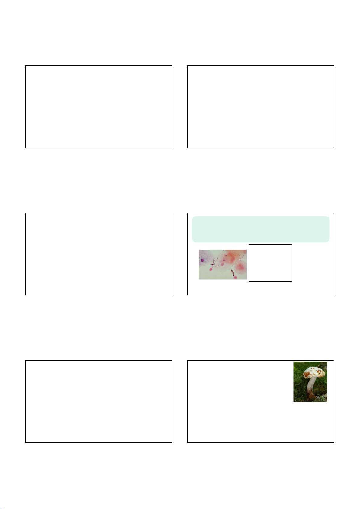 01/03/2024 Microbiologia Agentes microbiológicos Prof. Ms. Flávia Soares Lassie Unidade de Ensino: 2 Competência da Unidade: Conhecer e compreender conceitos básicos de microbiologia para a formação profissional Resumo: Estudo a respeito dos fungos e suas principais características, assim como os benefícios econômicos para o meio ambiente e os malefícios. Vírus também são apresentados. Palavras-chave: fungos e vírus. Título da Teleaula: Agentes Microbiológicos Teleaula nº: 2 Contextualização Fungos Principais fungos de interesse médico Vírus Principais vírus de interesse médico Vacinas Situação-problemaO ambiente hospitalar traz riscos de infecções adquiridas após a internação do paciente. Entre os pacientes com o quadro de septicemia após o procedimento de videolaparoscopia temos o caso de 3 mulheres que após o uso contínuo de antibióticos começaram a apresentar pequenas inflamações genitais com secreções esbranquiçadas e coceiras. Quais são os microrganismos causadores dessa infecção? Quais são as características gerais desses microrganismos? Qual é a sua classificação? Fonte: http://bit.ly/2YbEPNs Fungos Fungos (Reino Fungi) • São organismos eucariotos - membrana nuclear; • Habitam o solo ou matéria vegetal morta; • Grande importância ecológica (reciclagem de nutrientes) e econômica (indústria química, farmacêutica, alimentícia e agrícola); • Podem ser macroscópicos ou microscópicos; • Podem ser multicelulares: fungos filamentosos ou bolores; • Unicelulares: leveduras; • Dimórficos: pode apresentar forma leveduriforme ou filamentosa; • Não realizam fotossíntese. Fonte: http://bit.ly/2LZUJIh 1 2 3 4 5 6 01/03/2024 Nutrição: geralmente heterotróficos Reprodução: Sexuada ou assexuadamente. Parede celular rígida: polissacarídeos (quitina) Fungos filamentosos: formam longos filamentos (hifas) que se ramificam e expandem massa visível chamada Micélio Leveduras: envolvidas na produção de alimentos e bebidas, antibióticos, enzimas e biorremediação de poluentes Fungos (Reino Fungi) Fonte: http://bit.ly/2Yn7m6VFonte: http://bit.ly/2y0HYoM Fonte: http://bit.ly/30NBJkz Fonte: http://bit.ly/2Y247gQ FUNGOS FILAMENTOSOS- “BOLORES” Fonte: MADIGAN, M.T. et al. Microbiologia de Brock. 14.ed. São Paulo: Artmed, 2016 (pág. 556) Aspergillus fumigatus Fonte: http://bit.ly/2XNdx4G Penicillium sp.Morfologia fúngica Morfologia fúngica FUNGOS LEVEDURIFORMES Fonte: http://bit.ly/32BFOKe.Fonte: http://bit.ly/2OlYydZ Fonte: http://bit.ly/2Z5nkzFFonte: http://bit.ly/2Gs0zPk Morfologia fúngica FUNGOS LEVEDURIFORMES Cryptococcus neoformans Fonte: https://images.app.goo.gl/VVEQ4en6aEveEkYB8 Candida albicans CICLO DE VIDA • Reprodução assexuada: - Crescimento e disseminação de filamentos de hifas; Produção assexuada de esporos (conídios); Simples divisão celular (leveduras- brotamento) Esporos assexuais: conidióforos (produtores de conídios) • Reprodução sexuada: Célula n Célula n Célula 2n Meiose/Mitose Esporos n Esporos produzidos no interior de um saco fechado (asco) ASCÓSPOROS Nas extremidades de uma estrutura claviforme BASIDIÓSPOROS (basídio) ZÍGÓSPOROS fungos zigomicetos (Rhizopus) 4 filos de importância médica Zygomycota (zigomicetos) - zigósporos Rhizopus Acomycota (ascomicetos)- ascósporos Saccharomyces cerevisiae Basidiomycota (basidiomicetos)- basidiósporos Agaricus Deuteromycota (deuteromicetos)- conídios (maioria dos fungos patogênicos) Fonte: MADIGAN, M.T. et al. Microbiologia de Brock. 14.ed. São Paulo: Artmed, 2016 (pág. 559) Fonte: http://bit.ly/2Z5nkzF Taxonomia fungos 7 8 9 10 11 12 01/03/2024 Patogenicidade fúngica Patogenicidade Secreção de enzimas extracelulares que digerem materiais poliméricos (polissacarídeos, proteínas) em monômeros; Danos ao homem, animais e plantas SUPERFICIAIS CUTÂNEAS SUBCUTÂNEAS SISTÊMICAS MICOSES Fonte: http://bit.ly/2LAvVHI Micoses Classificação: micoses superficiais/cutâneas (ceratofitoses, dermatofitoses e candidíase), micoses subcutâneas, sistêmicas e oportunistas Transmissão: contato com pessoa contaminada, animais, solo (vegetal, madeira), fômites (alicate de unha, toalhas, roupas pessoais e de cama), andar descalço (vestiários públicos e banheiros coletivos), fezes de pombos e mordedura de animais (morcegos) Diagnóstico: direto (fita durex e microscopia), cultura em ágar Sabouraud Tratamento: antifúngicos Dermatomicose limitada à camada superficial queratinizada da pele, mucosas, pêlos, cabelos e unhas; Não atingem a derme e nem outros órgãos; Transmissão: contato com pessoa contaminada, animais, solo, fômites (alicate de unha, toalhas, roupas pessoais e de cama), andar descalço (vestiários públicos e banheiros coletivos); Fatores de risco: umidade, mal-higiene, traumatismos, desnutrição, doenças sistêmicas/imunossupressão, uso prolongado de antibióticos e corticoides. MICOSES SUPERFICIAIS/ CUTÂNEAS Dermatofitoses: fungos Microsporum, Trychophyton, Epidermophyton (tineas) – se alimentam de queratina Ceratofitoses: fungos que se alimentam de restos epiteliais ou produtos de secreção – Malassezia furfur (Pitiríase ), Exophiala werneckii (tinea negra), Piedraia hortae (piedra negra), Trichosporon beigelii (piedra branca) Candidíase: Candida albicans MICOSES SUPERFICIAIS/ CUTÂNEAS Trychophyton mentagrophytes https://images.app.goo.gl/fiVhLsnm8nXLpdjAA Tinha de Corpo Tinha de Couro Cabeludo Tinha de Pés e Mãos Tinha Inguinal Tinha da Barba Tinha das Unhas (onicomicose) MICOSES CUTÂNEAS Micoses Cutâneas- Dermatofitoses- Dermatófitos (Microsporum, Trychophyton, Epidermophyton) Tinea de corpo: Tinea corporis – “impingem” Lesão superficial, inflamatória- M. canis; T. rubrum; T. mentagrophytes Anular ou em placa: lesão eritematosa e descamativa, arredondada, bordas elevadas e crescimento centrífugo, prurido https://images.app.goo.gl/nXXEuGbZrWAi7AxSA Trychophyton rubrum https