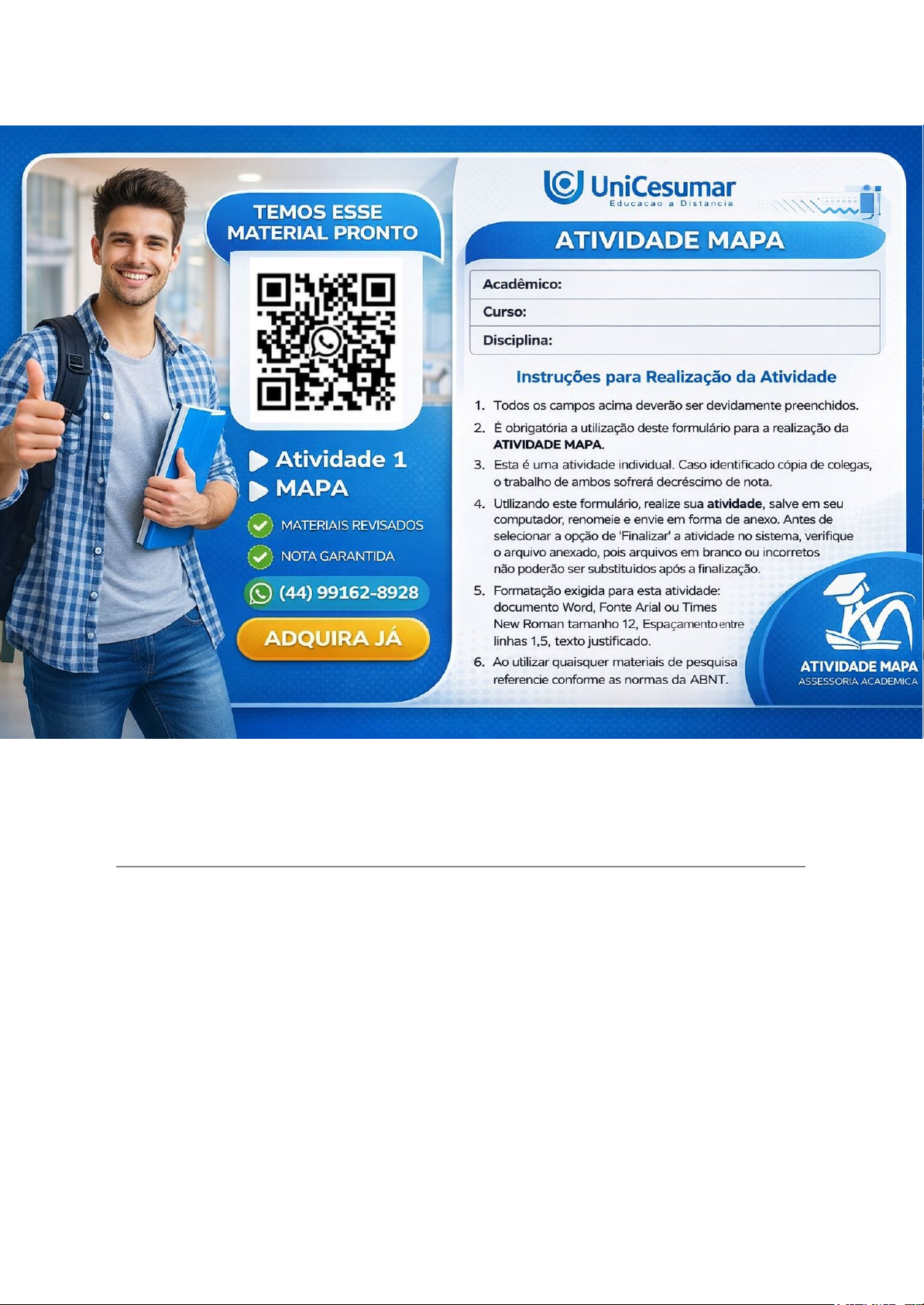 MAPA - EAMB - FUNDAMENTOS DE BOTÂNICA - 51_2026 Instruções para realização da atividade: 1. Todos os campos acima deverão ser devidamente preenchidos. 2. É obrigatória a utilização deste formulário para realização do MAPA. 3. Esta é uma atividade individual. Caso identificado cópia de colegas, o trabalho de ambos sofrerá decréscimo de nota. 4. Utilizando este formulário, realize sua atividade, salve em seu computador, renomeie e envie em forma de anexo no campo de resposta da atividade MAPA. 5. Formatação exigida para esta atividade: documento Word, Fonte Arial ou Times New Roman tamanho 12, espaçamento entre linhas 1,5 e texto justificado. 6. Ao utilizar quaisquer materiais de pesquisa, referencie conforme as normas da ABNT; 7. Critérios de avaliação: utilização do templete; atendimento ao Tema; constituição dos argumentos e organização das ideias; correção gramatical e Atendimento as normas da ABNT. 8. Procure argumentar de forma clara e objetiva, de acordo com o conteúdo da disciplina. Em caso de dúvidas, entre em contato com seu Professor Mediador. Bons Estudos! Contextualização A introdução de espécies vegetais fora de sua área de ocorrência natural é uma prática histórica associada à agricultura, paisagismo, reflorestamento e controle de erosão. No entanto, parte dessas espécies exóticas encontra condições ambientais favoráveis, ausência de predadores naturais e alta capacidade reprodutiva, passando a se comportar como espécies invasoras. As plantas invasoras podem alterar profundamente a estrutura e o funcionamento dos ecossistemas, competindo com espécies nativas por luz, água e nutrientes, modificando o solo, interferindo nos ciclos biogeoquímicos e reduzindo a biodiversidade local. Em ambientes naturais e seminaturais, sua presença representa um dos principais fatores de degradação ambiental, sendo um desafio constante para a gestão ambiental e a conservação da vegetação nativa. Nesse contexto, o engenheiro ambiental atua diretamente na identificação, avaliação de impactos e proposição de estratégias de manejo dessas espécies, considerando aspectos botânicos, ecológicos, fitogeográficos e legais. Situação-problema (hipotética) Considere que você atue como um engenheiro ambiental com uma equipe técnica multidisciplinar em uma empresa de consultoria ambiental, ao qual foi contratada para a elaboração de um Plano de Recuperação de Áreas Degradadas (PRAD), uma área de transição entre Mata Atlântica e Cerrado, localizada no estado do Mato Grosso do Sul. A área total da propriedade possuí com aproximadamente 325 hectares e foi utilizada por muitos anos como pastagem para criação de gados e atualmente a área apresenta trechos da área abandonados com a presença de processos erosivos e solo exposto, baixa diversidade vegetal e poucos fragmentos de vegetação nativa. Parte da área inclui matas ciliares ao longo de um rio de pequeno/médio porte que cruza a propriedade. A área total a ser recuperada possui aproximadamente 30 hectares. Durante uma visita de campo para a realização do diagnóstico ambiental preliminar, você identificou a presença dominante de uma espécie vegetal exótica invasora: Leucaena leucocephala (leucena), especialmente nas áreas de borda de fragmentos florestais e ao longo da mata ciliar. Características do local Para a uma melhor avaliação das possíveis estratégias para a recuperação da área degradada, apresenta-se a seguir dois mapas de localização com imagens de satélite da área total da propriedade, bem como, a área a ser recuperada, assim como as informações técnicas da região. INFORMAÇÕES TÉCNICAS: * Bioma: Área de transição entre Mata Atlântica e Cerrado. * Clima: Tropical, com estação seca definida. * Solo: Latossolo vermelho-amarelo, com sinais de compactação e erosão em áreas de pastagem antiga. * Área com alta infestação de leucena: cerca de 15 hectares. O mapa de localização a seguir oferece uma visão ampliada da região de implantação do projeto e destaca suas respectivas áreas de influência. A imagem permite uma análise mais detalhada dos elementos vizinhos ao local a ser recuperado, possibilitando observar com maior clareza as características do entorno imediato, tais como: * Presença de áreas de proteção ambiental (APP) e pequenos fragmentos vegetais. * Trechos com solo exposto. * Trechos com processos erosivos. * Áreas agrícolas (principalmente, áreas de pastagem e monocultura). * Área de solo úmido. * Pouca regeneração natural de espécies nativas. * Predomínio da leucena em áreas abertas e bordas de mata. * Redução da diversidade vegetal nas áreas invadidas. * Proximidade com cursos d’água e áreas de preservação permanente (APP). Figura 1 - Área de localização da propriedade com demarcação da área a ser recuperada. Fonte: o autor, 2026. Leitura: — Livro da disciplina (Unidades 6, 7, 8 e 9). — Leucena (Leucaena leucocephala): leguminosa de uso múltiplo para o semiárido brasileiro (LINK: https://www.embrapa.br/busca-de-publicacoes/-/publicacao/880169/leucena-leucaen a-leucocephala-leguminosa-de-uso-multiplo-para-o-semiarido-brasileiro). — Pesquisas/Bibliotecas on-line Vamos praticar! Responda, de forma dissertativa, às questões a seguir, tentando relacionar aos diversos dados e informações disponibilizadas na questão, bem como o conhecimento adquirido em nossas aulas e no livro da disciplina. 1. Explique por que a Leucaena leucocephala pode ser considerada uma planta invasora nessa área. 2. Por que as áreas degradadas e as regiões de transição entre biomas tendem a ser mais vulneráveis à invasão por espécies exóticas? 3. Como engenheiro ambiental, observe as características botânicas da Leucena, bem como as características do local e indique duas ações práticas que poderiam ser adotadas no PRAD para controlar a leucena e favorecer a recuperação da