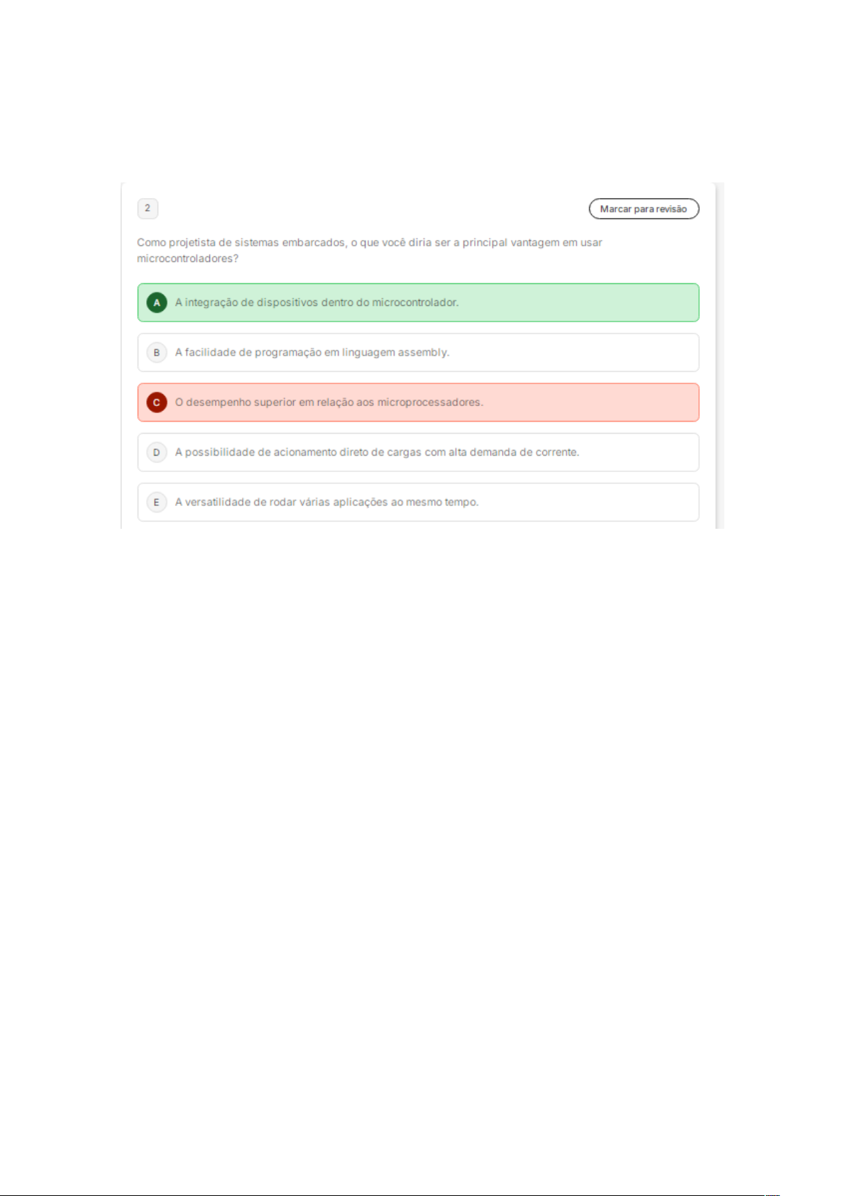 ista de exercícios Microcontroladores T 2 Marcar para revisão Os microcontroladores são amplamente utilizados para controle e automação de periféri...