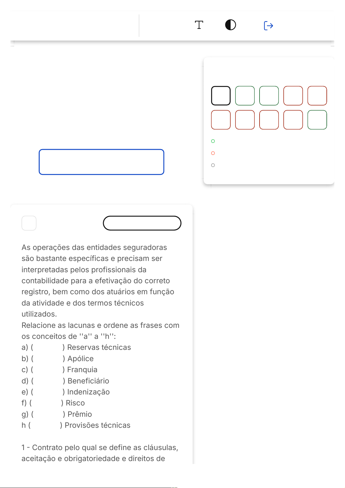 Você acertou 3 de 10 questões Verifique o seu desempenho e continue treinando! Você pode refazer o exercício quantas vezes quiser. Verificar Desempenho 1 Marcar para revisão As operações das entidades seguradoras são bastante específicas e precisam ser interpretadas pelos profissionais da contabilidade para a efetivação do correto registro, bem como dos atuários em função da atividade e dos termos técnicos utilizados. Relacione as lacunas e ordene as frases com os conceitos de ''a'' a ''h'': a) ( ) Reservas técnicas b) ( ) Apólice c) ( ) Franquia d) ( ) Beneficiário e) ( ) Indenização f) ( ) Risco g) ( ) Prêmio h ( ) Provisões técnicas 1 - Contrato pelo qual se define as cláusulas, aceitação e obrigatoriedade e direitos de Questão 1 de 10 Corretas (3) Incorretas (7) Em branco (0) 1 2 3 4 5 6 7 8 9 10 Lista de exercícios Premiss… Da Ciência Atuarial e Sua Prática Sair A B C D E seguros. Um Termo que contém direitos e obrigações 2 - Indicado pelo segurado para receber o prêmio de seguro, quando o segurado principal faltar, em caso de falecimento do segurado, é uma pessoa de sua escolha para receber o título de beneficiário para receber o prêmio. 3 - Valor ou percentual definido na apólice referente a responsabilidade do segurado nos prejuízos indenizados. 4 - Valor a ser pago pela sociedade seguradora na decorrência do evento coberto, limitado ao valor do capital. 5 - Importância paga pelo segurado à seguradora para que esta assuma os riscos a que o segurado está exposto. 6 - Qualquer situação de causa natural, provável ocorrência, prevista ou não. 7 - Dinheiro que a seguradora precisa manter para arcar com o compromisso. 8 - Reserva percentual para cobrir o sinistro. Marque a alternativa que corresponde ao correto preenchimento das lacunas: 1, 2, 3, 4, 8, 7, 6, 5 8, 1, 3, 2, 4, 6, 5, 7 8, 1, 3, 4, 2, 5, 7, 6 5, 7, 1, 3, 2, 4, 8, 6 8, 7, 6, 5, 1, 2, 3, 4 Resposta incorreta Opa! A alternativa correta é a letra B. Confira o gabarito comentado! Gabarito Comentado Apólice: Contrato pelo qual se define as cláusulas, aceitação e obrigatoriedade e direitos de seguros. Um Termo que contém direitos e obrigações Beneficiário: Indicado pelo segurado para receber o prêmio de seguro, quando o segurado principal faltar, em caso de falecimento do segurado, é uma pessoa de sua escolha para receber o título de beneficiário para receber o prêmio. Franquia: Valor ou percentual definido na apólice referente a responsabilidade do segurado nos prejuízos indenizados. Indenização: Valor a ser pago pela sociedade seguradora na decorrência do evento coberto, limitado ao valor do capital. Prêmio: Valor a ser pago pela sociedade seguradora na decorrência do evento coberto, limitado ao valor do capital. Risco: Qualquer situação de causa natural, provável ocorrência, prevista ou não. Provisões técnicas: Dinheiro ou capital que a seguradora precisa manter para arcar com o compromisso. Reservas técnicas: Reserva percentual para cobrir o sinistro. A B C D E 2 Marcar para revisão A previdência privada é de caráter facultativo, não é obrigatória como a previdência social, ou seja, é feita apenas se a pessoa manifestar interesse em contribuir com uma previdência complementar. Os objetivos dessa contribuição, tais como aposentadoria futura, viagem, estudo ou qualquer outro planejamento de médio a longo prazo. Ao optar por contratar uma previdência, é importante saber que existem alguns custos de gestão, corretagem e administração do fundo, como taxa de administração e de carregamento. Todos esses custos são aprovados pela SUSEP. A previdência privada possui um regime de tributação diferenciado, dividido em dois grupos: Marque a alternativa correta: Progressivo X Regressivo Real X Presumido Normal X Simplificado Presumido X Arbitrado Real X Arbitrado Resposta correta Parabéns, você selecionou a alternativa correta. Confira o gabarito comentado! Gabarito Comentado A previdência privada, como mencionado no enunciado, possui um regime de tributação diferenciado, que é dividido em dois grupos: Progressivo e Regressivo. No regime progressivo, a alíquota de imposto aumenta conforme o valor do resgate. Já no regime regressivo, a alíquota de imposto diminui conforme o tempo de aplicação. Portanto, a alternativa correta é Progressivo X Regressivo. 3 Marcar para revisão Maria faz sua declaração de IRPF todos os anos. Em 2021 ela contratou um Plano Vida Gerador de Benefícios Livres pensando em aproveitar a despesa como dedutível na base de cálculo do seu imposto de renda pessoa física. Ela fez a contratação no dia 03/01/2021. Incluiu na sua declaração, e caiu em malha fiscal. Foi até o seu gerente, que lhe informou que VGBL é indicado para quem não tem renda tributável, e que não é permitido mudar de plano de previdência complementar, após escolhido. Com isso, Maria precisa tomar uma decisão. Marque a alternativa correta que Maria pode A B C D E tomar como decisão sobre o investimento. Realizar todo o resgate no plano atual e aplicar no plano PGBL Terá que aguardar os 24 meses, depois deverá efetuar todo o resgate no plano atual e aplicar no plano PGBL Terá que aguardar mais 5 meses, depois deverá efetuar todo o resgate no plano atual e aplicar no plano PGBL Terá que aguardar os 60 dias, depois deverá efetuar todo o resgate no plano atual e aplicar no plano PGBL Manter o plano VGBL e não retificar a sua declaração de IRPF Resposta correta Parabéns, você selecionou a alternativa correta. Confira o gabarito comentado! Gabarito Comentado Maria deve realizar todo o resgate no plano atual e aplicar no plano PGBL pois o correto para quem usa o formulário completo do IRPF é o plano PGBL e não, VGBL. A B C D E 4 Marcar para revisão Com o apoio de ferramentas matemáticas e estatísticas o atuário consegue desempenhar esse princípio e monitorar a ocorrência de eventos, indicando a possibilidade