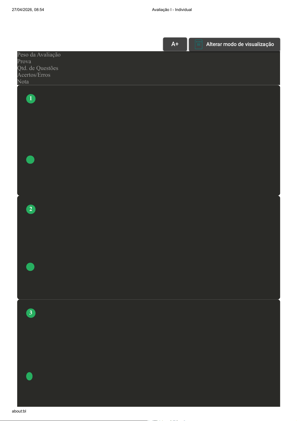Prova Impressa GABARITO | Avaliação I - Individual (Cod.:1524755) Peso da Avaliação 2,00 Prova 104297542 Qtd. de Questões 10 Acertos/Erros 10/0 Nota 10,00 O sistema de unidades usuais nos Estados Unidos é um dos mais notáveis entre os existentes na atualidade, possuindo unidades como pés, onças e galões. Acerca deste sistema de unidades, assinale a alternativa CORRETA: A É baseado no Sistema Internacional, servindo como uma extensão deste. B Foi criado no século XVIII, buscando distanciar o país da Inglaterra quando buscava sua independência. C São baseadas no Sistema Inglês, tendo unidades parecidas, mas não idênticas ao Sistema Imperial. D Utiliza unidades baseadas em ambos os sistemas Internacional e Imperial, buscando combinar os pontos fortes de cada. As escalas Celsius e Fahrenheit são duas das mais utilizadas popularmente. A cidade de São Paulo, em um certo dia, sofreu uma variação de temperatura de 20 ºF. Calcule qual foi a variação de temperatura na escala Celsius e assinale a alternativa CORRETA: A -6,7 ºC. B 21 ºC. C 11,1 ºC. D 36 ºC. As unidades de medição são necessárias para a realização de qualquer medição de engenharia, permitindo a comparação entre grandezas de diferentes objetos. Quanto às unidades de medição, assinale a alternativa CORRETA: A Existe apenas um sistema de unidades correto para cada caso, devendo ser escolhido com cuidado. B Deve-se evitar definir unidades próximas dos valores de constantes físicas, pois confundem os cálculos. C São apenas um artifício de conveniência, geralmente podendo-se obter resultados corretos com qualquer sistema de unidades. VOLTAR A+Aumentar, FonteAlterar modo de visualização 1 2 3 27/04/2026, 08:54 Avaliação I - Individual about:blank 1/5 D As unidades do sistema internacional são a melhor escolha, possuindo maior campo de aplicação. As unidades derivadas são unidades do Sistema Internacional que podem ser escritas como uma função das unidades básicas. Por exemplo, a unidade de pressão, Pascal, pode ser escrita como kg/m.s². Com relação às correspondências do SI das unidades derivadas, associe os itens, utilizando o código a seguir: I- Hertz. II- Newton. III- Volt. IV- Watt. ( ) J/A.s ( ) kg.m/s². ( ) kg.m²/s³ ( ) 1/s. Assinale a alternativa que apresenta a sequência CORRETA: A II - III - I - IV. B III - IV - I - II. C I - II - IV - III. D III - II - IV - I. As unidades do Sistema Internacional são divididas em dois tipos: unidades básicas e unidades derivadas. As unidades básicas possuem definição com base em um padrão, enquanto que as derivadas surgem de combinações das unidades básicas. Com relação às unidades do Sistema Internacional e seus tipos, associe os itens, utilizando o código a seguir: I- Unidade básica do Sistema Internacional. II- Unidade derivada do Sistema Internacional. III- Unidade que não é parte do Sistema Internacional. ( ) Quilograma. ( ) Newton. ( ) Volt. ( ) Kelvin. ( ) Milha. Assinale a alternativa que apresenta a sequência CORRETA: A II - II - II - I - III. B III - I - I - II - III. C I - II - II - I - III. 4 5 27/04/2026, 08:54 Avaliação I - Individual about:blank 2/5 D I - III - I - III - II. Na metrologia, existem certos termos associados ao processo de medição, sendo utilizados para melhor comunicar as medidas relacionadas com as grandezas de estudo. Com relação a esta terminologia, associe os itens, utilizando o código a seguir: I- Gama de medição. II- Padrão. III- Resolução. IV- Unidade de medição. ( ) Intervalo sobre o qual um instrumento pode realizar medições ( ) Menor variação que um instrumento pode medir ( ) Objeto ou fenômeno utilizado como referência para comparação de outros ( ) Uma definição que é baseada em um padrão, utilizada para comparação de fenômenos e objetos Assinale a alternativa que apresenta a sequência CORRETA: A II - I - III - IV. B I - III - II - IV. C III - II - IV - I. D IV -I - II - III. O paquímetro é um instrumento de medição de comprimento que possui relativamente boa resolução. A figura a seguir contém um paquímetro com nônio, mantido em posição aberta como se estivesse medindo uma peça, o que faz com que uma medição seja indicada do paquímetro e nônio. Quanto à medição deste paquímetro com nônio, assinale a alternativa CORRETA: FONTE DA IMAGEM: https://www.aiqloja.com.br/metrologia-dimensional/paquimetro-universal- de-300mm-12-graduac-o-de-0-05mm-mod-mpu-300.html. Acesso em: 10 jun. 2019. 6 7 27/04/2026, 08:54 Avaliação I - Individual about:blank 3/5 A 3,301 cm. B 3,10 cm. C 3,31 cm. D 3,11 cm. O paquímetro é um instrumento de medição de comprimento possuindo aplicação ampla, devido a sua capacidade de medir certas geometrias que não podem ser medidas diretamente por uma régua graduada normal. Quanto aos paquímetros, classifique V para as sentenças verdadeiras e F para as falsas: ( ) Não conseguem medir circunferências diretamente. ( ) Não conseguem medir profundidade de furos. ( ) Podem ser usados para medir diâmetros de cilindros, através da haste no final do cabo. ( ) Podem ser utilizados Para medir abertura de furos através dos encostos no lado oposto. Assinale a alternativa que apresenta a sequência CORRETA: A V - V - F - F. B F - F - V - V. C V - F - F - V. D F - V - V - F. A metrologia possui um número de instituições reguladoras, cada uma com âmbito e objetivos específicos. Um exemplo são as instituições que regulam o sistema métrico em cada país. Com relação a estas instituições, associe os itens, utilizando o código a seguir: I- BIPM. II- INMETRO. III- OIML. IV- NIST. ( ) Garante a harmonia de legislação metrológica no mundo. ( ) Instituto responsável pelo sistema métrico nos Estados Unidos. ( ) Regulamenta o uso do sistema métrico no Brasil. ( ) Responsável pelo sistema métrico no mundo. Assinale a alternativa que apresenta a sequência CORRETA: A I - IV - III - II. B III - I