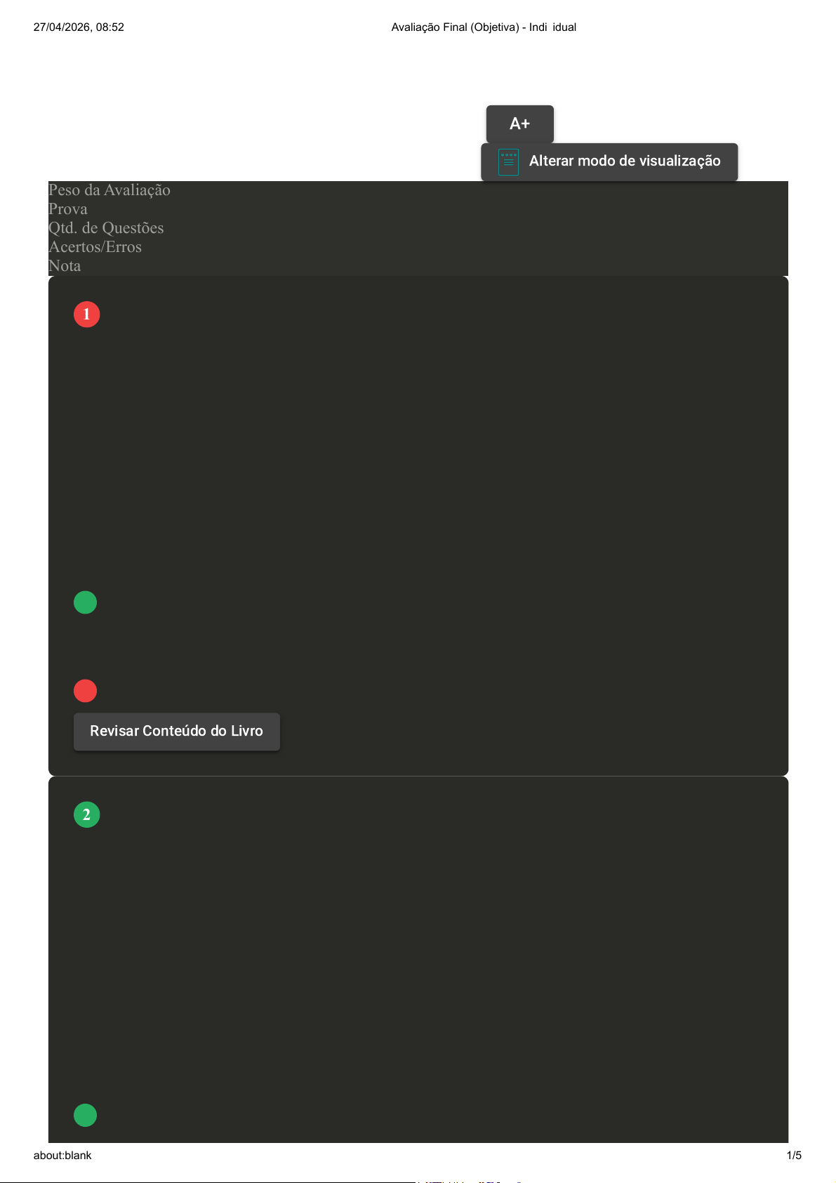 Prova Impressa GABARITO | Avaliação Final (Objetiva) - Individual (Cod.:1023171) Peso da Avaliação 4,00 Prova 95574378 Qtd. de Questões 10 Acertos/Erros 6/4 Nota 6,00 Dentro das indústrias, muitas vezes é necessário mover objetos de um ponto para outro. Para isso, utiliza-se sistemas de transportadores, que podem ser de vários tipos, como de correia, por rolos, por corrente e esteira ou por vibração, entre outros. De acordo com o exposto, classifique em V para as sentenças verdadeiras e F para as falsas: ( ) Transportadores por correia são geralmente acionados por motores na extremidade oposta à tração. ( ) Transportadores por rolos podem ser acionados individualmente. ( ) Transportadores por corrente e esteira são acionadas por uma roda dentada com motor CC. ( ) Transportadores por vibração são acionados por um motor com eixo excêntrico. Assinale a alternativa que apresenta a sequência CORRETA: A V - V - F - F. B F - V - F - V. C V - F - V - F. D F - F - V - V. Os sistemas de controle industrial podem ser de vários tipos, como, exemplos comuns, o controle de supervisão e aquisição de dados (SCADA), os sistemas de controle distribuído (DCS) e controladores lógicos programáveis (PLC). Com base nesses sistemas de controle, associe os itens, utilizando o código a seguir: I- SCADA. II- DCS. III- PLC. ( ) São utilizados para controlar processos industriais. ( ) São utilizados para o controle de dispositivos distribuídos às grandes distâncias e grandes dispersões. ( ) São utilizados para sistemas de controle menores. Assinale a alternativa que apresenta a sequência CORRETA: A II - I - III. VOLTAR A+Aumentar, Fonte Alterar modo de visualização 1 Revisar Conteúdo do Livro 2 27/04/2026, 08:52 Avaliação Final (Objetiva) - Individual about:blank 1/5 B I - III - II. C I - II - III. D III - I - II. A primeira revolução industrial foi um dos movimentos mais notáveis, representando um grande avanço nas capacidades de produção da indústria e sendo seguida de várias outras revoluções industriais até os dias de hoje. Sobre a primeira revolução industrial e a tecnologia que a impulsionou, assinale a alternativa CORRETA: A Máquina a Vapor. B Eletricidade. C Avanços em computadores. D Inteligência de máquinas e processos. O gerenciamento da produção é um processo que afeta todo o processo produtivo e, para ser exercido, define o que compõe a qualidade de um produto. Sobre o que define a qualidade do produto, assinale a alternativa CORRETA: A É definido pela diretoria da empresa. B É definido pelas necessidades dos clientes. C É definido pelo lucro obtido. D É definido pela presença de mercado obtida. Os sistemas de controle incorporado possuem um software utilizado para dirigir o programa e realizar o controle desejado pela empresa. De acordo com esse software, classifique V para as sentenças verdadeiras e F para as falsas: ( ) O software consiste em um firmware e alguns programas adicionais. ( ) Pode ser executado muitas vezes sem teclado e tela. ( ) Ele é maior e mais complexo do que o software de computador. ( ) Possui altos requerimentos de Hardware. Assinale a alternativa que apresenta a sequência CORRETA: A V - V - F - F. B V - F - V - F. C F - F - V - V. 3 4 5 27/04/2026, 08:52 Avaliação Final (Objetiva) - Individual about:blank 2/5 D F - V - F - V. O controle PID (Proporcional, integrado e derivado) é um método de controle muito utilizado na indústria para controlar processos simples. Com base nesse controlador, analise as sentenças a seguir: I- Não funciona bem com processos acoplados. II- Requer reajustes quando altera a dinâmica do processo. III- Pode ser utilizado como núcleo de um sistema inteligente. Assinale a alternativa CORRETA: A As sentenças I e III estão corretas. B Somente a sentença III está correta. C Somente a sentença II está correta. D As sentenças I e II estão corretas. O Taylorismo, Fordismo e Toyotismo são três conceitos de produção desenvolvidos no século XX que trouxeram ideias para a indústria que permitiram otimizar a produção. Sobre essas ideias, associe os itens, utilizando o código a seguir: I- Taylorismo. II- Fordismo. III- Toyotismo. ( ) Adota uma organização de linhas de produção, permitindo maiores volumes de produção e menores custos unitários. ( ) Aplica a filosofia Just-in-time, reduzindo estoques-tampão. ( ) Busca a melhor organização da produção, aumentando a eficiência dos processos na fábrica. Assinale a alternativa que apresenta a sequência CORRETA: A I - II - III. B II - III - I. C I - III - II. D III - I - II. No processo de projeto é muito importante projetar para o ciclo de vida do produto, existindo vários modelos que descrevem esse ciclo. O guia GMP apresenta um modelo de mais de dez etapas para o ciclo de vida do projeto. De acordo com o guia GMP, classifique V para as sentenças 6 Revisar Conteúdo do Livro 7 8 27/04/2026, 08:52 Avaliação Final (Objetiva) - Individual about:blank 3/5 verdadeiras e F para as falsas: ( ) O plano de validação define o escopo do projeto. ( ) A especificação de requisitos do usuário é geralmente criado pelo operador. ( ) O objetivo do Teste de aceitação de fábrica é que o sistema já esteja aprovado para que o cliente o aceite antes da entrega. ( ) A qualificação de desempenho resume o resultado dos testes feitos. Assinale a alternativa que apresenta a sequência CORRETA: A V - F - F - V. B F - F - V - V. C F - V - V - F. D V - V - F - F. A automação permite que tarefas sejam feitas em fábrica que normalmente seriam realizadas por humanos, assim como a tomada de decisões, sejam feitas automaticamente por computador. Esse processo possui vantagens e desvantagens. De acordo com as desvantagens, classifique V para as sentenças verdadeiras e F para as falsas: ( ) Diminui a produtividade. ( ) Causa desemprego. ( ) Alto custo de obsolescência. ( ) Aumenta o custo de trabalho. Assinale a alternativa