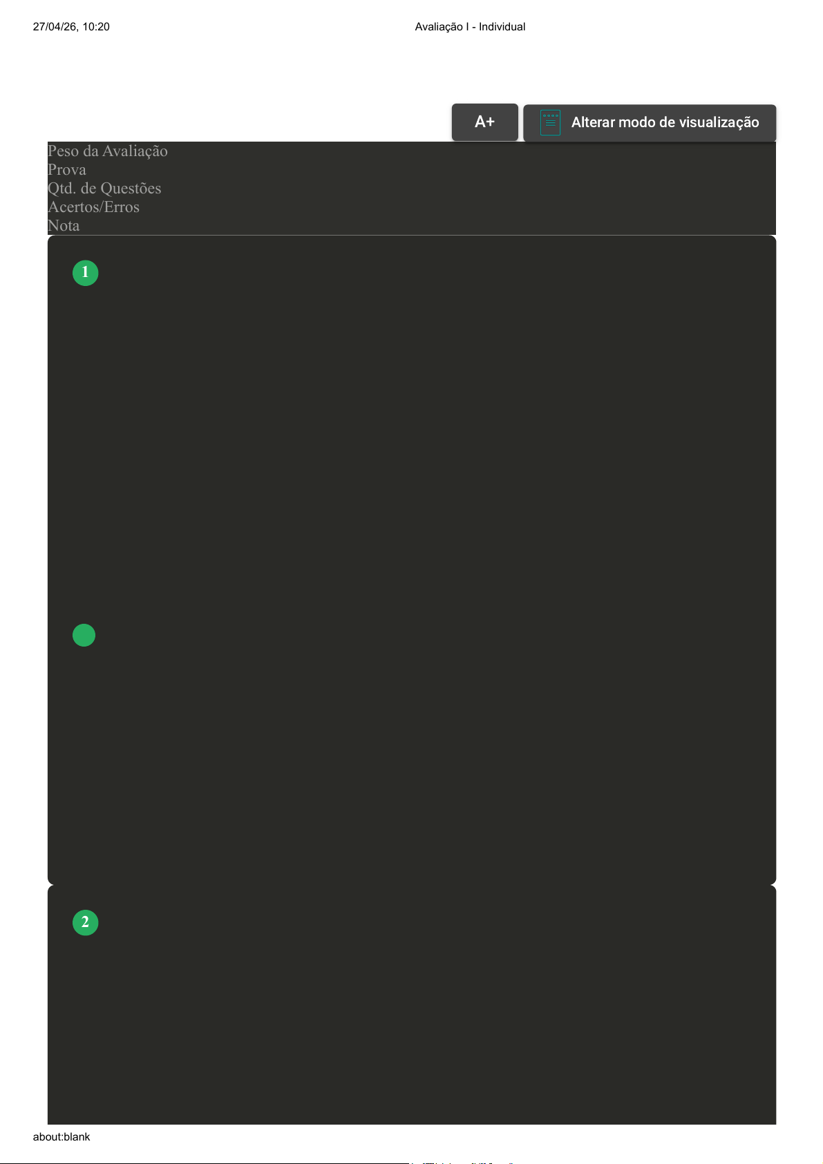 Prova Impressa GABARITO | Avaliação I - Individual (Cod.:1523526) Peso da Avaliação 2,00 Prova 102494210 Qtd. de Questões 10 Acertos/Erros 10/0 Nota 10,00 Quando o assunto é a classificação do voleibol quanto às características do jogo, temos inúmeros autores que cumprem esse papel. Trazemos como referência nesses estudos, o autor Bompa (1999), que afirma allgumas questões relevantes. Com base no exposto, avalie as asserções a seguir e a relação proposta entre elas: I- Segundo Bompa (1999), o voleibol é classificado de acordo com as ações executadas no jogo, como de uma estrutura acíclica, com alternância de intensidade e dominância motora de coordenação, potência, força e resistência. PORQUE II- A elevada demanda do sistema nervoso central e do aparelho locomotor são característicos da modalidade. Assinale a alternativa CORRETA: FONTE: BOMPA, T. O. Periodization - theory and methodology of training. 4. ed. Human Kinetics, 1999. A A asserção II está correta e é uma complementação da asserção I. B As asserções I e II estão incorretas. C A asserção I está correta e a asserção II está incorreta. D As asserções I e II estão corretas, porém a II não faz referência à primeira. A ordem do rodízio é determinada pela formação inicial definida e controlada através do formulário de ordem de saque, devendo ser mantida em todo o set. Quando a equipe receptora ganha o direito de sacar, seus jogadores efetuam um rodízio, avançando uma posição, sempre no mesmo sentido. Sobre as mudanças no rodízio durante um jogo de voleibol, assinale a alternativa CORRETA: A O jogador da posição 2 vai para a posição 1 para sacar; o jogador da posição 1 vai para a posição 6; o jogador da posição 6 vai para a posição 5; o jogador da posição 5 vai para a posição 4; o jogador da posição 4 vai para a posição 3; o jogador da posição 3 vai para a posição 1. VOLTAR A+Aumentar, FonteAlterar modo de visualização 1 2 27/04/26, 10:20 Avaliação I - Individual about:blank 1/6 B O jogador da posição 2 vai para a posição 1 para sacar; o jogador da posição 1 vai para a posição 6; o jogador da posição 6 vai para a posição 5; o jogador da posição 5 vai para a posição 4; o jogador da posição 4 vai para a posição 3; o jogador da posição 3 vai para a posição 2. C O jogador da posição 2 vai para a posição 1 para sacar; o jogador da posição 1 vai para a posição 6; o jogador da posição 6 vai para a posição 5; o jogador da posição 5 vai para a posição 4; o jogador da posição 4 vai para a posição 3; o jogador da posição 3 vai para a posição 1. D O jogador da posição 1 vai para a posição 2 para sacar; o jogador da posição 6 vai para a posição 5; o jogador da posição 5 vai para a posição 4; o jogador da posição 4 vai para a posição 3; o jogador da posição 3 vai para a posição 2; o jogador da posição 2 vai para a posição 1. Sobre o fundamento da cortada, é possível afirmar que este é o fundamento mais esperado nesse esporte, talvez por trazer consigo muitas vezes a decisão do ponto. Ainda sobre a cortada, avalie as asserções a seguir e a relação proposta entre elas: I- Para o salto, os braços devem posicionar-se estendidos para frente do corpo, sendo ainda lançados par o alto. Já os membros inferiores e o tronco se estendem. PORQUE II- A velocidade horizontal da corrida facilita na impulsão vertical, auxiliando na busca pelo máximo alcance. Assinale a alternativa CORRETA: A A asserção I está correta e a asserção II está incorreta. B As asserções I e II estão corretas, e a II complementa a I. C A asserção II está incorreta e não é complementação da asserção I. D As asserções I e II estão incorretas. Com relação ao fundamento do bloqueio, é possível afirmar que este se caracteriza como o ato de defender praticado pelos atacantes, consiste em saltar e formar uma barreira com as mãos, com objetivo de impedir a passagem da bola para seu campo/quadra. Sobre esse fundamento, analise as sentenças a seguir: I- O fundamento bloqueio tem caráter defensivo, seu objetivo é interceptar a bola cortada pela equipe oponente. 3 4 27/04/26, 10:20 Avaliação I - Individual about:blank 2/6 II- O fundamento bloqueio tem caráter ofensivo, seu objetivo é interceptar a bola cortada pela equipe oponente. III- O bloqueio passa a ter caráter defensivo quando consegue lançar a bola contra o solo da equipe adversária. IV- O bloqueio passa a ter caráter ofensivo quando consegue lançar a bola contra o solo da equipe adversária. Assinale a alternativa CORRETA: A Somente a sentença III está correta. B Somente a sentença IV está correta. C As sentenças II e III estão corretas. D As sentenças I e IV estão corretas. As posições de expectativa, embora não sejam fundamentos do voleibol, são fundamentais na correta execução desses fundamentos. Ainda, não são consideradas habilidades propriamente ditas, pois não envolvem o manuseio da bola nem qualquer tipo de movimentação na quadra. Sobre as posições de expectativa, assinale a alternativa INCORRETA: A Requer equilíbrio permanente e faz com que o executante tenha, na maior parte das vezes, o centro de gravidade fora do próprio corpo, principalmente em situações de defesa, exigindo-o a se colocar mais perto do chão para defender sua “propriedade”. B Exige, além do equilíbrio estático, força isométrica de membros inferiores, tronco, membros superiores e pescoço, não esquecendo de uma boa flexibilidade dorsal. C São compreendidas como posturas corporais que antecedem a execução das habilidades específicas do esporte. São utilizadas para preparar o corpo para executar os fundamentos e técnicas do voleibol. D Definem-se de acordo com a posição das pernas e dos braços com relação indireta à trajetória da bola e a ação que será executada em contato com a bola. Mudanças nas regras