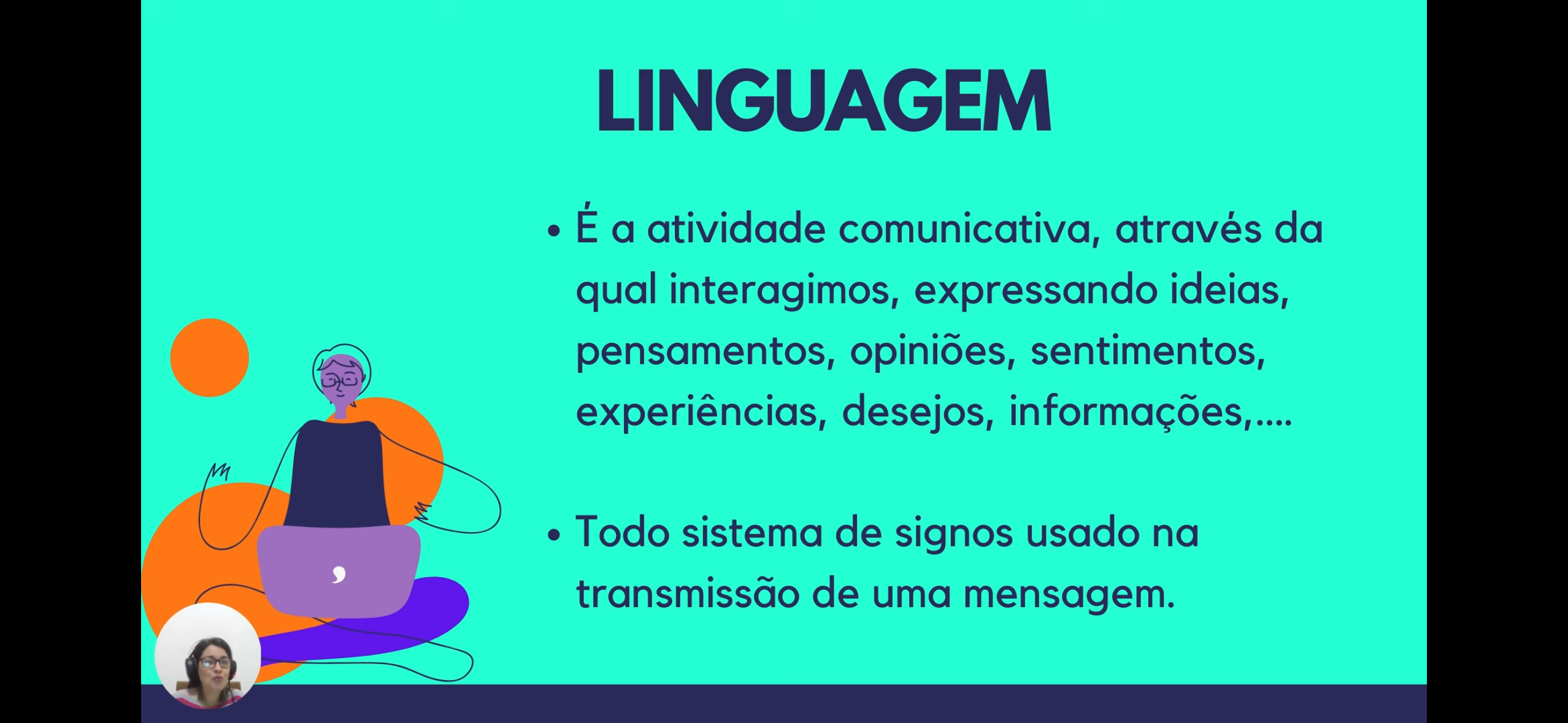LINGUAGEM É a atividade comunicativa, através da qual interagimos, expressando ideias, pensamentos, opiniões, sentimentos, experiências, desejos, informações, Todo sistema de signos usado na transmissão de uma mensagem.