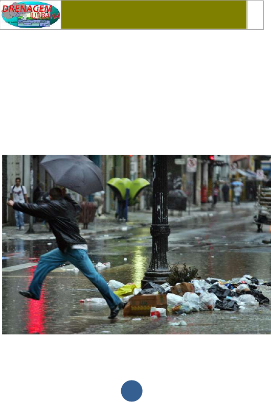 1 O QUE É DRENAGEM 1 Podemos entender como DRENAGEM o ato de eliminar o líquido indesejável de um local. Na medicina, a drenagem é a inserção de dispositivos dentro do organismo humano para a retirada de líquidos que se acumulam na barriga ou algum órgão da pessoa. No futebol, a drenagem é a instalação de tubos e caixas por debaixo do campo para que em dias de chuva a água seja rapidamente eliminada do gramado não chegando a formar poças que venham a atrapalhar a realização de uma partida. Na cidade, drenagem é a instalação de caixas e tubos por debaixo de uma rua para que em dias de chuva as águas sejam rapidamente escoadas e eliminadas da superfície da rua de modo a impedir a formação de enxurradas que venham a inundar as casas ou dificultar o trânsito de pedestres ou até derrubar e arrastar pessoas. Veja, no desenho seguinte, que parte da água da chuva corre pela superfície e parte corre por baixo. 2 Via Pública SEM Drenagem Urbana: Não havendo Drenagem Urbana, as águas (superficiais e subterrâneas) produzem danos como: Deslizamento de Encostas: Enxurradas: Inundações: Abertura de Crateras: Estudar a drenagem de um local é analisar a adequação, em tamanho e em quantidade, dos diversos componentes da drenagem, como boca de lobo, cortina drenante, caixa de coleta, ramal coletor e galeria de drenagem, que possam efetuar de modo eficiente a eliminação das águas que podem causar transtornos e prejuízos à população. Via Pública COM Drenagem Urbana: 3 Rede de Drenagem é o conjunto formado pelos dispositivos - caixas, tubos, galerias, etc. - que promovem a drenagem das águas de um local ou de uma região. Projeto de Drenagem é o estudo da projeção de uma situação simulada e o correto dimensionamento dos dispositivos que irão compor a Rede de Drenagem. No Estudo se leva em consideração o Período de Recorrência (também conhecido como Período de Retorno) que é o tempo em que se admite ocorrer uma enchente. Assim, se o Período de Recorrência for de 10 anos, estamos admitindo que a cada 10 anos podemos aceitar que ocorra uma enchente. No caso de estábulos e chiqueiros localizados na proximidade de rios é perfeitamente aceitável ocorrer essa inundação a cada 10 anos. No caso de uma Hidrelétrica importante como a de Itaipú, o Período de Recorrência é de 10.000 anos (tecnicamente denominada Enchente Decamilenar). Assim, se garante que por maior que seja a chuva nos próximos 10.000 anos, não irá ocorrer qualquer danos à usina. Deste modo, a engenharia precisa fixar o Período de Retorno e isso é feito em função da "importância" do local. Este site não tem a pretenção de ensinar, mas não custa nada, você cidadão, conhecer um pouco sobre a Drenagem Urbana para saber que em muitos casos, as providências necessárias para se evitar as inundações são simples. Saiba a diferença entre bueiro e boca de lobo, veja quantas bocas de lobo deveriam ter na sua rua. Critérios de Projeto é o conjunto medidas e limites previamente estabelecidos para o desenvolvimento do Projeto de Drenagem. Dependendo da importância econômica do local pode-se estabelecer critérios mais ou menos rígidos para a drenagem. No caso das chuvas, um determinado Projeto de Drenagem pode levar em consideração o período de retorno na chuva em função da importância do local. Por exemplo, em um estábulo construído próximo de um rio podemos admitir que o mesmo seja inundado de vez em quando. Por que isso? Por que as obras necessárias para que o estábulo não seja nunca inundado envolveria um investimento financeiro alto que não valeria dispender num estábulo velho. Os Critérios de Projeto definem quais serão as chuvas que a drenagem devem atender e quais serão as chuvas que não serão atendidas pela drenagem. Há também leis (federais, estaduais e municipais) obrigando os governos a realizarem obras de drenagem para dar aos moradores a segurança e a tranquilidade que merecem. Ninguém quer ser acordado na meio da madrugada por que o local está sofrendo uma inundação. Você conhece estas leis? Estas leis estão sendo obedecidas? Por fim, entenda que não existe "cidadão de primeira" e nem "cidadão de segunda" todos são iguais e todos deveriam ser tratados da mesma forma. Se todos os habitantes de uma cidade devem ser tratados da mesma forma, então por que 4 existem bairros com uma boa Rede de Drenagem e por que existem bairros sem nenhuma Drenagem Urbana? Procure, na sua rua, a Boca de Lobo que é a peça principal da Rede de Drenagem Superficial. Boca de Lobo, cadê você? DEFINIÇÃO DE ALGUNS TERMOS TÉCNICOS 2 ENXURRADA - Torrente de água da chuva. Água da chuva que corre pela superfície das ruas causando insegurança nas pessoas e ameaçando bens. Pessoas e carros podem ser arrastados pela enxurrada. GUIA - È o alinhamento da pista. Também chamada de meio-fio. SARJETA - É o local por onde corre a água. A sarjeta deve ser dimensionada (inclinação e largura) de tal forma que toda água consiga escoar por ela sem invadir o leito carroçável. LEITO CARROÇÁVEL - Local por onde transita os veículos. 5 PLUVIOLOGIA - Ciência que estuda o comportamento das chuvas. PLUVIÔMETRO - Aparelho que mede a quantidade de água de uma chuva. FLUVIOLOGIA - Ciência que estuda o comportamento dos rios. FLUVIÔMETRO - Aparelho que mede a vazão de um rio. ENCHENTE - Fenômeno fluvial em que um rio, não conseguindo dar vazão à água que aflui num determinado ponto, eleva o nível das águas. Diz-se que o rio encheu. TRANSBORDAMENTO - Passar pela borda. Dizemos que o "rio transbordou", isto é, as águas do rio passaram por cima da borda do rio, inundando as avenidas e ruas. INUNDAÇÃO - Invasão de um local pelas águas que pode ser da chuva, de um rio que transbordou ou de um cano que estourou. As águas da enxurrada invadiram, isto é, inundou a minha loja. 6 ALAGAMENTO - Existência de água empoçada em determinado local e q