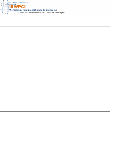 1 Eixo Temático: Organização e Representação da Informação e do Conhecimento O PADRÃO DE METADADOS DUBLIN CORE: A REPRESENTAÇÃO DESCRITIVA EM HTML1 Bill Alexander Santos da Silva2 Juliana Marques do Amaral3 Nayara Ghiovana Stanganelli4 RESUMO Em razão de solucionar as formas de recuperação e acesso aos recursos armazenados na Web foi criado o padrão de metadados Dublin Core, apresentando uma estrutura simples, flexível, padronizada e com consenso internacional para sua utilização. Por meio de uma análise exploratória e descritiva da literatura disponível, o objetivo desse trabalho é apresentar o Dublin Core e verificar a representação do recurso informacional, inserido ao Hyper Text Markup Language (HTML). Considerando as características de sua estrutura, os resultados mostram que o Dublin Core possui um grande potencial de substituir os métodos anteriores de representação para o ambiente Web. Palavras-chave: Dublin Core. HTML. Padrão de metadados. Descrição de recursos informacionais digitais. 1 INTRODUÇÃO E OBJETIVOS A tecnologia tem o papel de potencializar a inteligência humana, fornece condições para que a pessoas criem e disseminem seus conhecimentos em ambientes colaborativos. Além disso, possibilita diversos tipos de interação e dinâmica. Atualmente os meios de comunicação estão inseridos dentro de uma macromídia, denominada plataforma Web. O surgimento de ferramentas que permitem a construção rápida de páginas e websites culminou em uma aceleração constante, exponencial e descontrolada de 1 Trabalho desenvolvido durante a disciplina optativa “2BIB996 - Metadados e interoperabilidade” da graduação de Biblioteconomia e ministrada pela Profa. Ana Carolina Simionato, durante o período de março a julho de 2014, na Universidade Estadual de Londrina (UEL). 2 Graduando do Curso de Biblioteconomia – UEL. Email: michabill92@gmail.com 3 Graduando do Curso de Biblioteconomia – UEL. Email: jumarquesamaral@gmail.com 4 Graduando do Curso de Biblioteconomia – UEL. Email: nayarabib1@hotmail.com 2 diferentes tipos de recursos informacionais na Web, incluindo os recursos como os websites. Essa produção gera um caos informacional e consequentemente, tarefas como a identificação, organização e busca de informações se tornam importantes para que possa recuperar e acessar o que se deseja. E além disso, otimiza as formas de navegação dentro dos sistemas informacionais. Nesse sentido, várias iniciativas estão sendo conduzidas e assim, tendo em vista as formas descritivas para garantir o acesso aos documentos, esse estudo procura refletir sobre como: a representação descritiva auxilia nas formas de recuperação e acesso na plataforma Web? Para tanto, os padrões mais flexíveis e eficientes para descrição de recursos, como o Dublin Core, apresentam uma estrutura capaz de garantir o acesso do recurso e facilitar a interoperabilidade entre os metadados. Dessa forma, a partir de uma revisão bibliográfica da literatura realizada sobre o padrão de metadados Dublin Core e sobre a linguagem de marcação Hyper Text Markup Language (HTML), o objetivo do estudo é verificar que o uso do padrão Dublin Core em websites construídos com base na linguagem HTML possibilitam a otimização do acesso e recuperação dos recursos. Logo, esse estudo contribui com a literatura sobre o tema, além de esclarecer sobre a representação descritiva na plataforma Web. 2 PRESSUPOSTOS TEÓRICOS As tecnologias modificam a relação dos profissionais da informação com a forma de tratar a informação gerada e corporificada em recursos, entre essa relação ocasionam as principais mudanças relacionadas à informação e à tecnologia, como exemplo a produção acentuada de recursos informacionais. E consequentemente, na mesma proporção, a relação dos usuários no processo de localização, uso e reuso desses recursos informacionais. Os recursos informacionais [...] refere-se a informação objetivada no contexto de um campo do conhecimento podendo ser apresentado em uma estrutura analógica e/ou digital, com valor informacional que caracteriza a sua concepção intelectual expressa na corporificação de manifestações estruturadas na forma de itens. O recurso informacional também é nominado de: 3 ‘item informacional’, ‘informação registrada’, ‘coisa física, ou uma coisa não-física’ e ‘artefato’. (SANTOS; SIMIONATO; ARAKAKI, 2014, p. 148). Para tanto, o volume informacional causa um aspecto problemático: a dificuldade entre os processos de identificação, organização, busca, recuperação, acesso e uso das informações em ambientes digitais. (ALVES, 2010). Nesse sentido, para que o acesso às informações estocadas possa atender ao usuário na realização de suas pesquisas, a informação e os recursos devem ser corretamente e adequadamente descritas. Dessa forma, a Ciência da Informação e a Biblioteconomia têm buscado soluções em melhorar as formas de representação e recuperação da informação, tanto em ambientes físicos como as bibliotecas e centros de informação, e também ambientes digitais, como exemplo os websites da plataforma Web. A catalogação como disciplina contida na Ciência da Informação e a Biblioteconomia é definido como um processo que [...] descreve formalmente um documento do recurso e se estabelece um variado e variável número de pontos de acesso, objetivando proporcionar, ao usuário final, a condição de encontrar, identificar, selecionar e obter o documento ou descrito, ou a informação nele contida. (CATARINO; SOUZA, 2012, p. 84) E para que possa estabelecer pontos de acesso adequados a descrição necessita de padronização da informação na Web por meio de metadados e seus padrões. Os metadados definem-se pela forma mais conhecida: ‘dados sobre dados’. Conforme explica Grácio (2002) os metadados são elementos que descrevem as informações contidas em um 