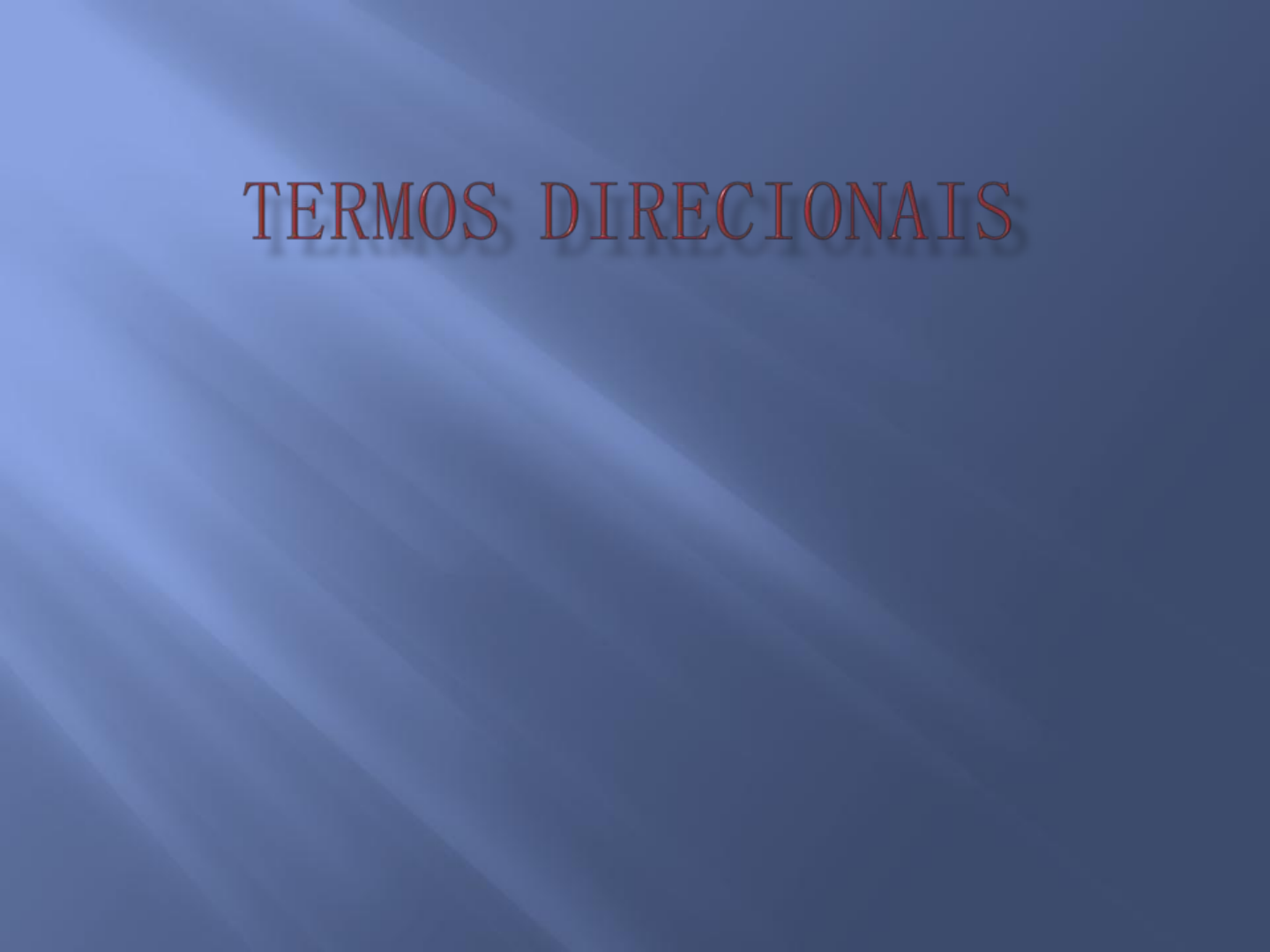 TERMOS DIRECIONAIS Para localizar as estruturas corporais, os anatomistas utilizam os termos direcionais, palavras que descrevem a posição de uma parte do corpo em relação a outra. TERMOS DIRECIONAIS Superior: Próximo à cabeça (cranial); Inferior: Afastado da cabeça (caudal); Anterior: Voltado para frente do corpo anterior (ventral); Posterior: Voltado para a parte de trás do corpo (dorsal); Medial: Em direção à linha média ou plano sagital mediano; Lateral: Afastado da linha média; Proximal: Mais próximo à fixação de um membro ao tronco; Distal: Mais distante à fixação de um membro ao tronco. POSIÇÃO ANATÔMICA Na anatomia existe uma convenção universal de que as descrições do corpo humano esteja em uma posição específica denominada Posição Anatômica. Nesta posição, o corpo humano é descrito e estudado como se estivera em posição imóvel. Nesta posição, o indivíduo encontra-se de pé, ereto, de frente para o observador, com os membros superiores lateralmente ao corpo, as palmas das mãos para frente e os pés apoiados no chão. POSIÇÃO ANATÔMICA PLANOS E EIXOS Plano Sagital: Divide o corpo ou um órgão em lados direito e esquerdo; Plano Médio-Sagital (Mediano): Divide o corpo ou um órgão em duas metades iguais; Plano Parassagital: Divide o corpo em lados desiguais direito e esquerdo; PLANOS E EIXOS Plano Frontal ou Coronal: Divide o corpo ou um órgão em uma porção anterior e posterior; Plano Transverso ou horizontal: Divide o corpo ou órgão em partes superior e inferior; Plano Oblíquo: Passa através do corpo ou órgão formando um ângulo entre os outros planos. PLANOS E SECÇÕES CAVIDADES DO CORPO