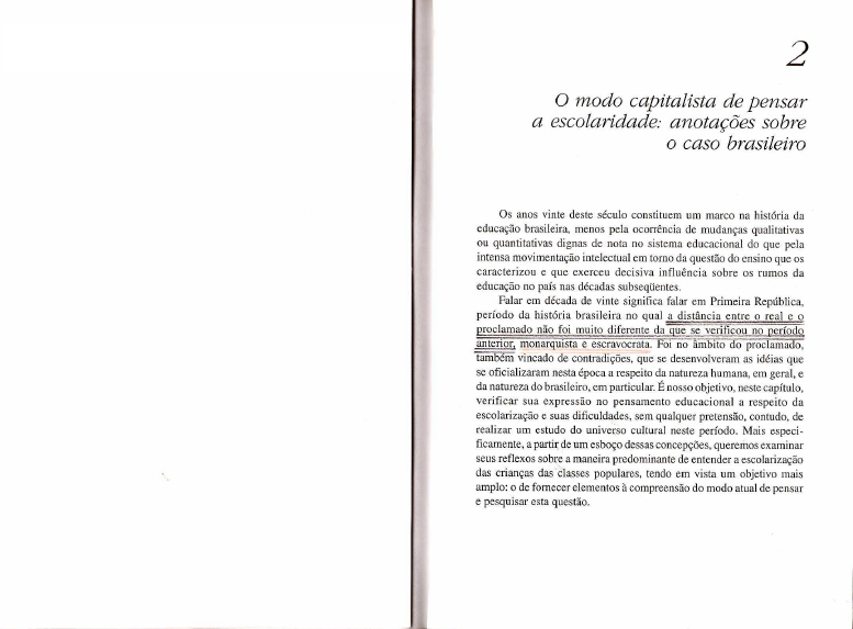 usuario Textbox PATTO, Maria Helena Souza. O modo capitalista de pensar a escolaridade: anotações sobre o caso brasileiro. In: _____. A produção do fracasso escolar: histórias de submissão e rebeldia. São Paulo: Casa do Psicólogo, 1999, p. 77-162.