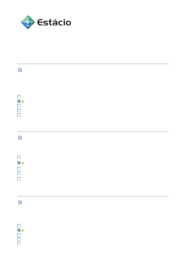 12/06/2016 BDQ Prova http://simulado.estacio.br/bdq_prova_resultado_preview.asp 1/4 Avaliação: CCE1134_AV1_201502423294 » CALCULO DIFERENCIAL E INTEGRAL II Tipo de Avaliação: AV1 Aluno: 201502423294 ROSANA CORREIA DO ROS¿RIO Professor: MATHUSALECIO PADILHA Turma: 9002/ET Nota da Prova: 10,0 de 10,0 Nota do Trab.: 0 Nota de Partic.: 0 Data: 18/05/2016 22:23:54 (F) 1a Questão (Ref.: 175102) Pontos: 1,0 / 1,0 O limite de uma função vetorial r(t) é definido tomandose os limites de suas funções componentes. Assim, de acordo com o teorema acima, indique a única resposta correta para o limite da função: limt→0 r(t)=(sen2t) i + eln(2t)j + (cost)k j k j + k i j + k j k 2a Questão (Ref.: 175126) Pontos: 1,0 / 1,0 O vetor de posição de um objeto se movendo em um plano é dado por r(t) = t3 i + t2 j. Determine a velocidade do objeto no instante t = 1. 2t j 3t2 i + 2t j 0 3t2 i + 2t j t2 i + 2 j 3a Questão (Ref.: 266375) Pontos: 1,0 / 1,0 Seja ∫((cost)i + (4t3)j) dt, qual a resposta correta? (cost)i3tj (sent)i + t4j (cost)i+3tj (cost)i(sent)j+3tk (sent)i3tj 12/06/2016 BDQ Prova http://simulado.estacio.br/bdq_prova_resultado_preview.asp 2/4 4a Questão (Ref.: 58131) Pontos: 1,0 / 1,0 Encontre o vetor velocidade para o movimento circular r(t) = (cos 2t)i + (sen 2t)j v(t)=2sen(2t)i+2cos(2t)j v(t)=sen(2t)i+cos(2t)j v(t)=2sen(2t)i2cos(2t)j v(t)=2sen(2t)i+2cos(2t)j v(t)=2sen(t)i+2cos(t)j 5a Questão (Ref.: 54325) Pontos: 1,0 / 1,0 Substitua a equação cartesiana x216+y225=1 por uma equação polar equivalente. 9((rcos(θ))2+16r2=0 9((rcos(θ))2+16r2=400 16((rcos(θ))2+9r2=400 9((rcos(θ))2+r2=400 9((rcos(θ))2 16r2=400 6a Questão (Ref.: 174973) Pontos: 1,0 / 1,0 Calcule a velocidade da curva r(t) = (cost, sent, t2), indicando a única resposta correta. Considere a resposta em t=π4 (22,22,π4) (2,2,π4) (22, 22,π4) (22,22,π2) (22,22,π2) 7a Questão (Ref.: 175524) Pontos: 1,0 / 1,0 Um objeto de massa m que se move em uma trajetória circular com velocidade angular constante w tem vetor posição dado por r(t) = acoswt i + asenwt j. Indique a única resposta correta que determina a velocidade em um tempo t qualquer. Observação: a > 0. senwt i + coswtj awsenwt i + awcoswtj awsenwt i awcoswtj senwt i + awcoswtj awsenwt i + awcoswtj 12/06/2016 BDQ Prova http://simulado.estacio.br/bdq_prova_resultado_preview.asp 3/4 8a Questão (Ref.: 42776) Pontos: 1,0 / 1,0 Seja r(t) = x(t)i+y(t)j+z(t)k o vetor posição de uma partícula que se move ao longo de uma curva lisa no plano. Considere as afirmações. Assinale (V) para as verdadeiras e (F) para as falsas: 1) ( ) Quando uma partícula se move durante um intervalo de tempo I, as coordenadas da partícula são x(t),y(t),z(t). Os pontos P(x(t),y(t),z(t)) formam uma curva que é a trajetória da partícula. 2) ( ) A velocidade é a derivada da posição,isto é: v(t) =r'(t) = dr(t)dt 3) ( ) O módulo da velocidade ou a magnitude da velocidade é igual a |v(t)|= (dx(t)dt)2+(dy(t)dt)2+(dz(t)dt)2. 4) ( ) A aceleração é a derivada da velocidade, ou seja a(t) = v'(t)= dv(t)dt 5) ( ) O vetor unitário ou versor v(t)|v(t)| é a direção do movimento no instante t. 6) ( ) r(t)é lisa se for contínua e nunca 0. 1) (V) 2)(F) 3) (V) 4) (V) 5) (V) 6) (F) 1) (V) 2)(F) 3) (V) 4)(V) 5) (V) 6) (V) 1) (V) 2)(F) 3) (F) 4)(V) 5) (F) 6) (V) 1) (V) 2)(V) 3) (F) 4)) (V) 5)(V) 6) (F) 1) (V) 2)(V) 3) (V) 4)(V) 5) (V) 6) (F) 9a Questão (Ref.: 54255) Pontos: 1,0 / 1,0 Sendo x=cos(wt), qual é o resultado da soma: d2xdt2+w2x? cos2(wt) w2sen(wt)cos(wt) w2 wsen(wt) 0 10a Questão (Ref.: 58145) Pontos: 1,0 / 1,0 Encontre a curvatura para r(t)=(lnsect)i+tj para π2<t<π2 12/06/2016 BDQ Prova http://simulado.estacio.br/bdq_prova_resultado_preview.asp 4/4 ln t + sen t tg t sen t cos t ln t Período de não visualização da prova: desde 22/03/2016 até 24/05/2016.