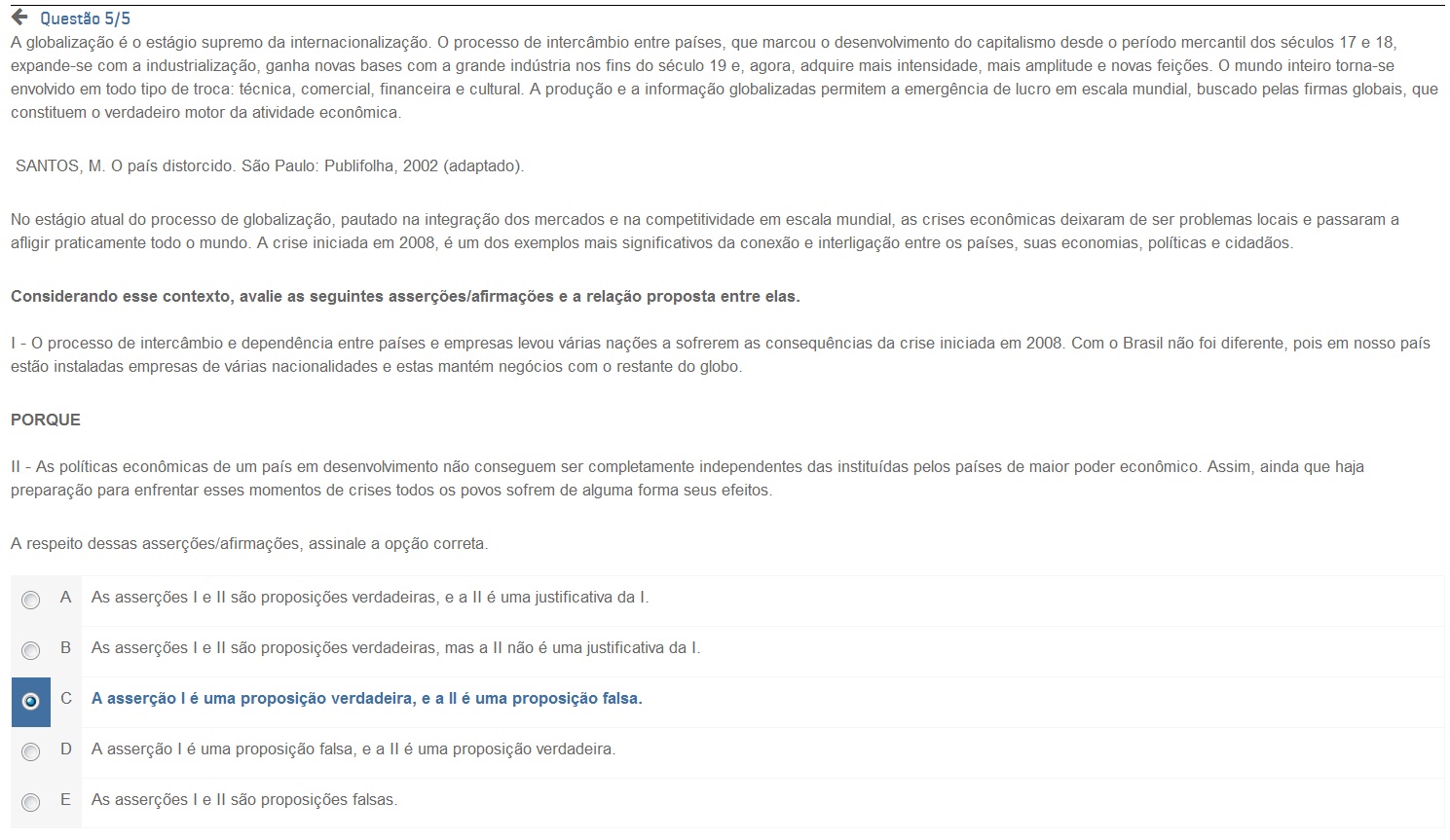Questão 6 Considere o excerto de texto a seguir: A Organização Mundial do Comércio (OMC) hoje está em crise porque existe uma competição pela hegemoni