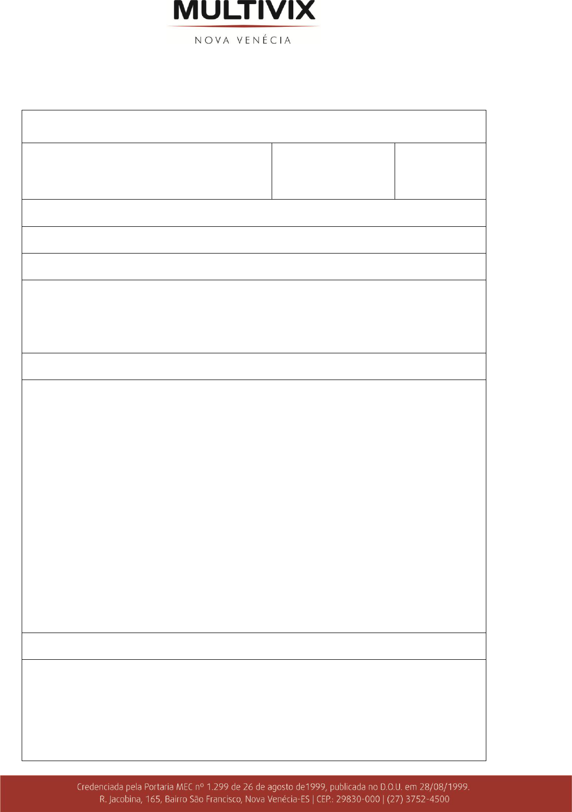 � PROGRAMA DA DISCIPLINA – 1º PERIODO CURSO: SUPERIOR BACHARELADO EM ENGENHARIA DISCIPLINA: QUÍMICA GERAL CARGA-HORÁRIA: 40 HORAS SEMESTRE: 2016 -1 PROFESSOR (A): FELIPE BEZERRA MARQUES PLANO DE ENSINO DA DISCIPLINA EMENTA Teoria atômica e Estequiometria. Estrutura atômica. Propriedades Periódicas dos Elementos. Compostos Químicos. Tipos de Ligações Químicas. Fundamentos de Química e Aplicações Tecnológicas. Propriedades dos Gases. OBJETIVOS Introduzir conceitos fundamentais de Química e suas aplicações na Engenharia. Relacionar estrutura eletrônica com as propriedades periódicas dos elementos. Conhecer os tipos de ligações químicas, entendendo a natureza dos sólidos. Identificar e nomear os principais compostos químicos inorgânicos. Balancear equações químicas pelo método das tentativas e por óxido-redução. Efetuar cálculos estequiométricos, desenvolvendo o raciocínio matemático. Calcular os tipos diferentes de concentração das soluções aquosas. Relacionar a teoria vista em sala de aula com a prática, através de Aulas de Laboratório e elaboração de Relatórios. METODOLOGIA As aulas receberão o seguinte tratamento para cada unidade didática: Parte expositiva e discussão dirigida, a fim de dirimir dúvidas. Resolução de Listas de Exercícios em sala para fixar conhecimentos. Desenvolvimento de Aulas em Laboratório, com elaboração de Relatórios; Uso de recurso audiovisual quando necessário: Projetor de Slides. Carga Horária CONTEUDO PROGRAMÁTICO 5 horas Estrutura atômica. Níveis e subníveis energéticos. Os números quânticos. Distribuição eletrônica. Diagrama de Pauling. 4 horas Tabela periódica: a classificação atual. Configuração eletrônica e localização dos elementos. Propriedades Periódicas: raio atômico, energia de ionização, afinidade eletrônica, eletronegatividade. 6 horas Ligações Químicas. Teoria do Octeto. Tipos de ligação: iônica, covalente e metálica. 4 horas Compostos Inorgânicos: Ácidos, bases, sais e óxidos. Número de oxidação (Nox). Conceitos de oxidante e redutor. 6 horas Reações Químicas. Classificação das reações. Balanceamento de equações químicas por tentativas. Balanceamento de equações por óxido-redução. 9 horas Teoria atômica: Massa atômica, massa molecular. Massa molar e Mol. Propriedades dos Gases. Determinação de Fórmulas: fórmula percentual, mínima e molecular. Cálculos Estequiométricos: Relações com massa, mol, moléculas, volume de gás nas CNTP; reagente limitante e em excesso; impurezas e rendimento de reação. 6 horas Soluções aquosas. Conceito e tipos de soluções. Unidades de Concentração: fração molar, porcentagem em massa (% p/p), porcentagem massa/volume (%p/v), ppm, concentração comum (g/L) e concentração em quantidade de matéria (molaridade). BIBLIOGRAFIA BÁSICA BRADY, James E. Química Geral. Vol 2. 2ª Ed. Rio de Janeiro: LTC, 2008. MAHAN, B. H. Química: Um Curso Universitário. 4ª Ed. São Paulo: Edgard Blücher, 2009. MAIA, D. J.; BIANCHI, J.C. de A. Química Geral – Fundamentos. 1ª Ed. São Paulo: Pearson Prentice Hall, 2007. RUSSELL, J. B. Química Geral. 2ª Ed. Volume 1. São Paulo: Pearson Education do Brasil, 2008. RUSSELL, J. B. Química Geral. 2ª Ed. Volume 2. São Paulo: Pearson Education do Brasil, 2008. VOGEL, A. I. Química Analítica Qualitativa. São Paulo: Mestre Jou, 1981. COMPLEMENTAR ATKINS, P.; JONES, L. Princípios de Química: Questionando a vida moderna e o meio ambiente. 3. ed. Porto Alegre: Bookman, 2006. BRADY, J.E. HUMISTON, G. E. Química Geral. Vol. 1 e 2. Rio de Janeiro: LTC. 1999. AVALIAÇÃO 1º Bimestre: Trabalhos Avaliativos – 5,0 pontos (conforme Normas técnicas da MULTIVIX) Prova escrita e sem consulta– 5,0 pontos 2º Bimestre: Trabalhos Avaliativos – 5,0 pontos (conforme Normas técnicas da MULTIVIX) Prova escrita e sem consultas– 5,0 pontos. IMPORTANTE VOCÊ SABER: O aluno que obtiver média inferior a 7,00 (sete) deverá prestar exame final, onde, deverão ser obedecidas as seguintes condições: O aluno que obtiver média de aproveitamento igual ou superior a 5,00 (cinco) nas disciplinas será considerado aprovado após o exame final. O aluno que obtiver média semestral inferior a 7,00 (sete), deverá prestar exame final desde que a média semestral seja no mínimo de 2,00 (dois) pontos. O aluno reprovado por falta, não poderá realizar o exame final. Caso por qualquer motivo, realize o exame final, a nota obtida no referido exame não alterará sob hipótese alguma o resultado do aluno em termos de reprovação por falta (vide Manual do Aluno que encontra-se na intranet – alunos online. Eng. Felipe Bezerra Marques Professor da Disciplina Douglas Bitencourt Vidal Coordenador do curso de Engenharia Ambiental e de Produção �