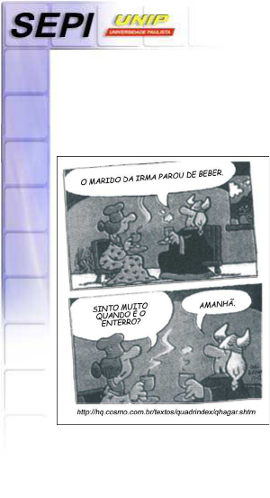 As informações implícitas (pressuposto e subentendido) Um dos aspectos mais intrigantes da leitura de um texto é a verificação de que ele pode dizer coisas que parece não estar dizendo; além das informações explicitamente enunciadas, existem aquelas outras que ficam subentendidas ou pressupostas. Observe o quadrinho a seguir: 1. Qual é a informação óbvia contida no primeiro quadrinho? O marido parar de beber. O verbo “parou” (explícito no enunciado de Helga) marca a informação implícita de que ele bebia antes. 2. O que se pode concluir a respeito do marido de Irma a partir da leitura do segundo quadrinho? Conclui-se que ele (o marido) parou de beber porque morreu. Informação implícita marcada na palavra “enterro”. Podemos dizer que nesse texto há informações explícitas e implícitas. Logo, para realizar uma leitura eficiente, o leitor deve captar tanto os dados explícitos quanto os implícitos. Esses últimos são os pressupostos e os subentendidos. Pressupostos Os pressupostos são aquelas idéias não expressadas de modo explícito, mas que o leitor pode perceber a partir de certas palavras ou expressões contidas no enunciado. Da leitura do quadrinho acima, podemos depreender que a informação explícita pode ser questionada, pois a amiga da Helga poderia concordar ou não com ela. Entretanto, o pressuposto de que o marido da Irmã “bebia antes” é verdadeiro, pois está marcado no verbo “parou”. Logo, tem-se que o pressuposto tem de ser verdadeiro ou pelo menos admitido como tal, porque é a partir dele que se constroem as informações explícitas. Se o pressuposto é falso, a informação explícita não tem cabimento. Os pressupostos são marcados, nos enunciados, por meio de vários indicadores lingüísticos, dentre eles podemos citar como exemplo: • Certos advérbios como, por exemplo, ainda, já, agora. Exemplo: Os resultados da pesquisa ainda não chegaram. (Pressupõe-se que os resultados já deveriam ter chegado ou que os resultados vão chegar mais tarde) • Verbos que indicam mudança ou permanência de estado, como ficar, começar a, passar a, deixar de, continuar, permanecer, tornar-se etc... Exemplo: Maria continua triste. (Pressupõe-se que Maria estava triste antes do momento da enunciação). • certos conectores circunstanciais, especialmente quando a oração por eles introduzida vem anteposta. Ex.: desde que, antes que, depois que, visto que etc. Exemplo: Desde que Ricardo casou, não cumprimenta mais as amigas. (Pressupõe- se que Ricardo cumprimentava as amigas antes de se casar). Subentendidos Leia o quadrinho a seguir: Pressuposto: circunstância ou fato considerado como antecedente necessário de outro. É um dado posto como indiscutível para o falante ou ouvinte, não é para ser contestado. http://hq.cosmo.com.br/textos/quadrindex/qhagar.shtm 1. O que se pode concluir da fala de Helga no primeiro quadrinho? Um homem para ser “grande” precisa do apoio da mulher. 2. O que se subentende do diálogo das duas personagens no último quadrinho? Hagar não é um grande homem. Subentendidos são as insinuações escondidas por trás de uma afirmação. O subentendido difere do pressuposto num aspecto importante: ele é de responsabilidade do ouvinte, pois o falante, ao subentender, esconde-se por trás do sentido literal das palavras e pode dizer que não estava querendo dizer o que o ouvinte depreendeu. Logo, o subentendido, muitas vezes, serve para o falante se proteger diante de uma informação que quer transmitir para o ouvinte sem se comprometer com ela. • Implícito: é algo que está envolvido naquele contexto, mas não é revelado, é deixado subentendido, é apenas sugerido. • Quando lidamos com uma informação que não foi dita, mas tudo que é dito nos leva a identificá-la, estamos diante de algo implícito. • A compreensão de implícitos é essencial para se garantir um bom nível de leitura. Portanto, Para encerrarmos esta unidade dedicada à leitura, convém lermos o pensamento de uma autora dedicada aos estudos que dizem respeito ao desenvolvimento do processo de leitura, a Dra. Ângela Kleiman: “A leitura tem sido chamada de atividade cognitiva por excelência pelo fato de envolver todos os nossos processos mentais. A compreensão de um texto (seja ele escrito ou falado) exige o envolvimento da atenção e a percepção, a memória, o pensamento. Esses processos mentais realizam, durante a leitura, operações necessárias para a compreensão da linguagem, tais como o raciocínio dedutivo (próprio da inferência, da leitura das entrelinhas) e o raciocínio indutivo (necessário para a predição baseada no conhecimento de mundo, de outros textos, do autor, das condições sociais em que se vive).” Uma abordagem de leitura deve levar o leitor ao prazer da descoberta, a fim de ter efeito nos seguintes aspectos: 1) percepção de elementos lingüísticos significativos, com funções importantes no texto; 2) ativação do conhecimento anterior; 3) elaboração e verificação de hipóteses que permitam ao leitor perceber outros elementos, mais complexos. Todas essas etapas envolvem a adivinhação e a descoberta do sentido que o escritor tentou deixar no seu texto, elemento importante para o leitor chegar à construção do SEU sentido do texto. Vale lembrar que o leitor proficiente é capaz de utilizar os três itens acima e que esse conhecimento é socialmente adquirido, portanto quem nunca participou da prática social da leitura de notícias e reportagens, em revistas semanais de informação, não partilhará desse conhecimento. Ou seja, um aluno que não dispõe de revistas e jornais na sua casa, e cuja única experiência com a leitura é a do livro didático, não integrará os diversos elementos num todo significativo de forma espontânea. Precisa ser orientado para fazê-lo. • Há textos em que nem tudo o que importa para a interpretação está registrado. • O que não fo