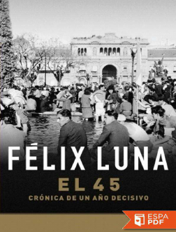 ¿Por qué el 45? Porque fue un año decisivo, en cuyo transcurso se determinó el sentido que tendría la próxima década argentina. Y no solamente porque el entonces coronel Perón haya llegado al poder e iniciado su hegemonía, sino porque el país entero decidió entonces adquirir un determinado estilo político y asumir una determinada conciencia. Ciertos valores cayeron para siempre y otros quedaron afirmados, también para siempre, en 1945. Probablemente no haya año alguno del siglo XX que señale una transición nacional con caracteres tan claros y netos. Además, el 45 estuvo lleno de hechos singulares, quizás irrepetibles, que adquirieron una fecunda perspectiva histórica en la medida que se los analice tratando de llegar al fondo del asunto. Félix Luna reconstruyó en este libro la insólita y apasionante experiencia política que derivó en la clausura del tradicional régimen de partidos y abrió paso a una nueva perspectiva histórica. El 45 es por su amenidad y su fundamentación documental un clásico de la literatura política argentina. Félix Luna El 45 Crónica de un año decisivo ePub r1.0 Ariblack 28.11.14 Título original: El 45 Félix Luna, 1968 Diseñode cubierta: Diseñador Editor digital: Ariblack ePub base r1.2 A Florencia, porque alguna vez me preguntará cómo fue todo aquello. EXPLICACIÓN ¿Por qué el 45? Por dos órdenes de razones. En primer lugar, porque 1945 fue un año decisivo, en cuyo transcurso se determinó el sentido que tendría la próxima década argentina. Y no solamente porque Perón haya llegado al poder e iniciado su hegemonía, sino porque el país entero decidió entonces adquirir un determinado estilo político y asumir una determinada conciencia. Ciertos valores cayeron para siempre y ciertos valores quedaron afirmados, también para siempre, en 1945. Probablemente no haya año alguno, en el último medio siglo, que señale una transición nacional con caracteres tan claros y netos. Además, 1945 estuvo lleno de hechos singulares, quizás irrepetibles, que adquieren una fecunda perspectiva histórica en la medida que se los analice tratando de llegar al fondo del asunto. Son estos hechos los que hay que extraer del fárrago de una historia casi olvidada o (peor aún) deformada por recuerdos personales limitados o comprometidos. En los últimos años se ha escrito un buen número de ensayos sobre el peronismo y sus orígenes pero se ha omitido la etapa previa, consistente en la exposición de los hechos concretos: aquellos que deben ser la sustancia de las eventuales interpretaciones y que en estas páginas intentaremos reconstruir. Desde un punto de vista puramente objetivo, 1945 es un año, pues, que merece un estudio detenido. Pero hay también razones personales que me han llevado a regresar a un cuarto de siglo atrás. En 1945, mucha gente joven —yo también — fue catapultada hacia la política. Ese año, con su tensión emocional, con la presentación directa de un rostro nuevo de la Nación, nos marcó para siempre con el signo de la preocupación política y su trajinar. Fue para muchos un tiempo inaugural, inolvidable, cargado de motivaciones, de fervor y ansiedad. Esto ocurrió a la mayoría de los argentinos de los dos bandos, pero muy especialmente a los más jóvenes. A los que hoy —como me sucede a mí— vuelven su espíritu a aquel año y con un poco de melancolía evocan esas jornadas exaltadas y gritonas, populosas y conversadas, añorando su magia y hasta sus equivocaciones. En cierto sentido éste es un libro de memorias. Pero no individual (mis recuerdos personales son insignificantes) sino de memoria colectiva. Lo cual exige una actitud mental que tiende a superar los enfrentamientos que entonces protagonizamos para tratar de asumir la comprensión posible de las razones y sinrazones de cada bando. Esta actitud mental, adoptada retrospectivamente, me ayuda a entender lo que en el 45 no entendí y me permite revivir esas jornadas de una manera más amplia y generosa. En alguna medida es recuperar el pasado ennobleciéndolo. No deformándolo ni idealizándolo sino haciendo un esfuerzo para rescatar lo que hubo de legítimo y auténtico en las dos maneras de concebir el país que ese año se confrontaron. Los pueblos pueden perecer por muchas causas. Pero acaso la más trágica de todas es la división que en algún momento incomunica totalmente a la comunidad. Y la división puede nacer tanto de los enfrentamientos presentes como del recuerdo que se tiene de los enfrentamientos pasados. En 1945 la división de los argentinos fue abrupta y la incomunicación de los dos frentes de lucha tuvo características totales. A casi un cuarto de siglo —y ésta es la tercera justificación de este libro— es conveniente intentar una crónica que establezca si el recuerdo del 45 puede contribuir a unir a los argentinos, en el reconocimiento de errores recíprocos y afinidades ocultas que en ese momento no pudieron expresarse pero que acaso ahora se puedan certificar. Con estas intenciones retorno a esa época y me miro y miro a mi país a través de una larga bruma. Nosotros éramos todos parecidos. Buscábamos desesperadamente la verdad y la justicia y éramos simples, puros, rigurosos… El tiempo y sus mudanzas ha convertido la simpleza en complejidad, la pureza en complicidad y el rigor en un abanico de matices: pero hemos seguido persiguiendo la verdad y la justicia. Y esa terquedad — me parece— nos ha salvado de caer en las cosas peores. Por eso se puede dedicar este libro a quienes, como Florencia, viven en la condición rigurosa, simple y pura de la niñez. Agosto de 1971 PRÓLOGO HACIA EL AÑO DECISIVO I El 1º de enero de 1945 los diarios traían en sus primeras páginas las noticias de la guerra, como lo venían haciendo desde cinco años y medio atrás. Ese día anunciaban que proseguía el avance de los ejércitos aliados en Bélgica y Luxemburgo y que las tropas soviéticas estaban ocupando barrio