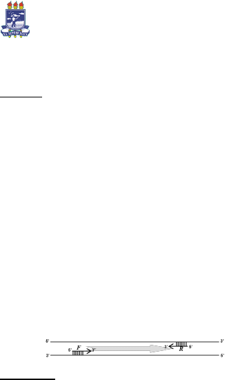 AULA PRÁTICA: DESENHO DE PRIMERS Introdução: Durante a replicação, a enzima DNA polimerase necessita de uma extremidade 3´- OH livre para poder adicionar os nucleotídeos e, consequentemente, formar a fita-filha. Por isso, nos mecanismos de duplicação do DNA in vivo, a ação da RNA primase é fundamental, pois, ao sintetizar um curto segmento de RNA, este é capaz de fornecer tal condição química. Já nos processos que ocorrem in vitro, estes componentes são substituídos por segmentos curtos de DNA (oligonucleotídeo), conhecidos por primers ou iniciadores, os quais flanqueiam a região do DNA a ser amplificada. PCRs específicas empregam um par de primers, conhecidos como forward (amplifica fragmentos na mesma direção da transcrição) e reverse (amplifica fragmentos na direção inversa a transcrição). Atualmente, estão disponíveis diversos softwares para o desenho de primers. Contudo, certas recomendações devem ser seguidas e a análise visual detalhada é primordial para a escolha do par correto. Abaixo são listadas algumas regras essenciais para o desenho de primers: 1) Presença de uma extremidade –OH livre no carbono 3’. 2) Conteúdo GC bem distribuído em todo o primer (35% a 60%). 3) Complementaridade com a fita molde (é tolerável algum mau-pareamento ou mismatch, exceto na extremidade 3’). 4) Temperatura de pareamento (52 a 58ºC, e não passar a diferença de 5ºC entre eles). 5) Tamanho do primer (10 a 30 nt). 6) Distância máxima e mínima entre os primers (20 pb a 20 Kb; média: 100 pb e 5 Kb). 7) Concentração iônica ideal da solução (50 mM de MgCl2). 8) Evitar self-anealing (auto-pareamento) e dimers (dímeros). Procedimentos: 1) Vá ao site do NCBI (< http://www.ncbi.nlm.nih.gov/ >), procure a sequência AY649326.1 e faça o download do arquivo em formato FASTA (Send > File > FASTA > Create File). 2) Na coluna à direita, clique em Pick Primers. Em Primer Parameters, altere PCR product size (300-500 pb). Em Primer melting temperatures (Tm), altere para 55ºC (min), 57ºC (médio) e 60ºC (máx). 5 ºC de diferença entre eles. Em Primer Pair Specificity Checking Parameters, altere Database para “nr”. Clique em Get primers. UNIVERSIDADE FEDERAL RURAL DE PERNAMBUCO DEPARTAMENTO DE BIOLOGIA ÁREA DE GENÉTICA 3) Cheque seus resultados e eleja a melhor opção, justificando. 4) Desenhe novos primers alterando os parâmetros. Exercícios: 1) A qual organismo pertence a sequência trabalhada? A que tipo de produto ela corresponde? 2) Quem seria melhor: um primer com tamanho igual a 15 ou 23 b (considere condições ideais iguais para os demais parâmetros)? Justifique. 3) Por que a temperatura de pareamento não deve estar acima nem abaixo do intervalo entre 52ºC e 58ºC?