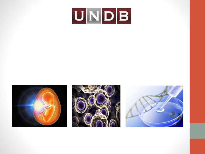 CLONAGEM E CÉLULAS TRONCO Componentes Amanda Lira Anna Júlia Ana Luísa Gabriela Leão Lara Pezzino Laura Morais Laryssa Kelly Lucas Leonardo Natália Veras Raissa Colins Rayssa Ribeiro Rebeca Monteiro Thalyta Albuquerque Victor Rafael Walter Alves Introdução • Este trabalho tem como objeto falar sobre clonagem, clonagem da ovelha Dolly, clonagem reprodutiva e terapêutica, células tronco, tipos de células tronco, aplicação de células tronco embrionárias, terapia com outras fontes de células tronco e aspectos éticos. O que é clonagem ? • A clonagem é um mecanismo comum de propagação de espécies em plantas ou bactérias; • De acordo com Webber (1903) um clone é definido como uma população de moléculas, células ou organismos que se originaram de uma única célula e que são idênticas à célula original e entre elas; • Em humanos, os clones naturais são os gêmeos idênticos que se originam da divisão de um óvulo fertilizado. Clonagem da ovelha Dolly • A grande revolução da Dolly, que abriu caminho para a possibilidade de clonagem humana, foi a demonstração, pela primeira vez, de que era possível clonar um mamífero, isto é, produzir uma cópia geneticamente idêntica, a partir de uma célula somática diferenciada. Clonagem REPRODUTIVA e TERAPÊUTICA • Retira-se o núcleo de um ovulo doado; • Coleta-se uma célula adulta de um outro doador e retira- se o núcleo(EX.: célula da pele); • Implanta-se o núcleo da célula adulta (pele) no ovulo sem núcleo; Na Clonagem reprodutiva (1996): o óvulo com o novo núcleo é implantado em um útero que gestará o ser vivo, CLONE. Ex. Ovelha Dolly; • PROIBIDA EM SERES HUMANOS; • Na Clonagem terapêutica (2004): o óvulo não é implantado em útero, mas mantido em substância nutritiva em laboratório, se atingir o estado de blástula (blastocisto) torna-se capaz de produzir linhagens de células-tronco embrionárias totipotentes, que podem ser utilizadas em pesquisas para a cura de doenças (transferência nuclear ou transplante celular). • De acordo com Hochedlinger e Jaenish(2003), os avanços recentes em clonagem reprodutiva permitem quatro conclusões importantes: 1)A maioria dos clones morre no início da gestação; 2)Os animais clonados têm defeitos e anormalidades semelhantes, independentemente da célula doadora ou da espécie; 3)Essas anormalidades provavelmente ocorrem por falhas na reprogramação do genoma; 4)A eficiência da clonagem depende do estágio de diferenciação da célula doadora. PONTOS POSIVITOS X PONTOS NEGATIVOS Pontos positivos • Obtenção de células tronco a fim de restaurar a função de um órgão ou tecido; • Não oferecer riscos de rejeição se o doador fosse a própria pessoa; • Diminuição ou fim do tráfico clandestino de órgãos; • Possibilidade de casais inférteis terem filhos. Espécies em vias de extinção poderiam ser salvas. Pontos negativos • Técnica de baixa eficiência; • Vários fetos morrem durante a gestação ou logo após o nascimento; • Grande número de anomalias; • Envelhecimento precoce; • Lesões hepáticas, tumores, baixa imunidade. O que são células tronco? • Células indiferenciadas que têm a capacidade de se multiplicar e se diferenciar em células especializadas; • São células capazes de gerar outras células diferentes de si mesmas; • Auto renovação. • Diferenciação Tipos de Células Tronco Totipotênt e Pluripoten tes Oligopotente Unipotente Multipotentes Células tronco adultas Cordão umbilical Medula Óssea Tecido adiposo Polpa dentaria Sangue Problema: Possui pouca capacidade de diferenciação Multipotente Células tronco embrionária • Tem a capacidade em se transformar em qualquer tipo de célula adulta; • Encontradas no embrião, no estagio de BLASTOCITO; Pluripotentes Aplicação das células tronco embrionárias • Distúrbios neuromusculares; • Doenças de Parkson; • Diabetes; • Câncer. Terapia celular com outras fontes de células-tronco • 1)Indivíduos adultos: pesquisas recentes mostraram que células-tronco retiradas da medula de indivíduos com problemas cardíacos foram capazes de reconstituir o músculo do seu coração, o que abre perspectivas fantásticas de tratamento para pessoas com problemas cardíacos; • 2)Cordão umbilical e placenta: pesquisas recentes vêm mostrando que o sangue do cordão umbilical e da placenta são ricos em células-tronco; • 3)Células embrionárias: se as células-tronco de cordão tiverem a potencialidade desejada, a alternativa será o uso de células- tronco embrionárias obtidas de embriões não utilizados que são descartados em clínicas de fertilização. Aspectos éticos Curiosidades • Não é possível clonar apenas órgãos; • O primeiro mamífero clonado a partir de uma célula adulta foi a ovelha Dolly; • Uma autópsia do corpo da Dolly revelou que, apesar da morte precoce, seu organismo funcionava normalmente. A ovelha deixou 6 descendentes; • Para fazer clones os cientistas usam o método da transferência nuclear; • A técnica da clonagem ainda precisa ser aperfeiçoada. A taxa de sucesso dos experimentos no campo é de apenas 10%; • Para clonar a Dolly, foram fecundados 277 óvulos. Apenas 30 começaram a se dividir, e 9 induziram a gravidez. Um único filhote - a Dolly – sobreviveu; • O mecanismo pelo qual isso acontece ainda não foi esclarecido, mas os seres clonados costumam ter um sistema imunológico deficiente. Eles têm uma maior tendência ao desenvolvimento do câncer, e acabam morrendo cedo; • Um clone é um ser geneticamente idêntico ao ser copiado, ou seja, ele tem as mesmas características da matriz. CONCLUSÃO